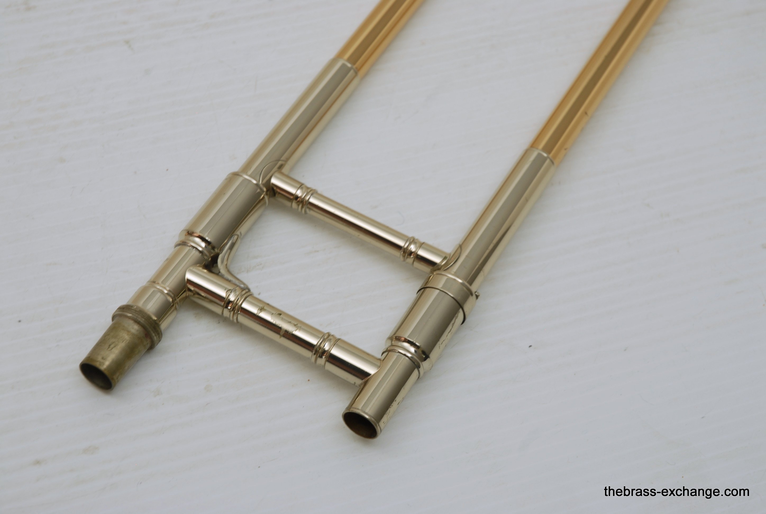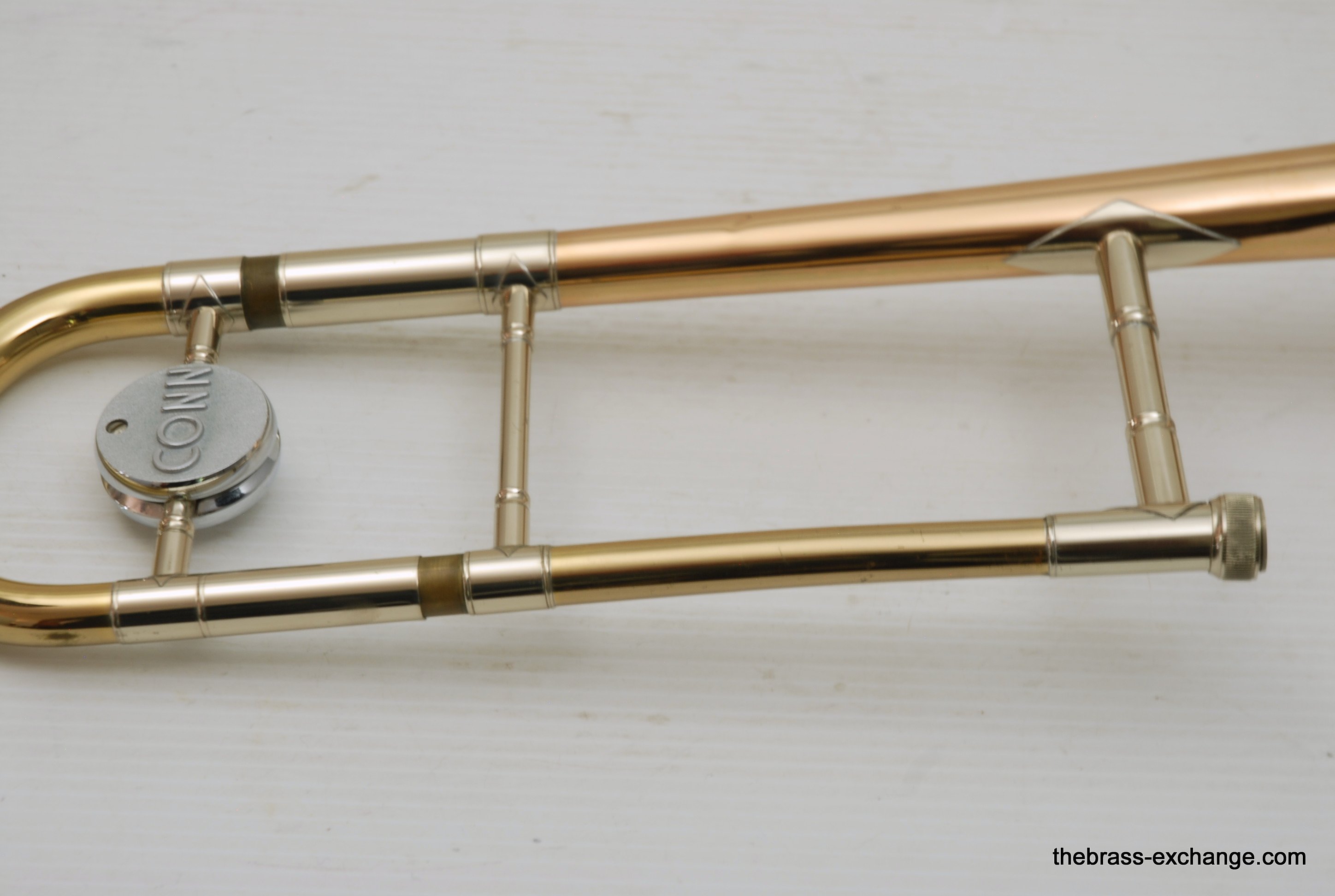 Conn 8H Gorgeous Vintage Elkhart 1966. Classic Large Bore Tenor 8H, is .547 bore size with 8.5" rose brass bell. Is exactly like the 88H except no F-attachment. Quite a few 8H's have passed through this shop over the years. These are a personal favorite. It's hard to beat the sound of a grea 8H or 88H. This one has a complex rich sound, which is very responsive. This horn is in amazing condition, despite a few small dings on the bell section that will be taken out, prior to delivery. The original springs in first position are still in place and work perfectly, but can be removed and replaced with standard bumpers upon request. Handslide action is excellent, about as good as any 8H can be. This is both a collector and a players horn. Original case also in excellent condition. Original Remington Mothpiece also included.