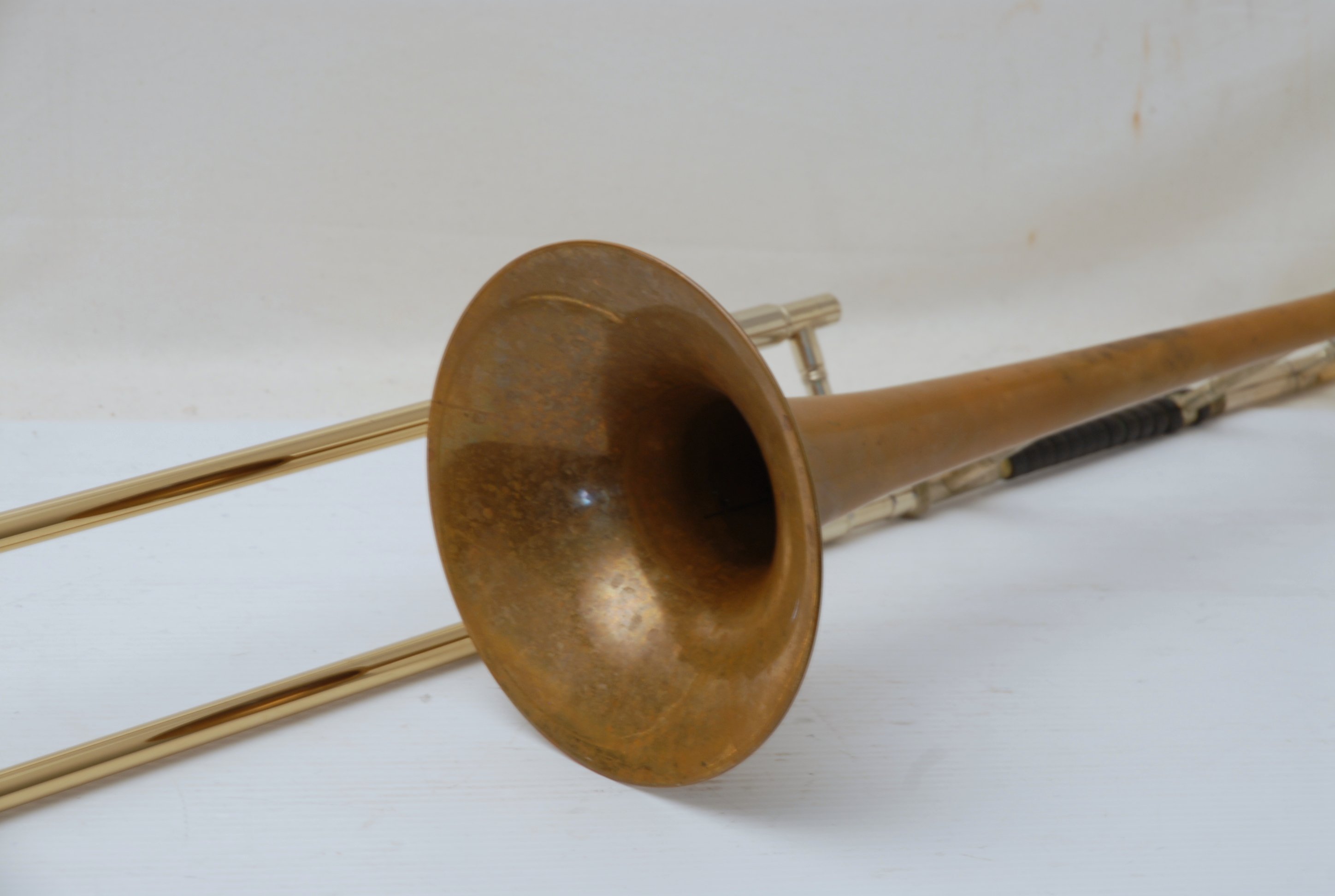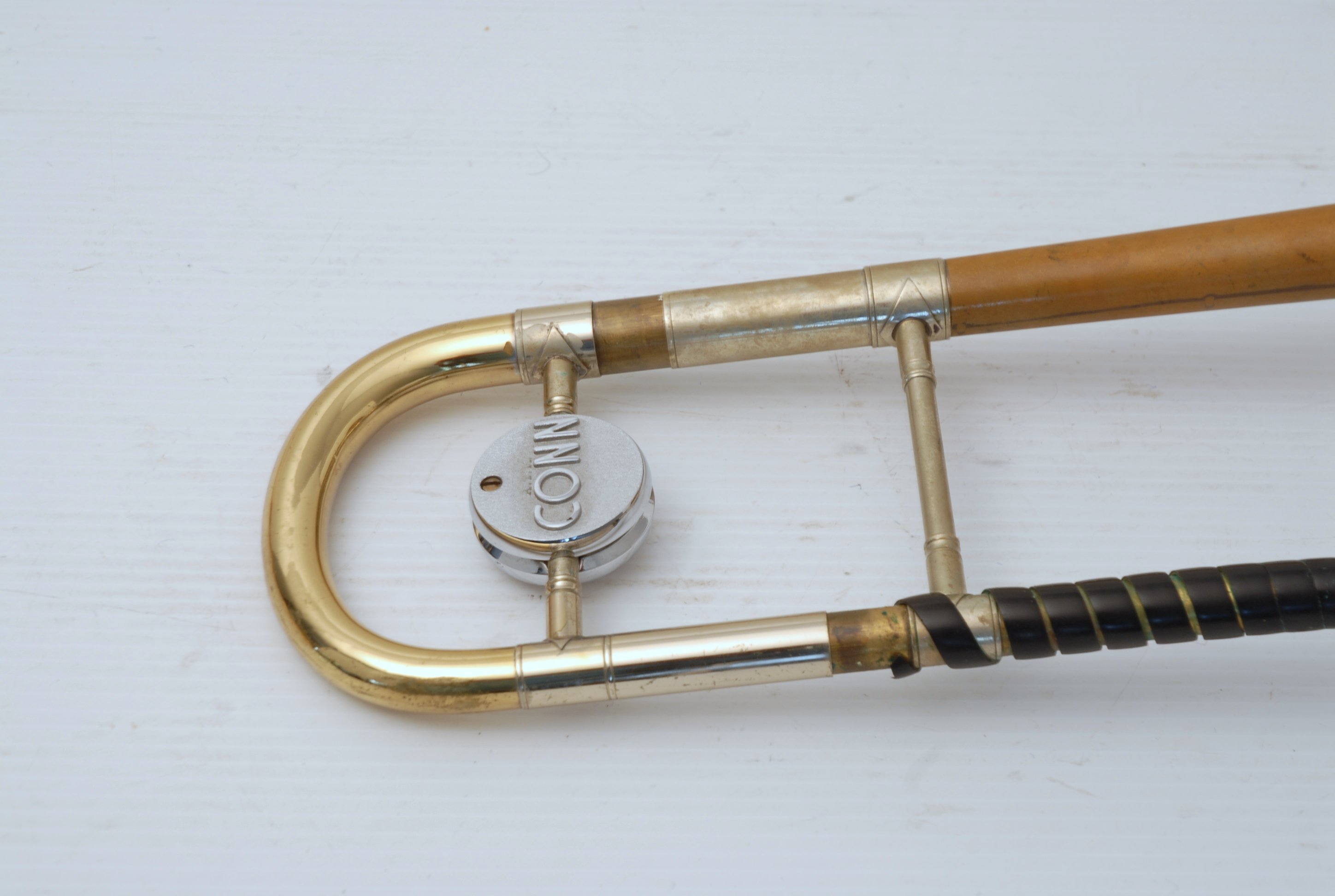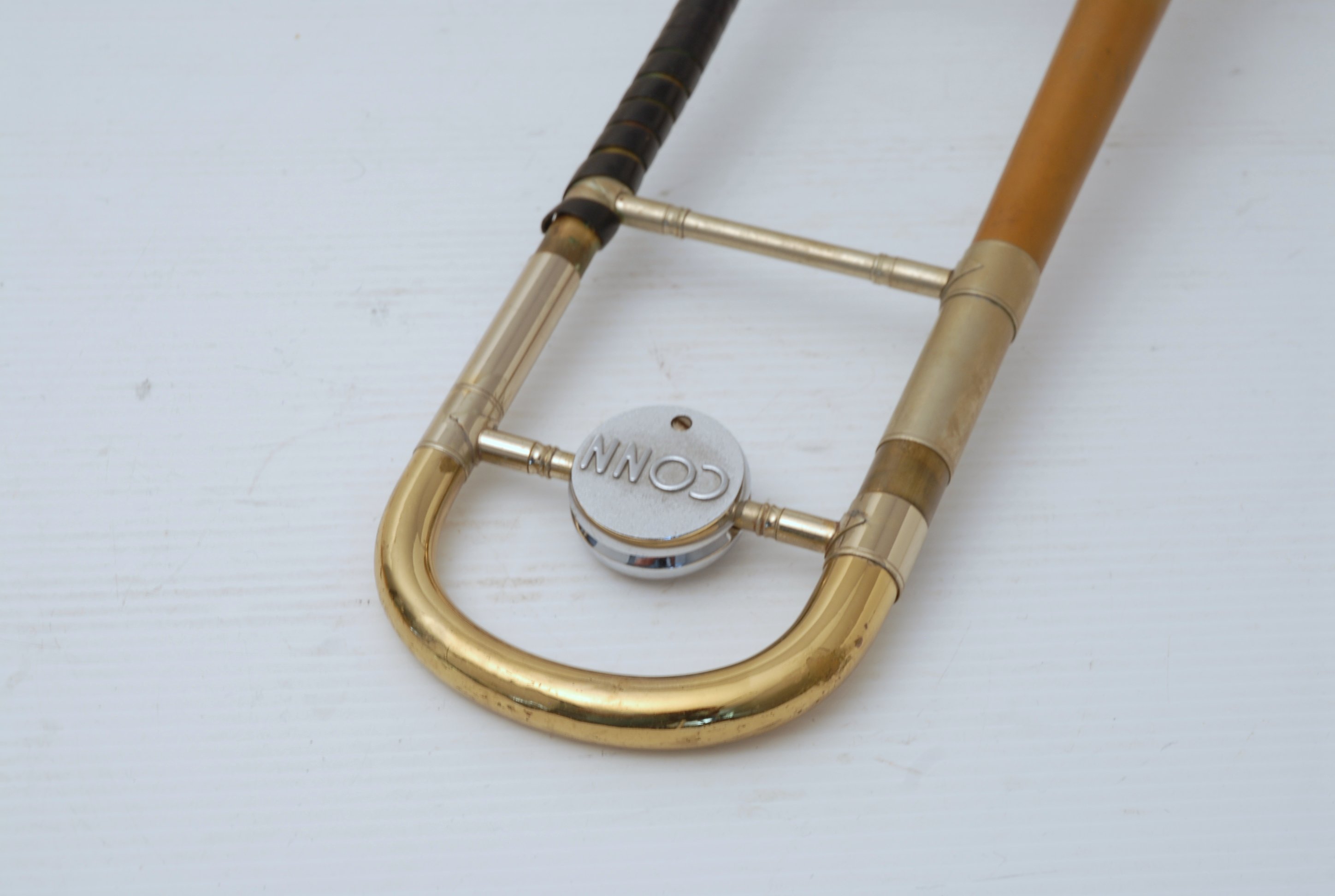 Conn 8H Made by Larry Minick, Los Angeles, CA. This 8H was made by legendary maker/designer Minick. The parts are all Elkhart, but isn't stamped with the traditional Conn engraving because Conn didn't make it. Larry Minick did. This horn was owned and played professionally on hundreds of Film Scores in L.A. Studios. If ever you were seeking the best playing 8H, this might be it. Would make an outsanding large bore Jazz horn. Handslide is flawless, has Remington Minick leadpipe. Never any damage or repairs to this instrument. Bell section is raw brass. Plays dark, with lots of vibrance and color, and will also brighten up as one would expect an 8H to play. No service required to improve playability. Comes with a black gig bag.
