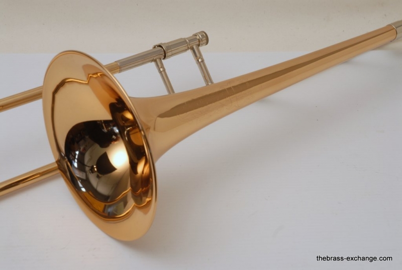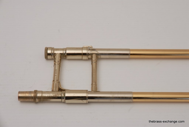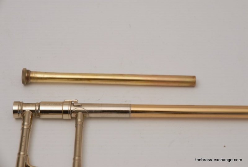 This trombone was freshly cleaned and fully serviced in our shop, including a chemical bath, handslide adjustments, and a complete check to ensure it plays at its best. There are no dents or dings, and it is cosmetically outstanding — ready for any serious player.