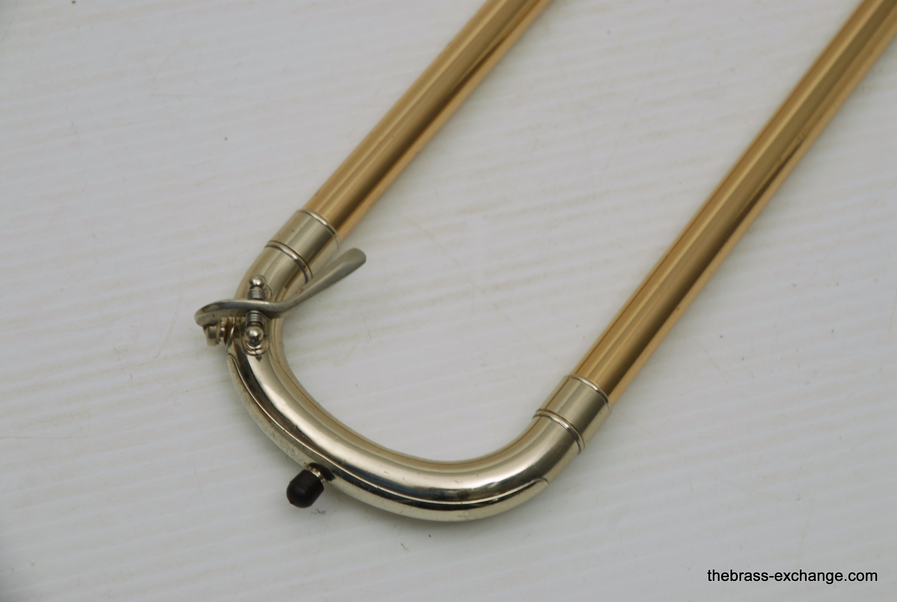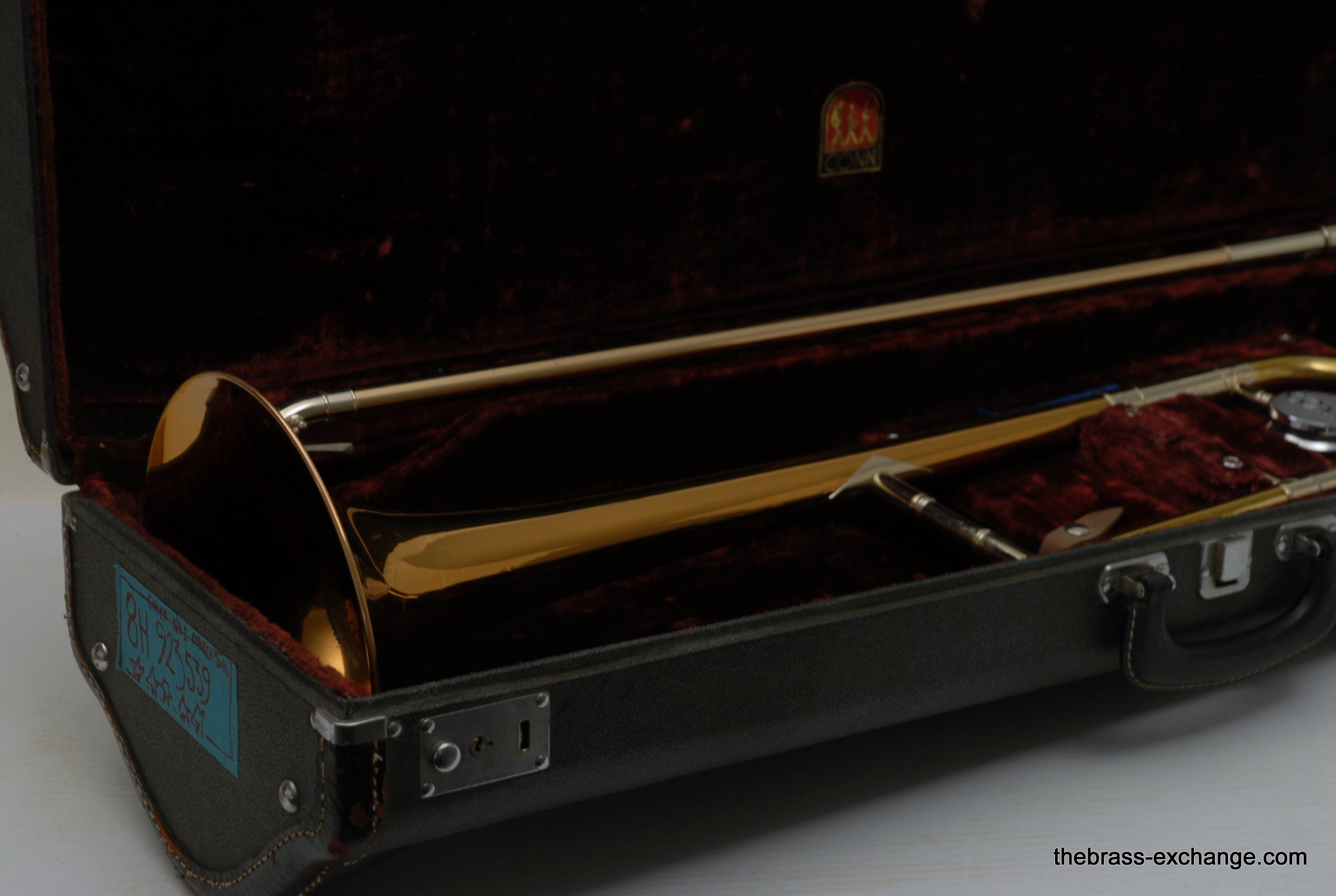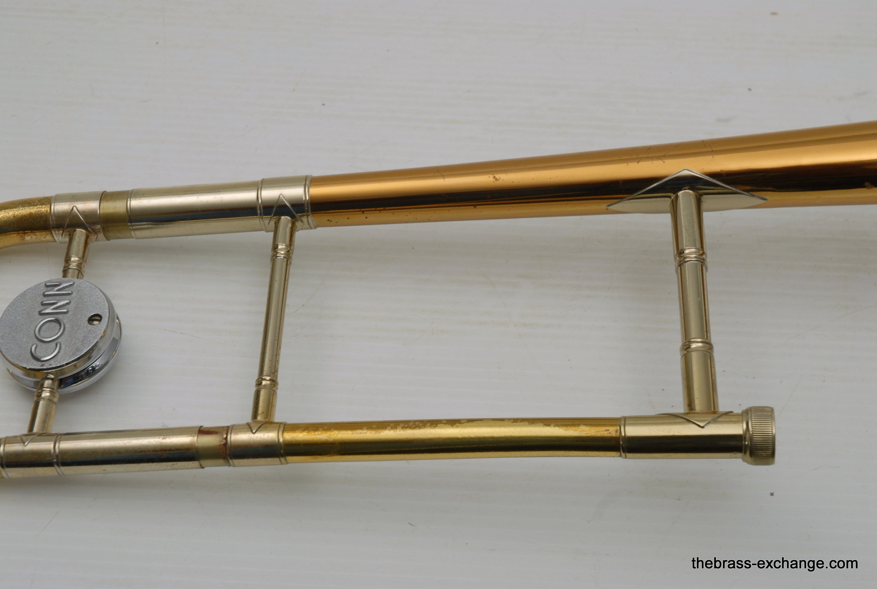 Conn 8H Vintage Elkhart Era 1962.  This is the classic 8H, same specs on bell and slide as the 88H but without f-attachment.  Has classic 8.5" rose brass bell, .547 bore handslide with gold brass outer slide tubes, nickel silver end crook.  All parts and lacquer on this horn are original.  Has had full shop service including amazing handslide set-up.  No previous damage to this instrument.  Minor Conn wear on slide, not a mechanical problem whatsover.  Anyone looking to play a straight 8H will love this horn.  Plays dark, but will open up easily with the right amount of push.  Original case and mouthpiece included. In-stock for immediate delivery.