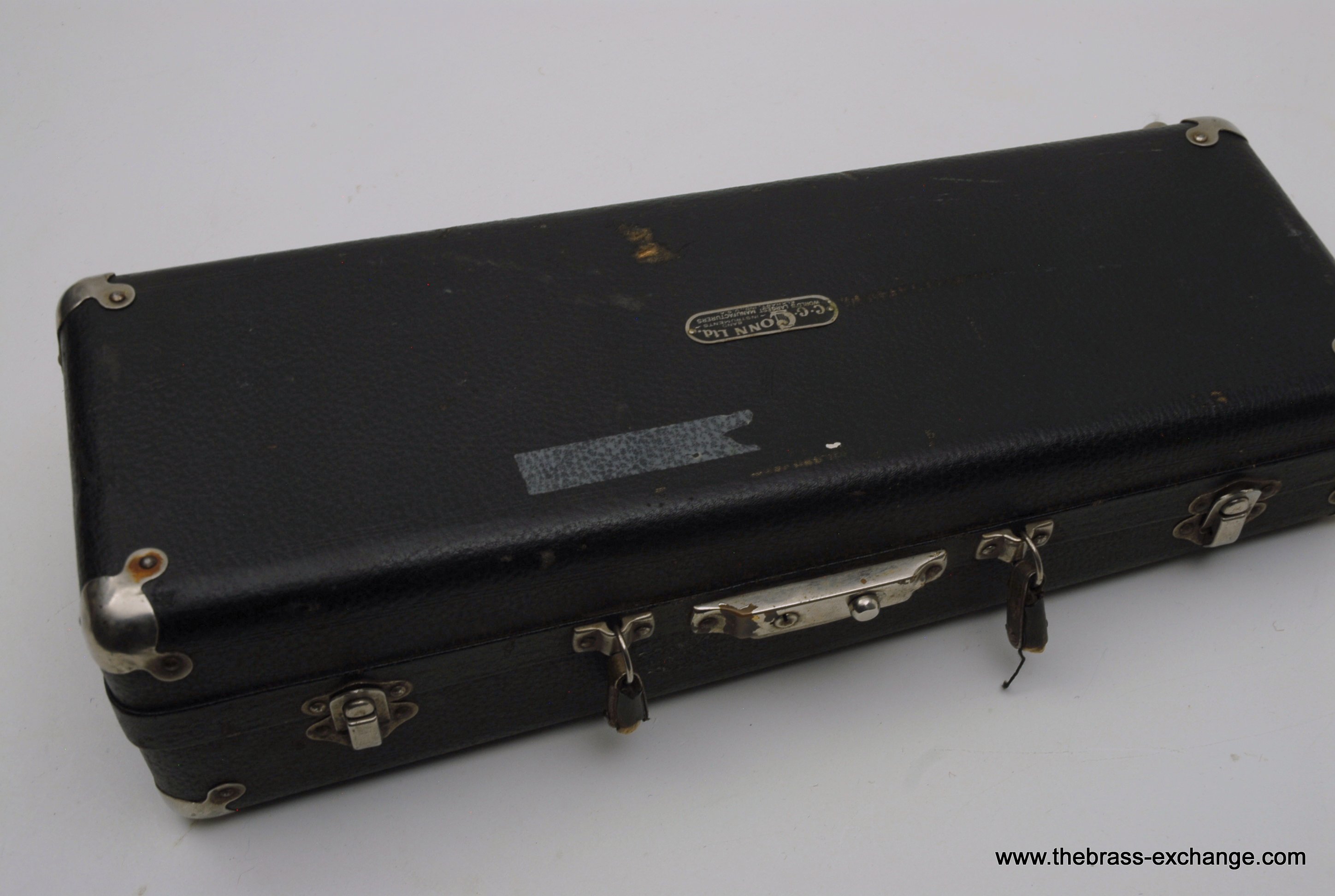 The original case, which houses a genuine Conn gold-plated mute