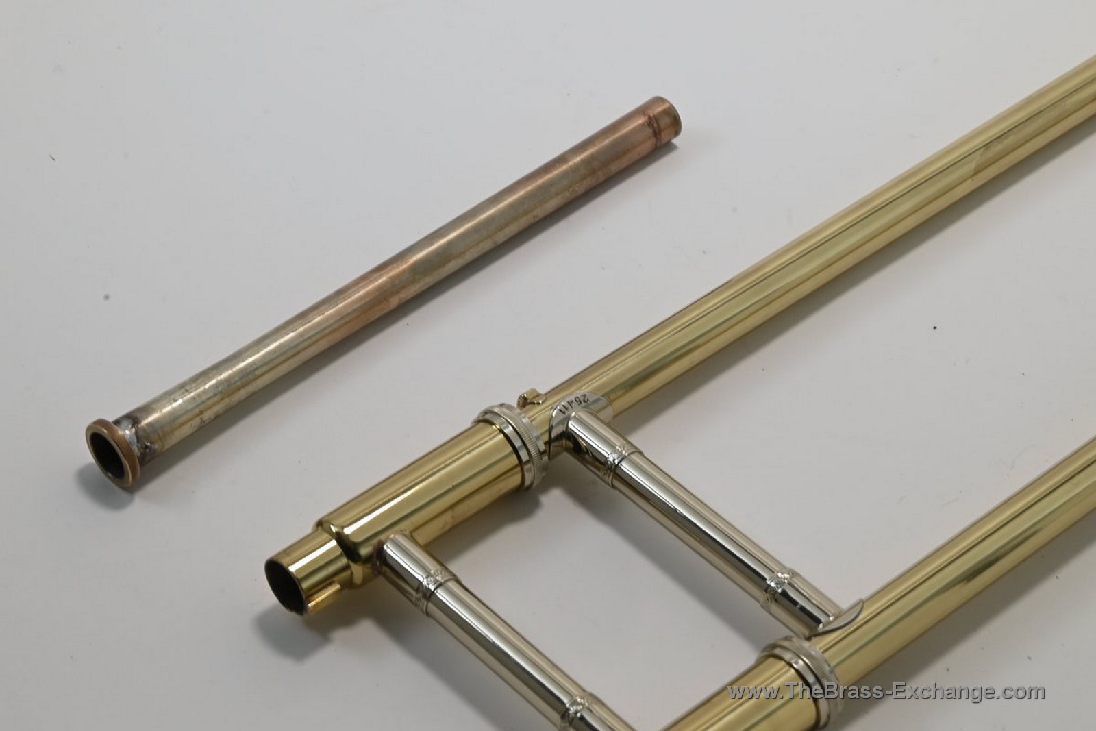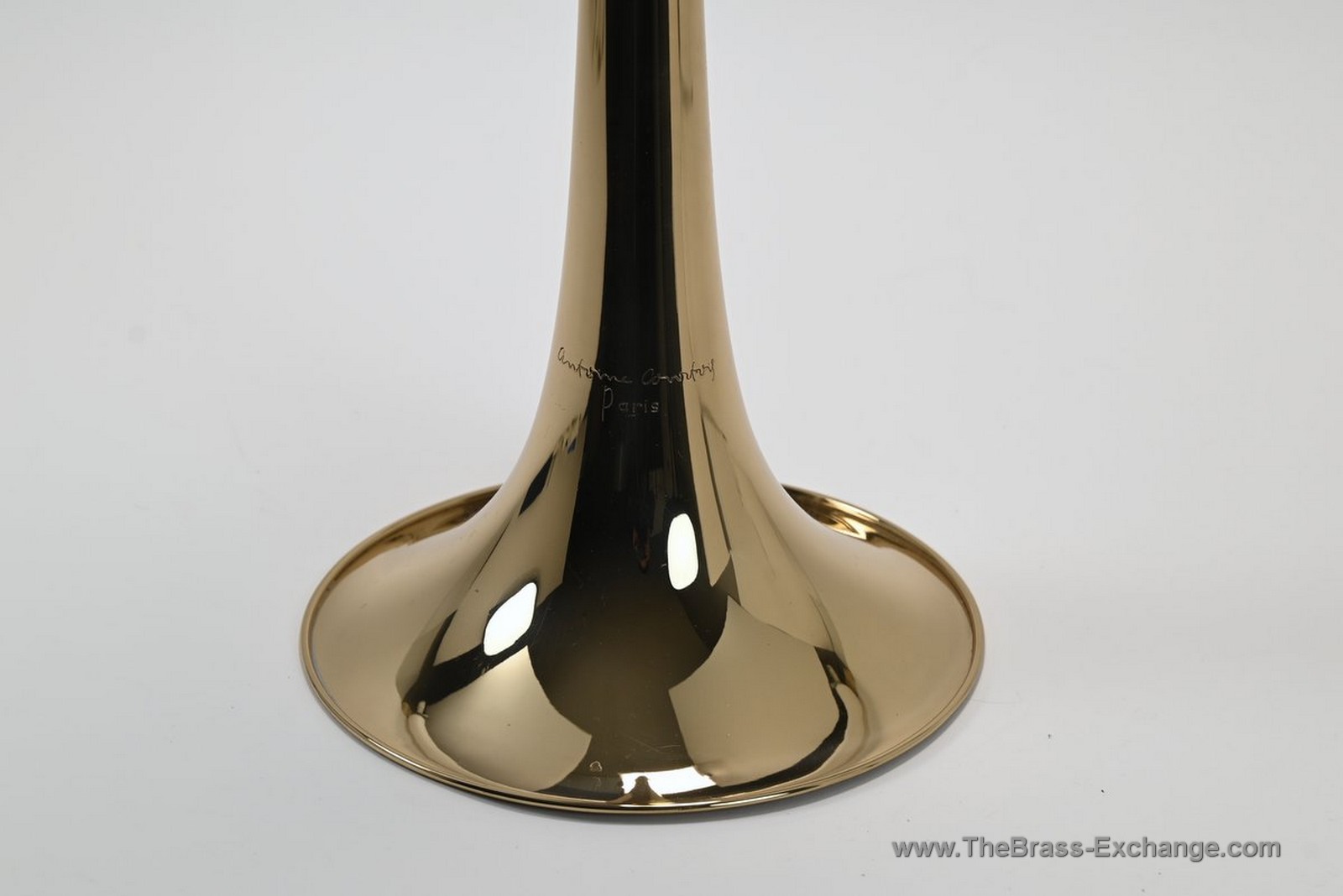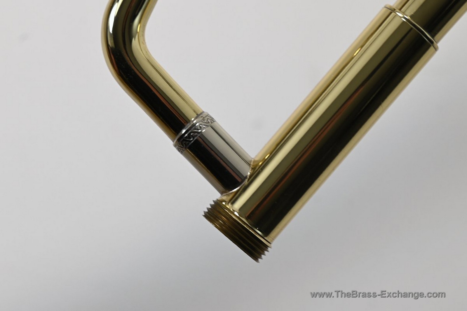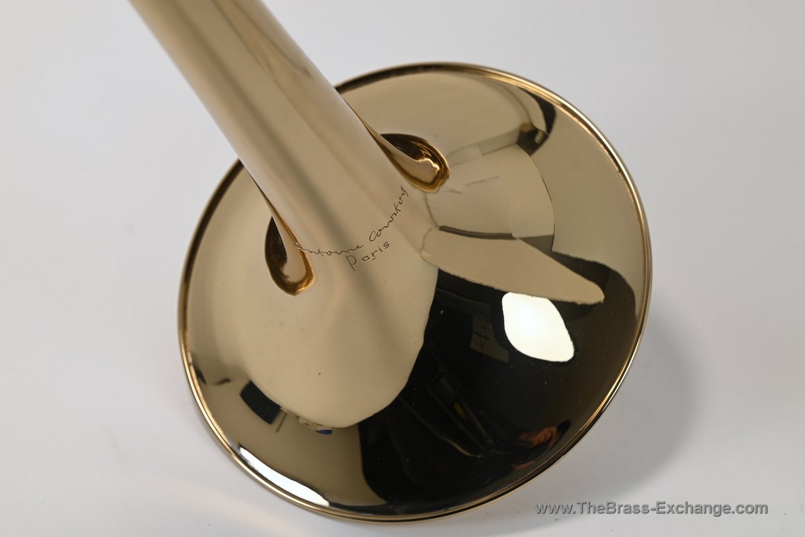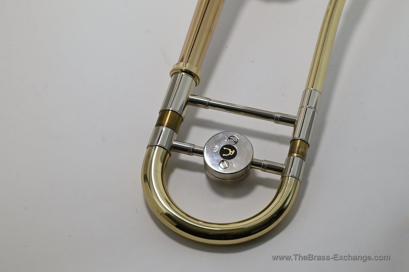 The instrument retains its original factory nickel silver leadpipe, but the leadpipe cap has been thoughtfully updated. The original design was difficult to remove by hand, so this was resolved by fitting a smooth press-fit cap rather than a locking or threaded mechanism. This allows for quick, tool-free leadpipe changes if a player wishes to experiment with feel or response. While other press-fit leadpipes could be used with greater ease, we recommend starting with the original factory leadpipe, which is well balanced in both timbre and resistance and pairs especially well with the gold brass bell.