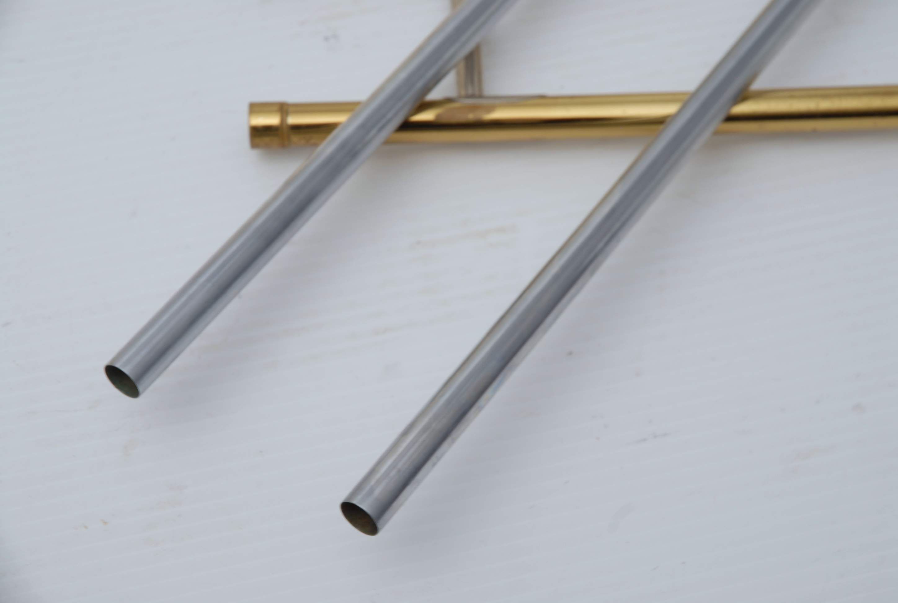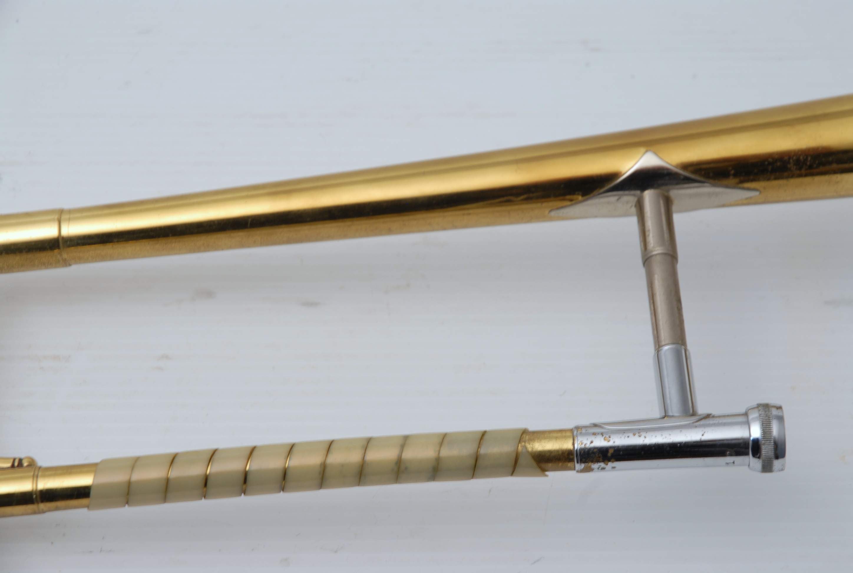The trombone features a 7.5″ yellow brass bell paired with a .500″ bore handslide, with all components remaining original and no history of major damage or structural repair. The slide remains in excellent alignment and plays with effortless response and fast articulation. Prior to its sale, the instrument completed a full professional shop service at The Brass Exchange, including chemical flush, slide alignment, and final play-testing.