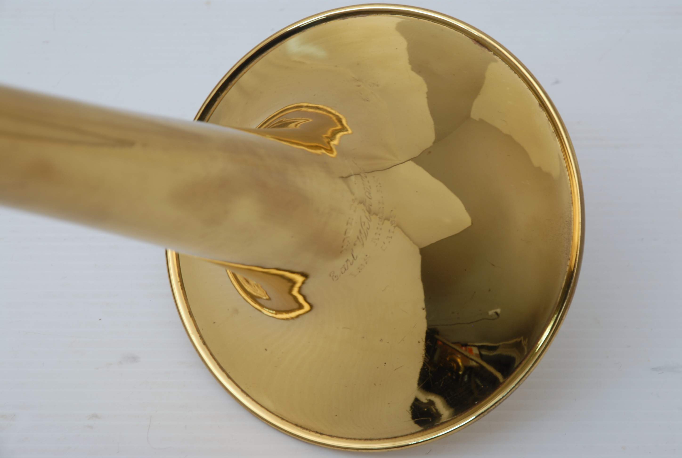 Earl Williams trombones are especially prized for their upper-register stability, and this Model 6 delivers exactly that. Notes in the high E♭–F range speak clearly and slot with exceptional accuracy. The high E—a notoriously difficult note on many small-bore trombones—is secure and resonant on this example. From a player’s perspective, the resistance profile remains even as the register ascends, allowing notes above the staff to center without excessive embouchure compensation. This quality separates exceptional small-bore trombones from merely good ones.