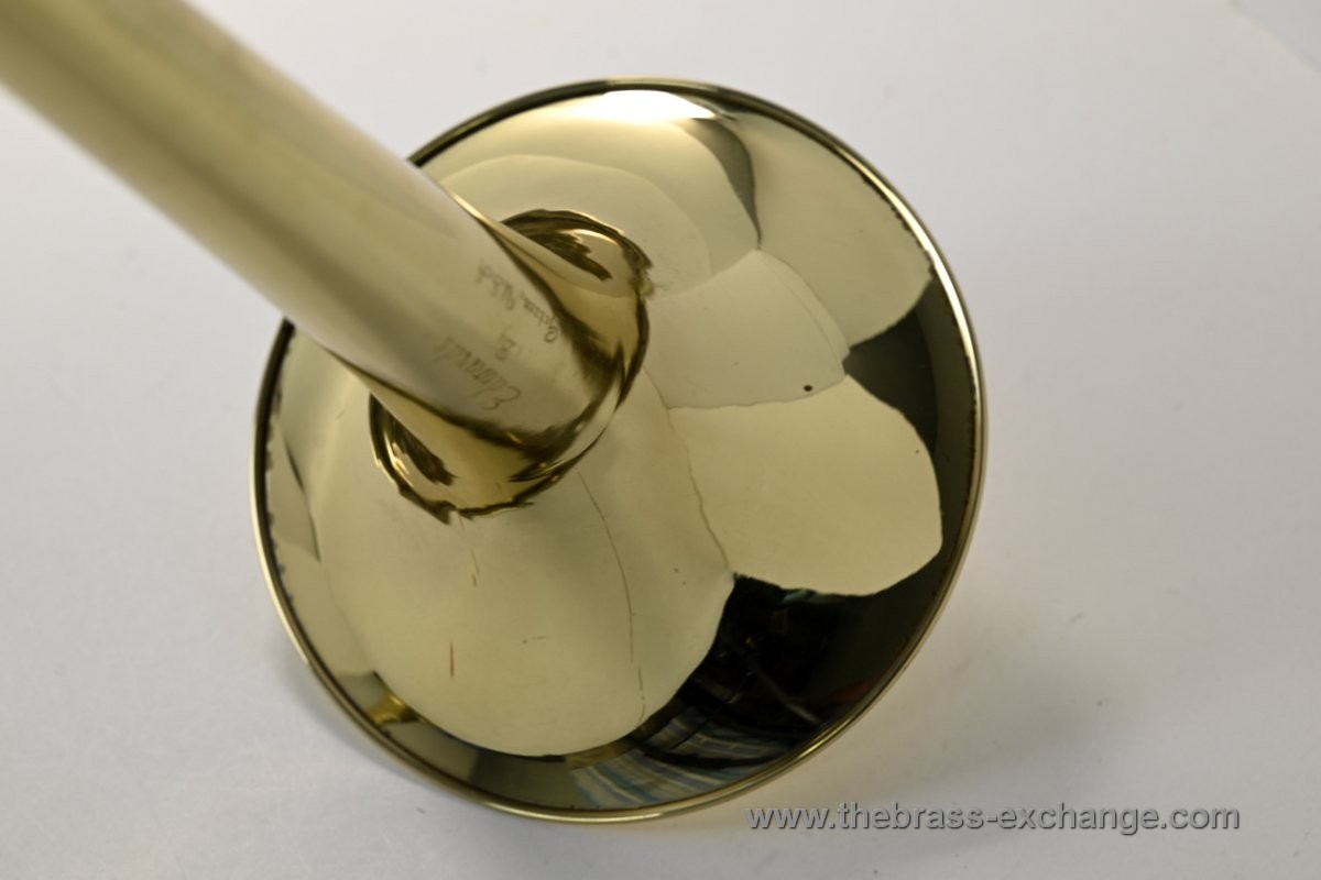 Condition is pre-owned and very good. The bell has no dents or dings, and the lacquer remains largely intact with just a few small rim spots of acid bleed. This cosmetic issue occurs during the lacquering process if soldering flux residue remains under the finish. It often appears months or years after manufacture.
