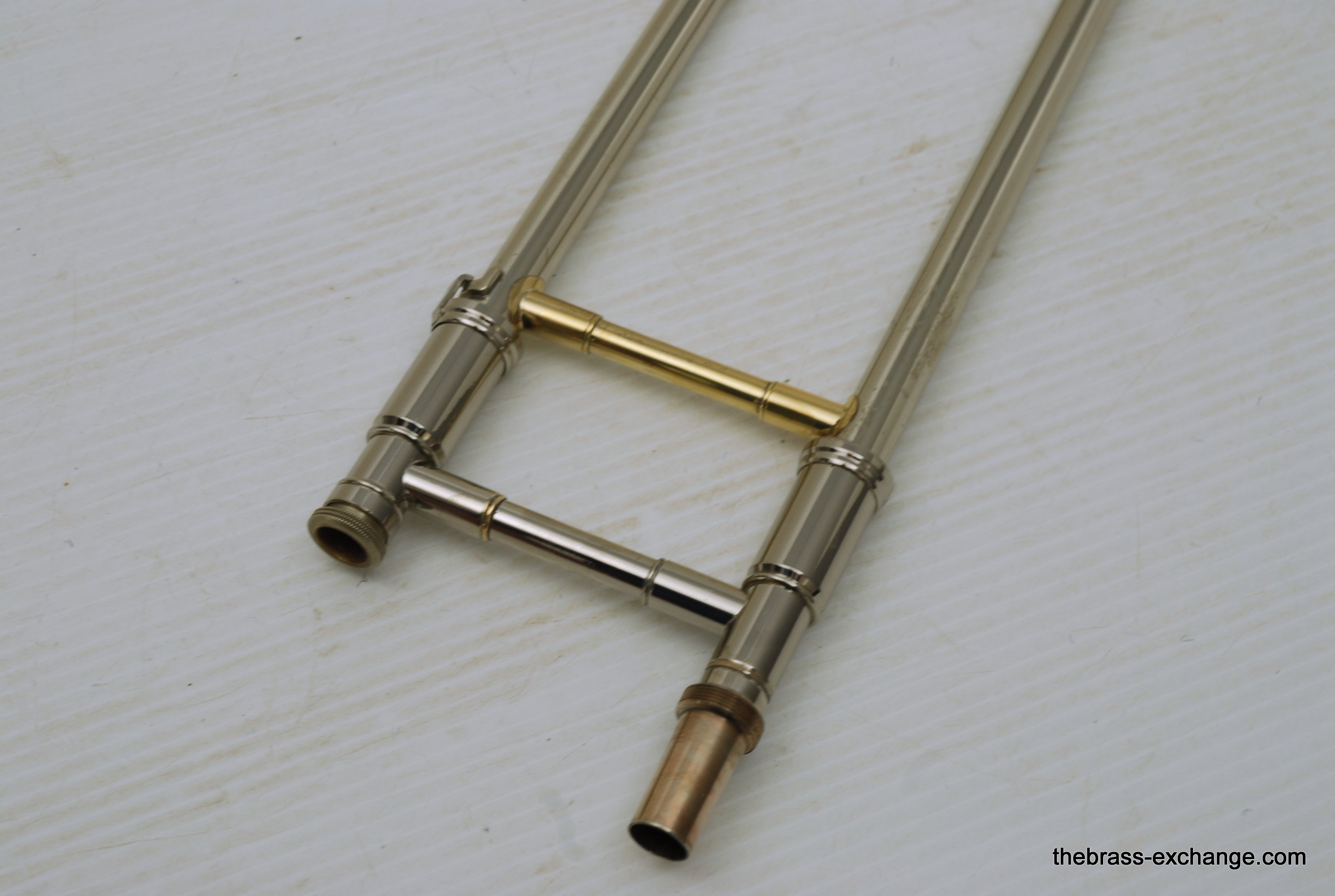Edwards Bass Trombone Slide Model B-DBN. This is nickel silver with yellow brass end crook. Includes 1 removable leadpipe. Edwards Bass Slides also mate with Bach Bell Sections. This is a great slide and has had full shop service and chemical bath. No issues. In-stock for immediate delivery.