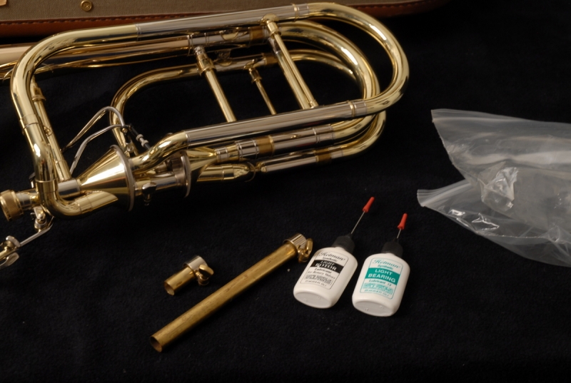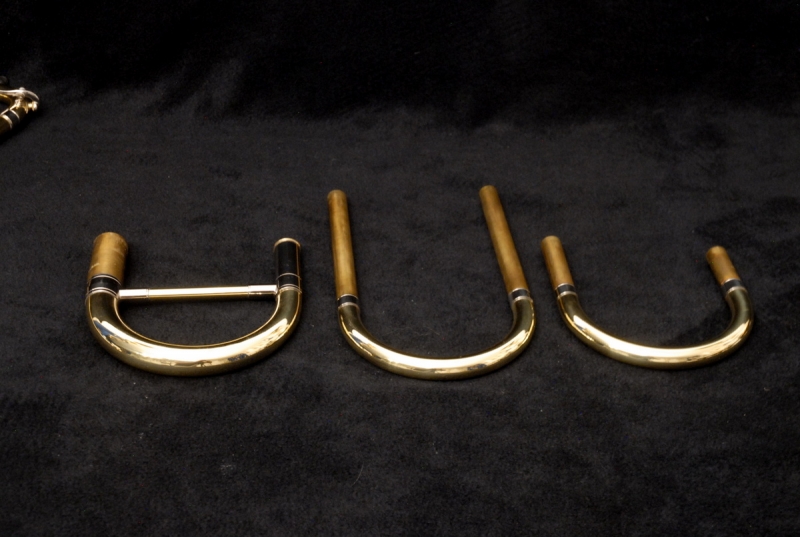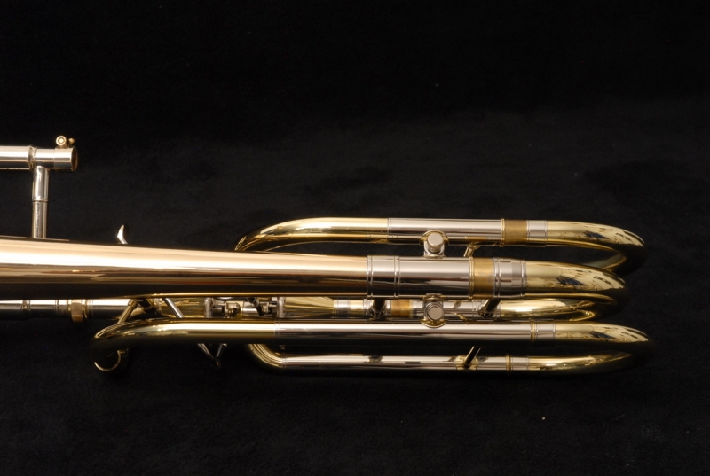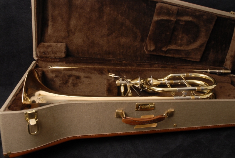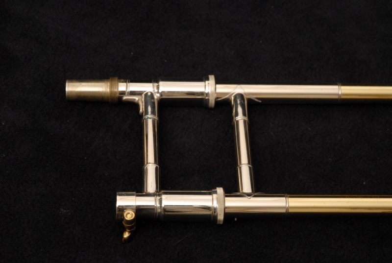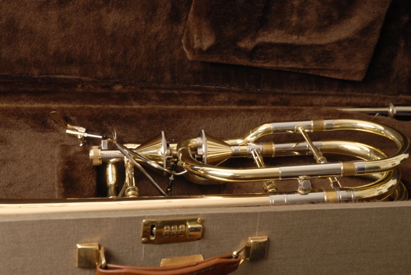 The slide is an early 1990s Bach 50 single bore (.562) model, modified with a collar and three removable leadpipes. The slide is flawless in feel and appearance. The original Edwards/Getzen hard case is included and in excellent condition. According to the original owner, the case never left his house — he used a lightweight Protec case for transport, which is also available (shipping cost only).