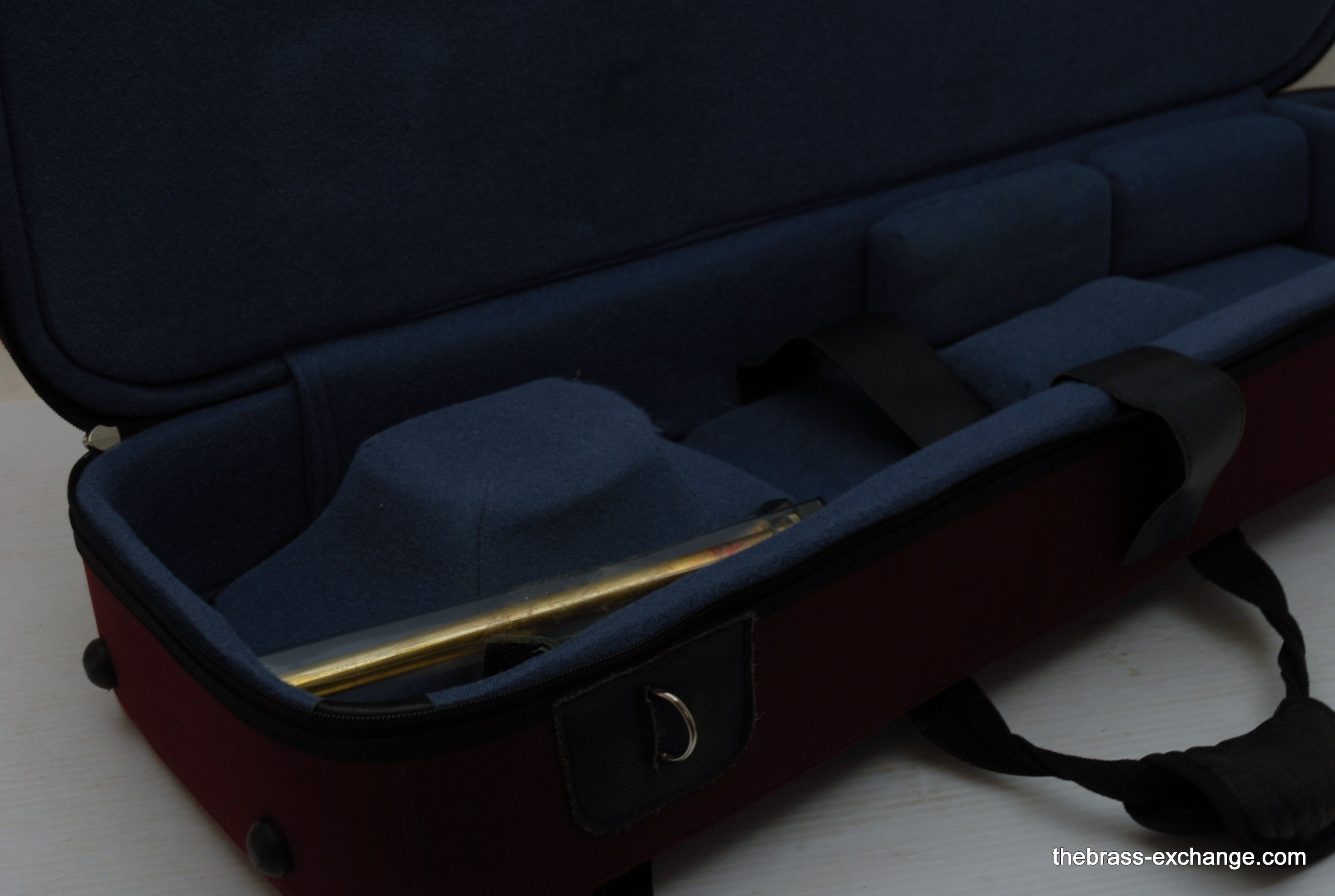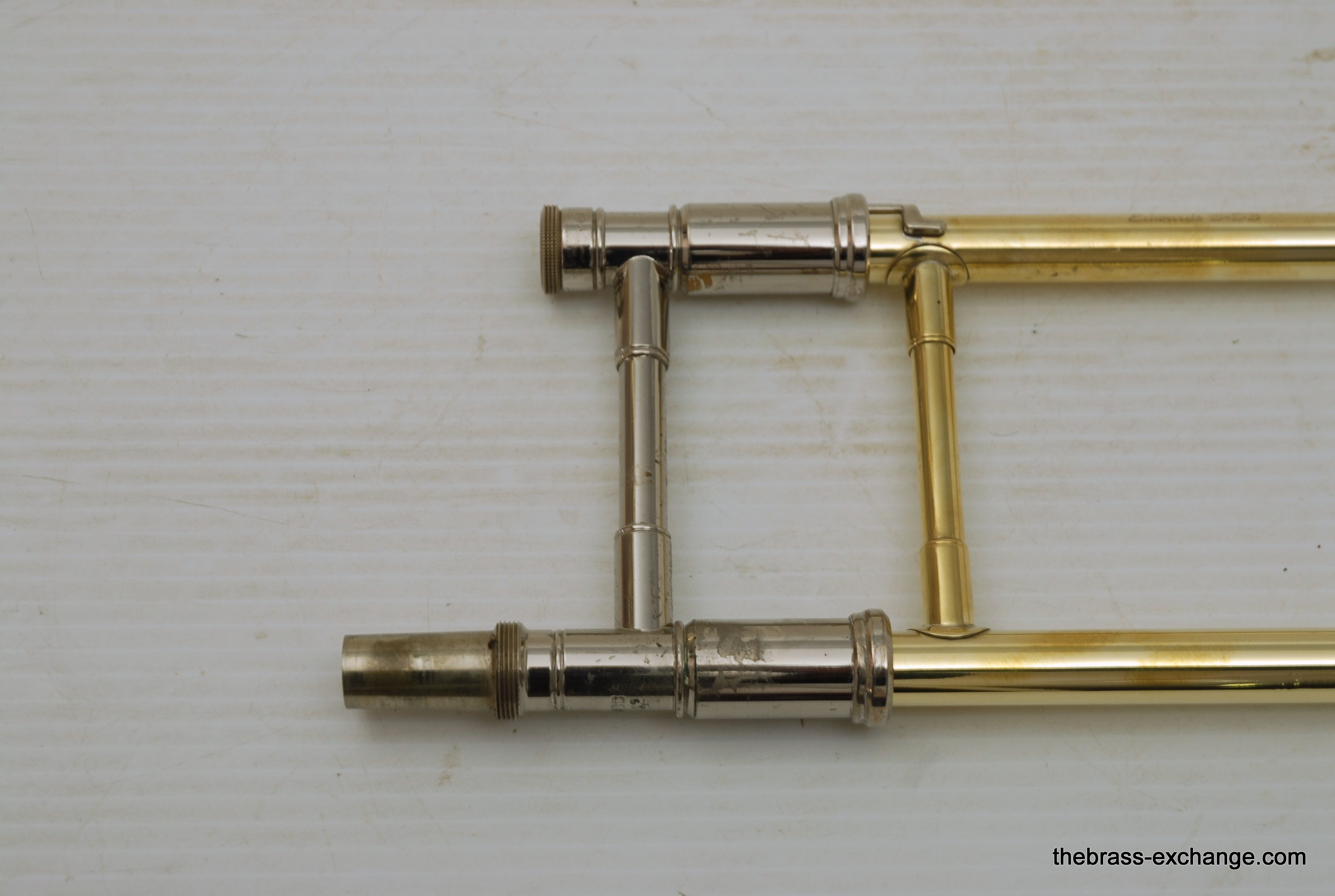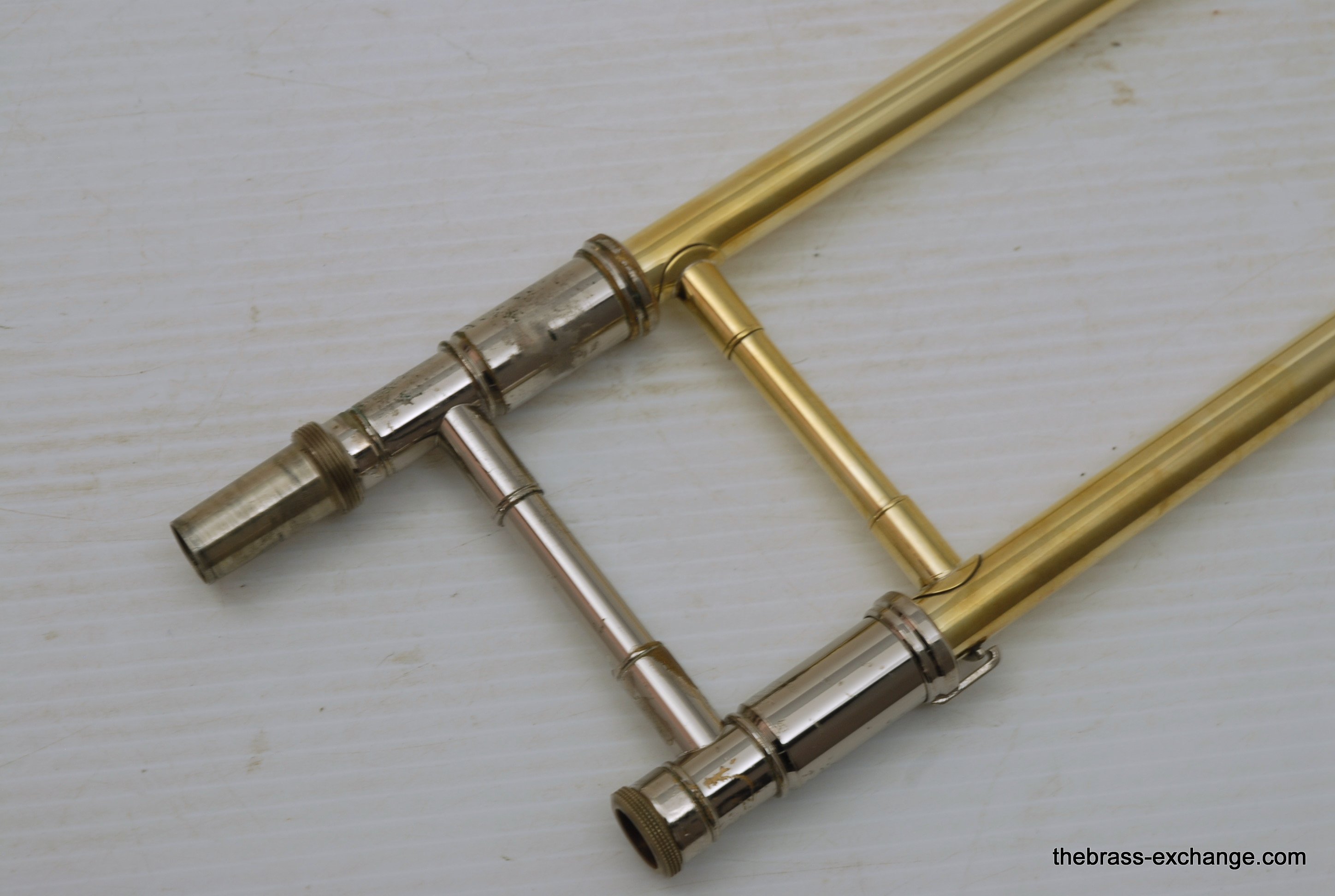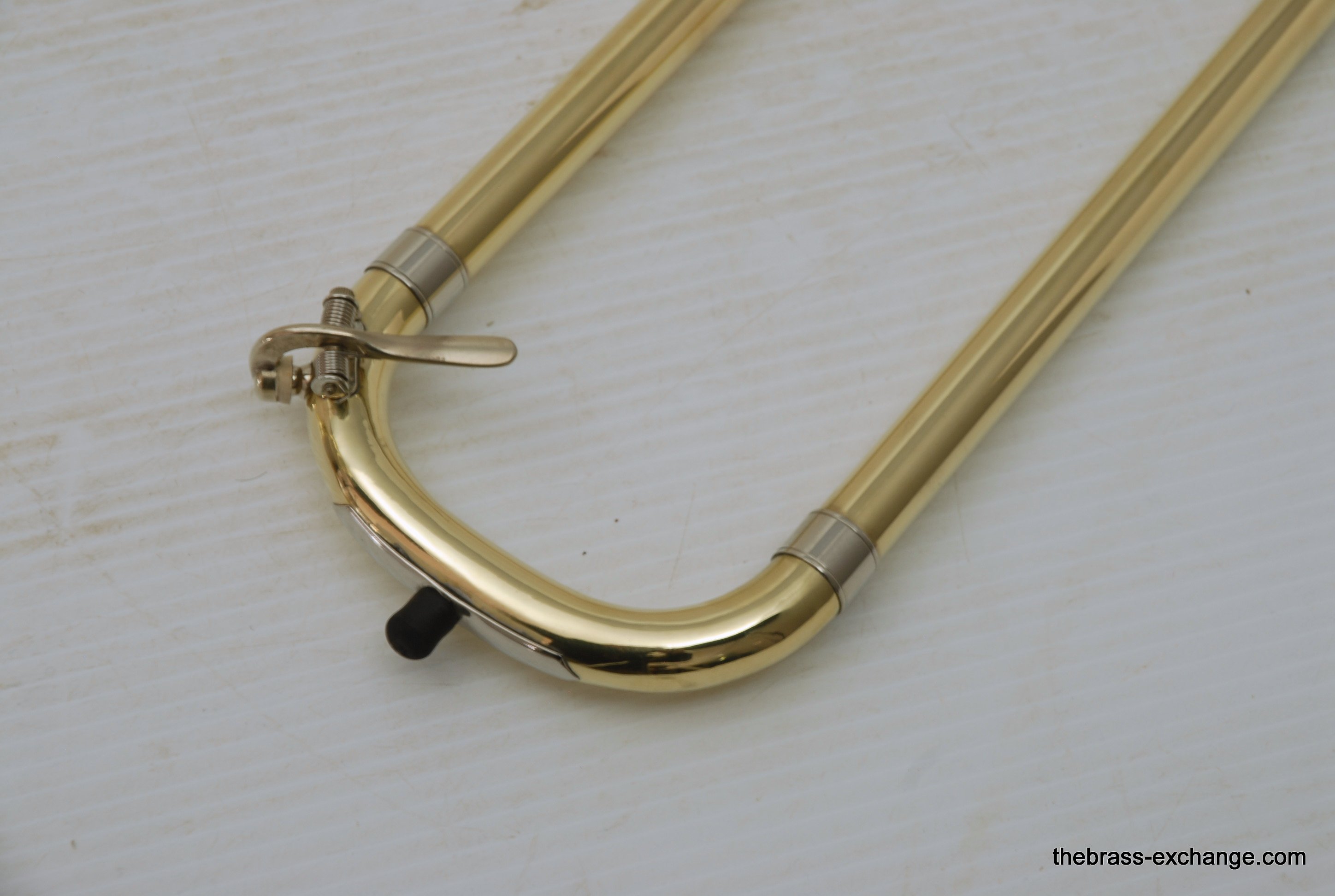 Edwards Custom Bass Trombone. Has independent Axial Flow Valves Bb/F/G/Eb tuning.  Bell section is 9,5" Yellow Brass 1239CF with detachable flare. Handslide is lighweight brass Edwards dual bore .562/5.578.  Plays big and open.   Includes compact travel case, about the size of a viola case, perfect for travel and pro players on the road. This Pre-owned instrument has had full restoration. Full shop service including new lacquer finish on the valve section and all tuning slides. Bell and handslide are unlacquered.  Valve action is perfect, handslide is excellent, inludes 3 removable Edwards leadpipes included. In Stock for immediate delivery.