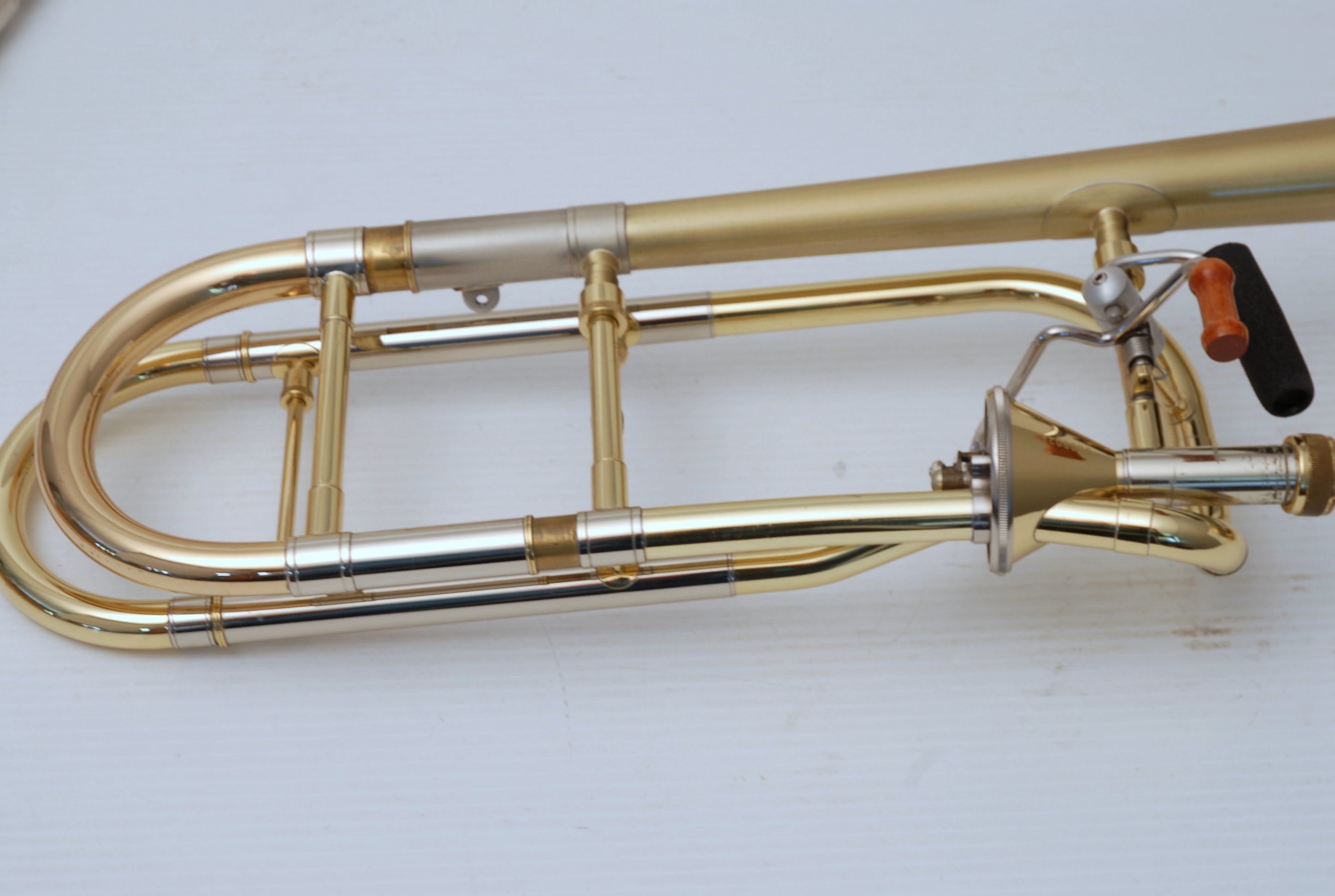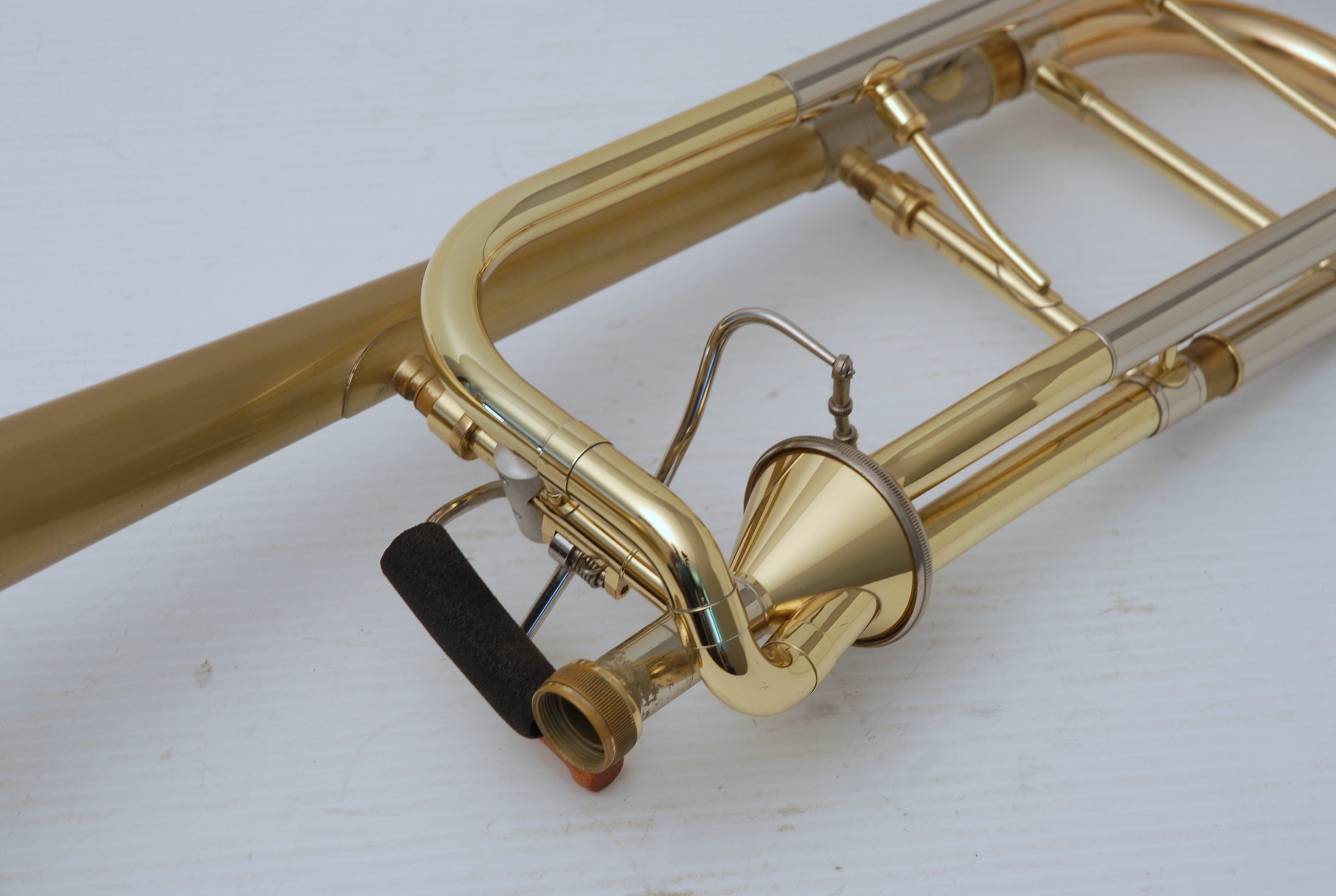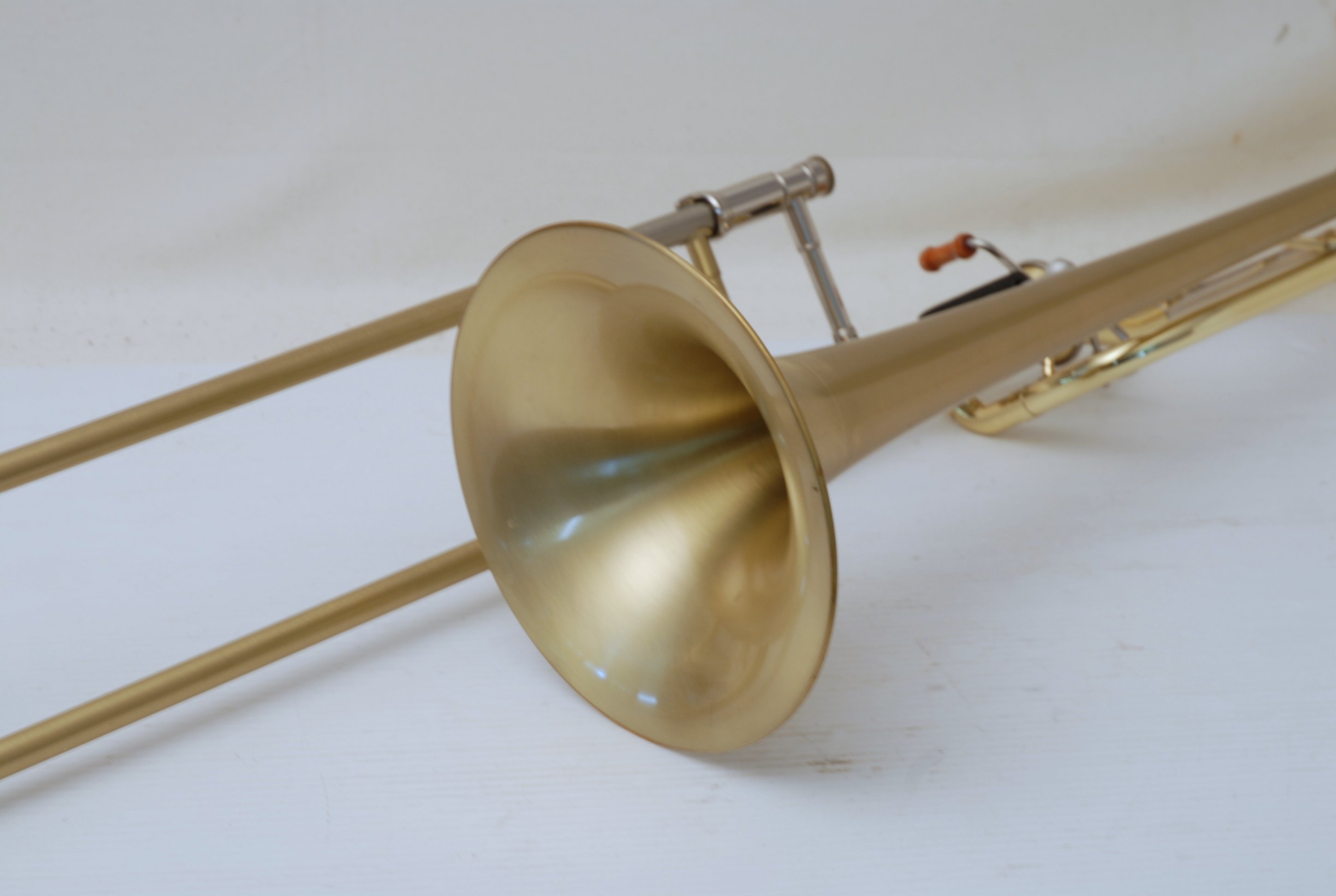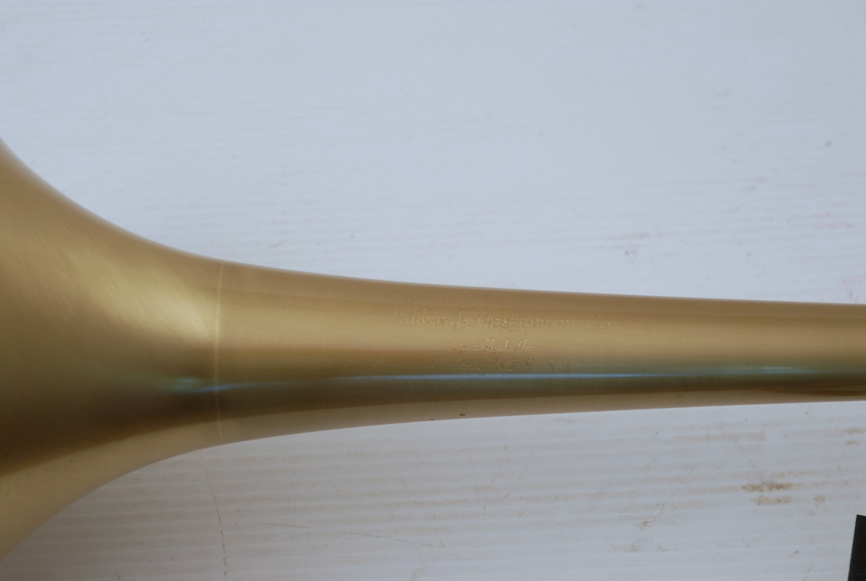 Edwards T-350E Large Bore tenor. Has 324CF Bell Section with Axial Flow (Thayer) Valve, Gold Brass Tuning Slide. Handslide is TB-CN Tenor .547 with Bass end crook. Overall excellent condition single owner horn. Will have slide set-up prior to delivery. Never any damage or repairs to this instrument, plays like a dream. Comes with 3 removable leadpipes and original hard case.