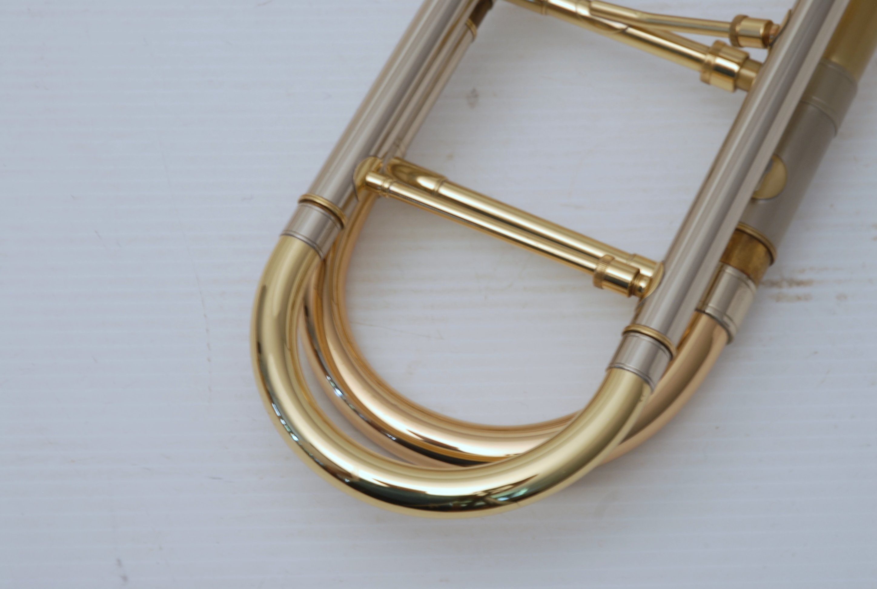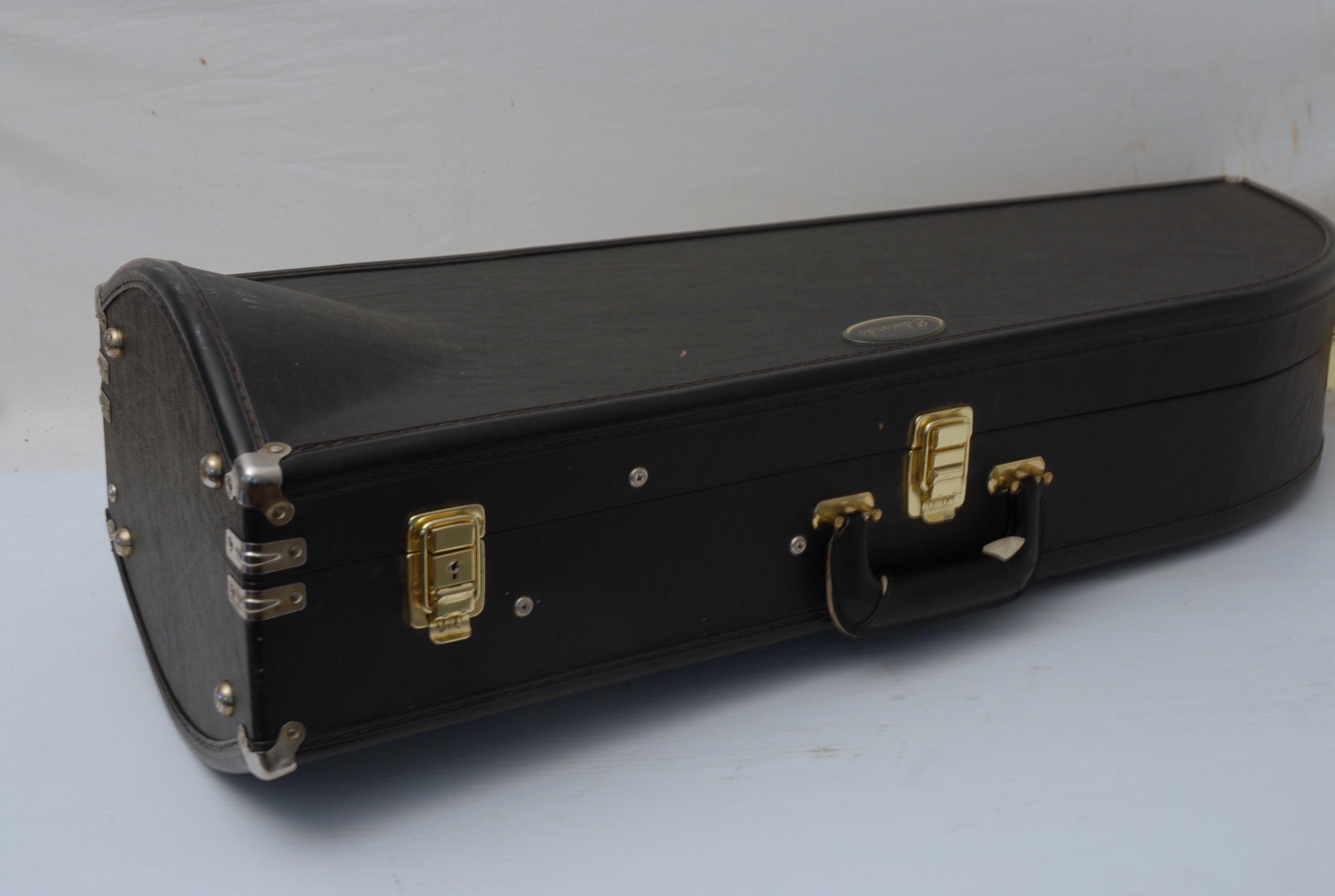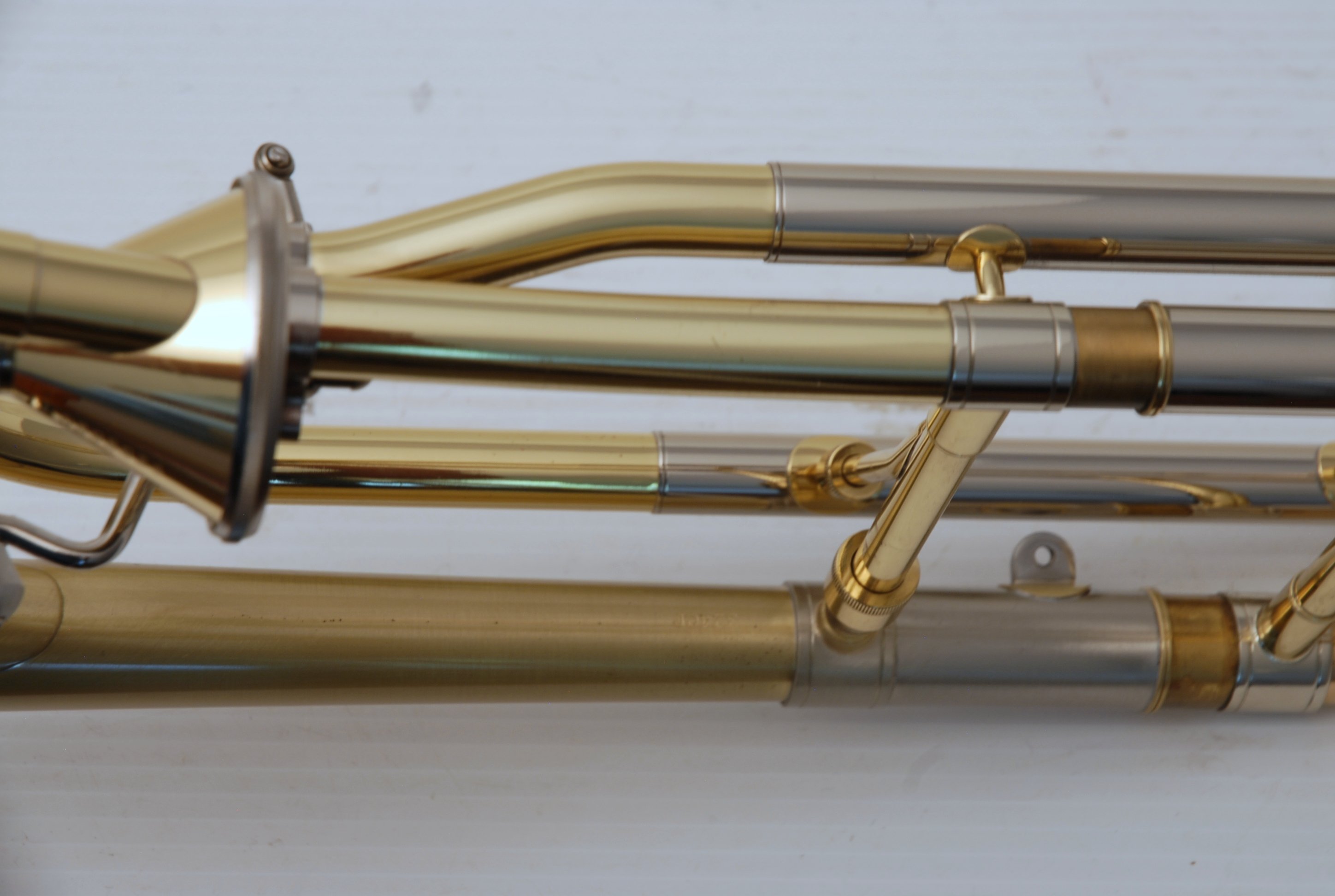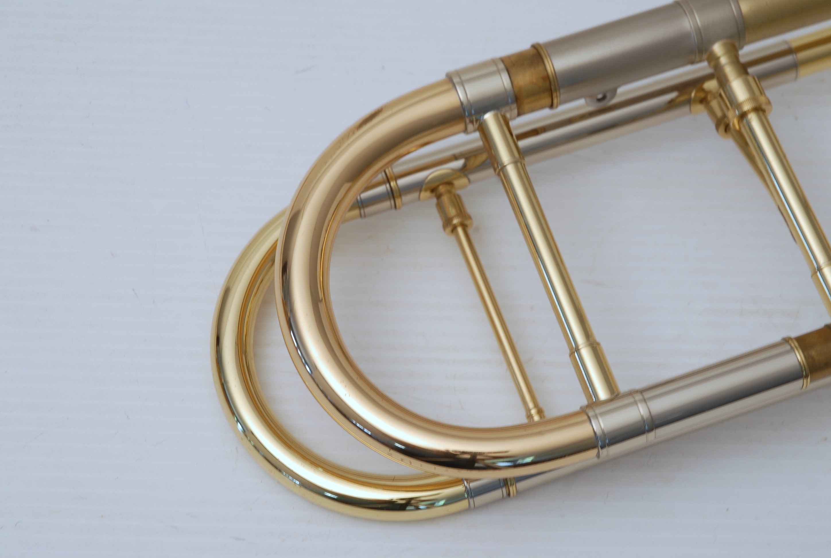 Edwards T-350E Large Bore tenor. Has 324CF Bell Section with Axial Flow (Thayer) Valve, Gold Brass Tuning Slide. Handslide is TB-CN Tenor .547 with Bass end crook. Overall excellent condition single owner horn. Will have slide set-up prior to delivery. Never any damage or repairs to this instrument, plays like a dream. Comes with 3 removable leadpipes and original hard case.