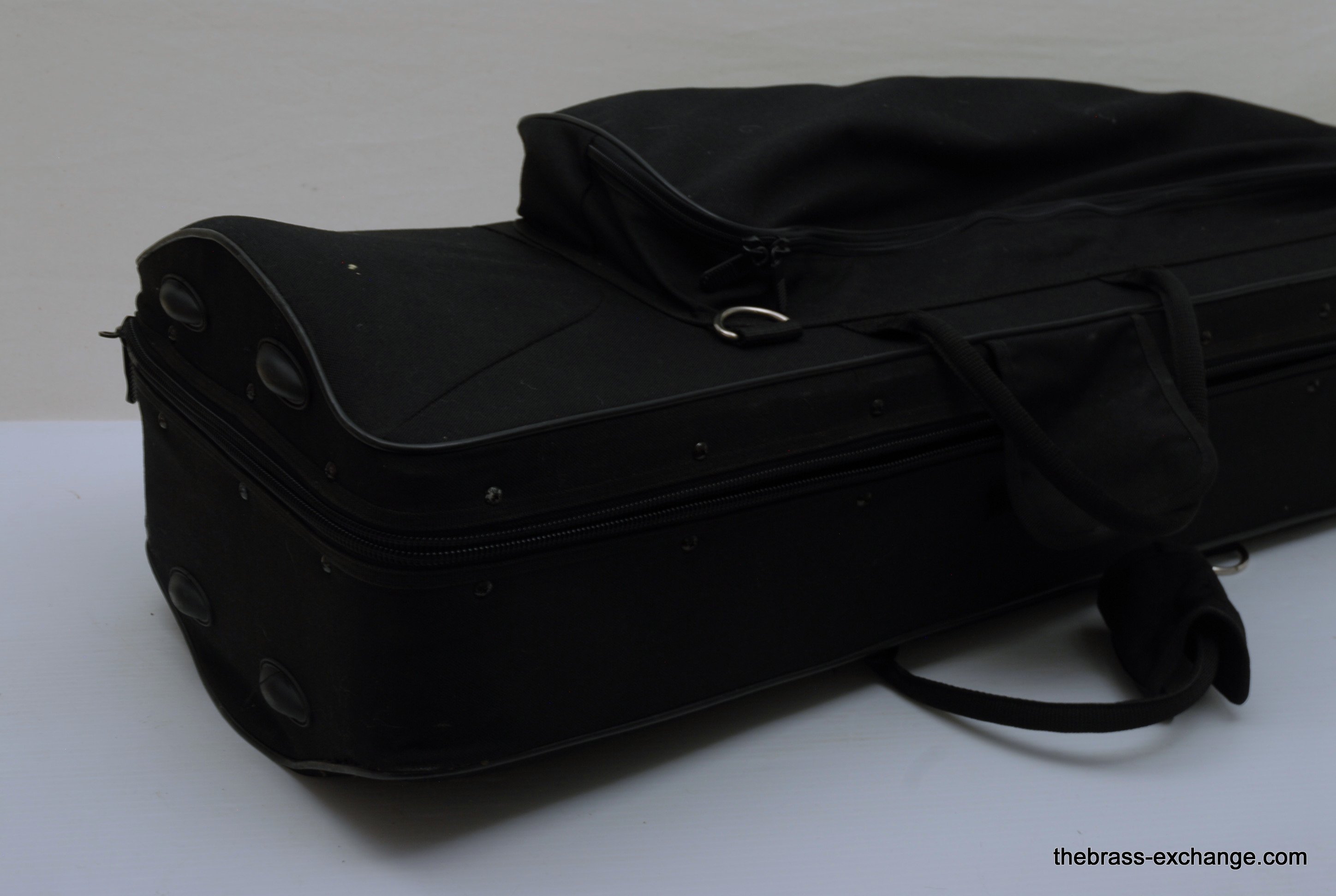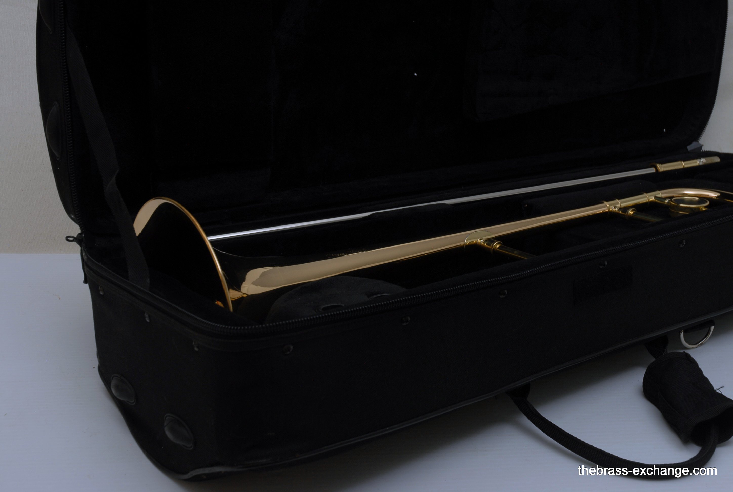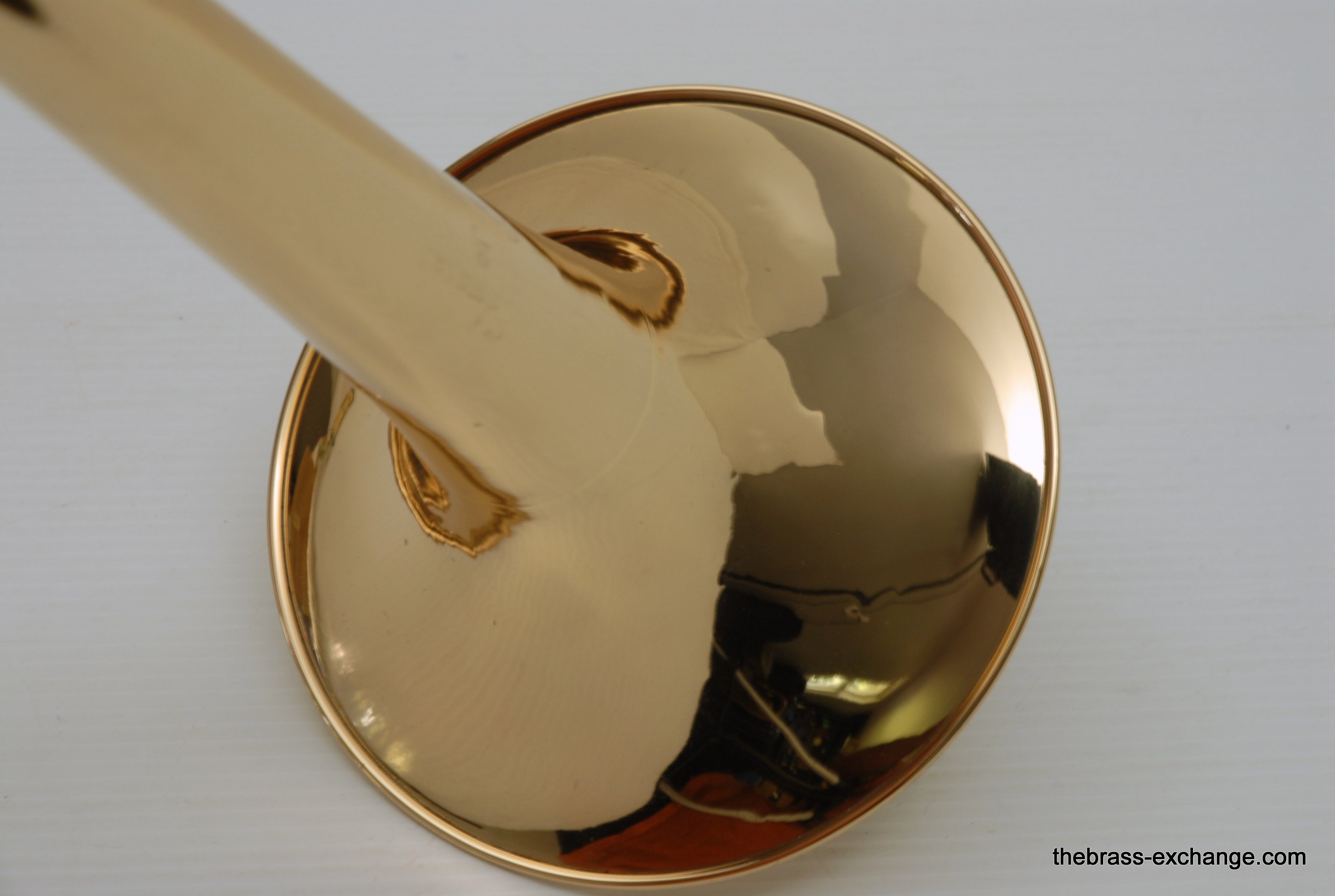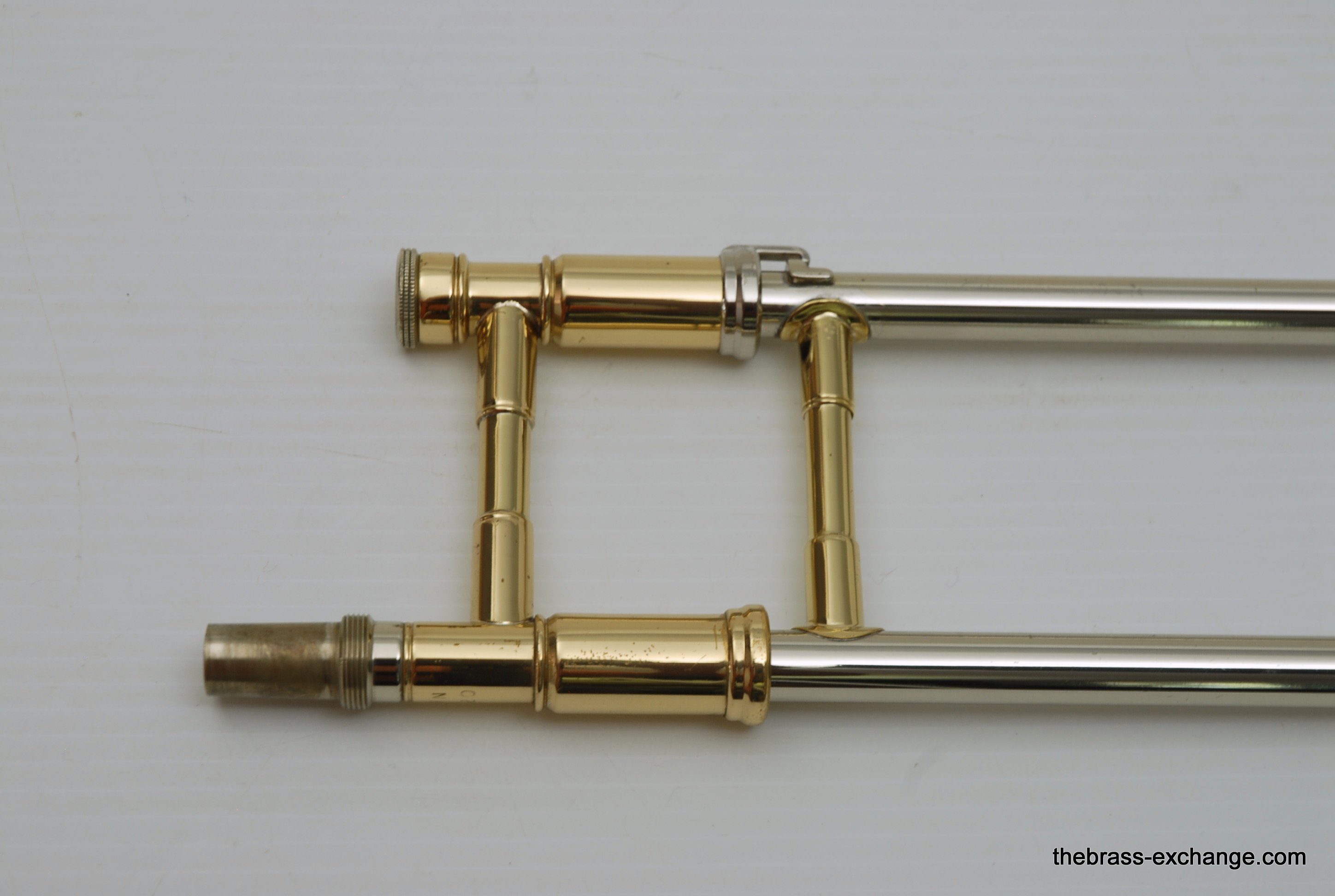 Edwards T302 .500 Bore Jazz Trombone. Has 9191CF Gold brass Bell with LT Nickel Silver Handslide, Yellow Brass Endcrook. This is a gently used custom Edwards, made in Elkhorn, WI. Bell diameter is slightly under 8", but not quite 7.75, is in between. The entire instrument is in excellent condition, never any damage or repairs. A few minor mute dings as pictured, will come out prior to delivery. Handlside has fresh pro set-up, no tension, as smooth as it gets. Would be an excellent lead/jazz horn for any level player. Comes with a protec case, 2 removable leadpipes.
