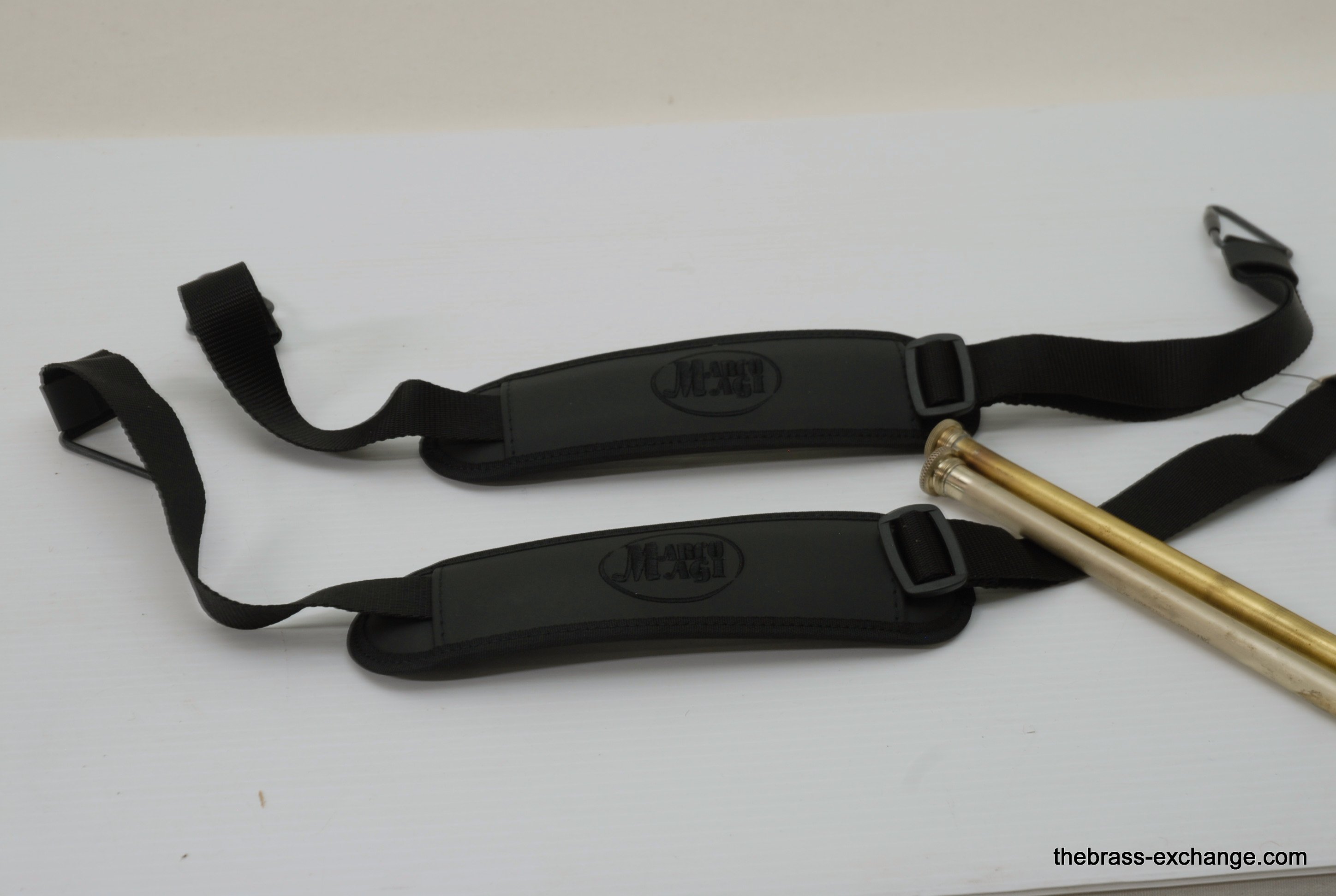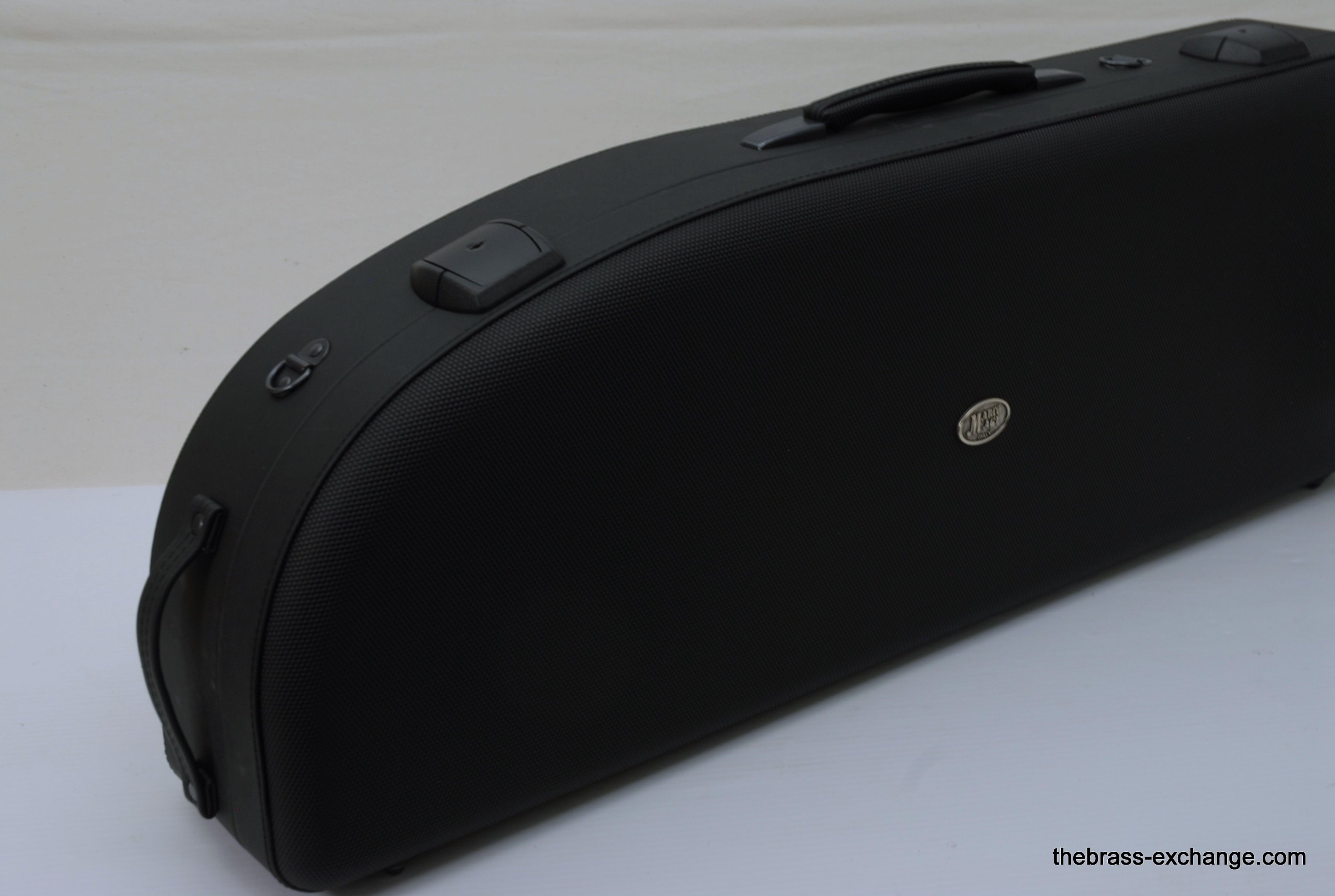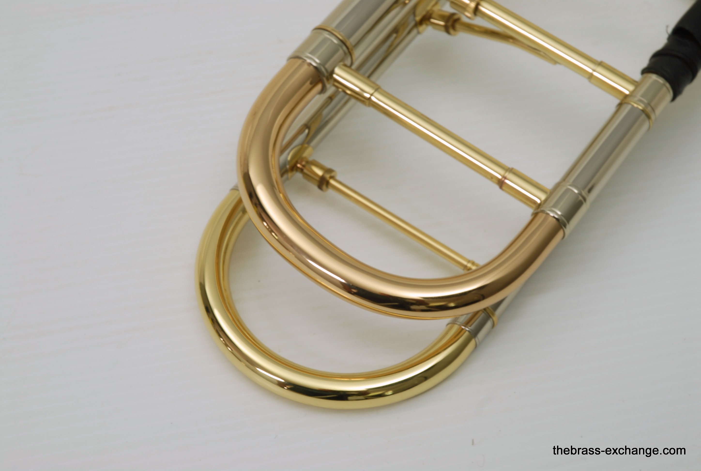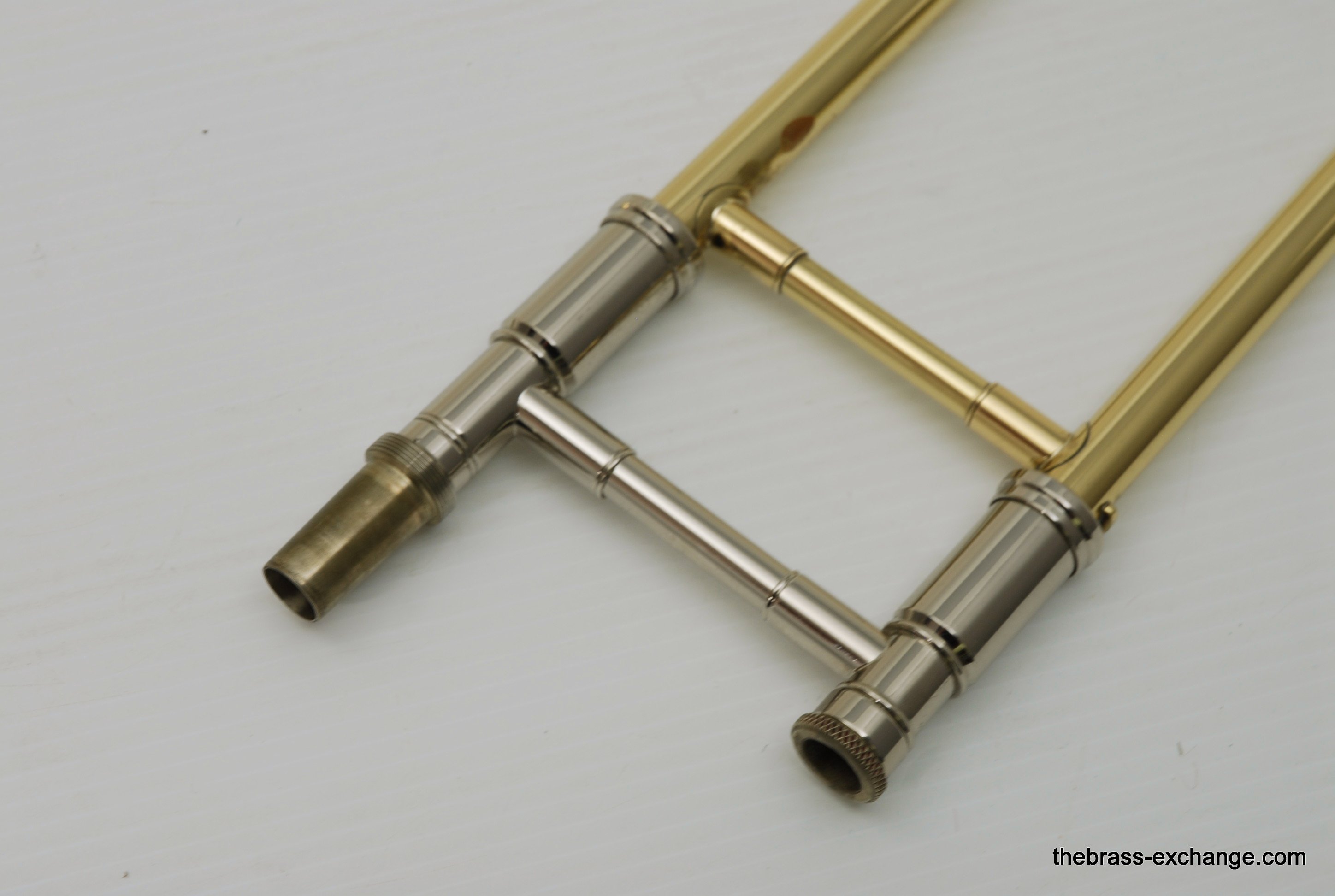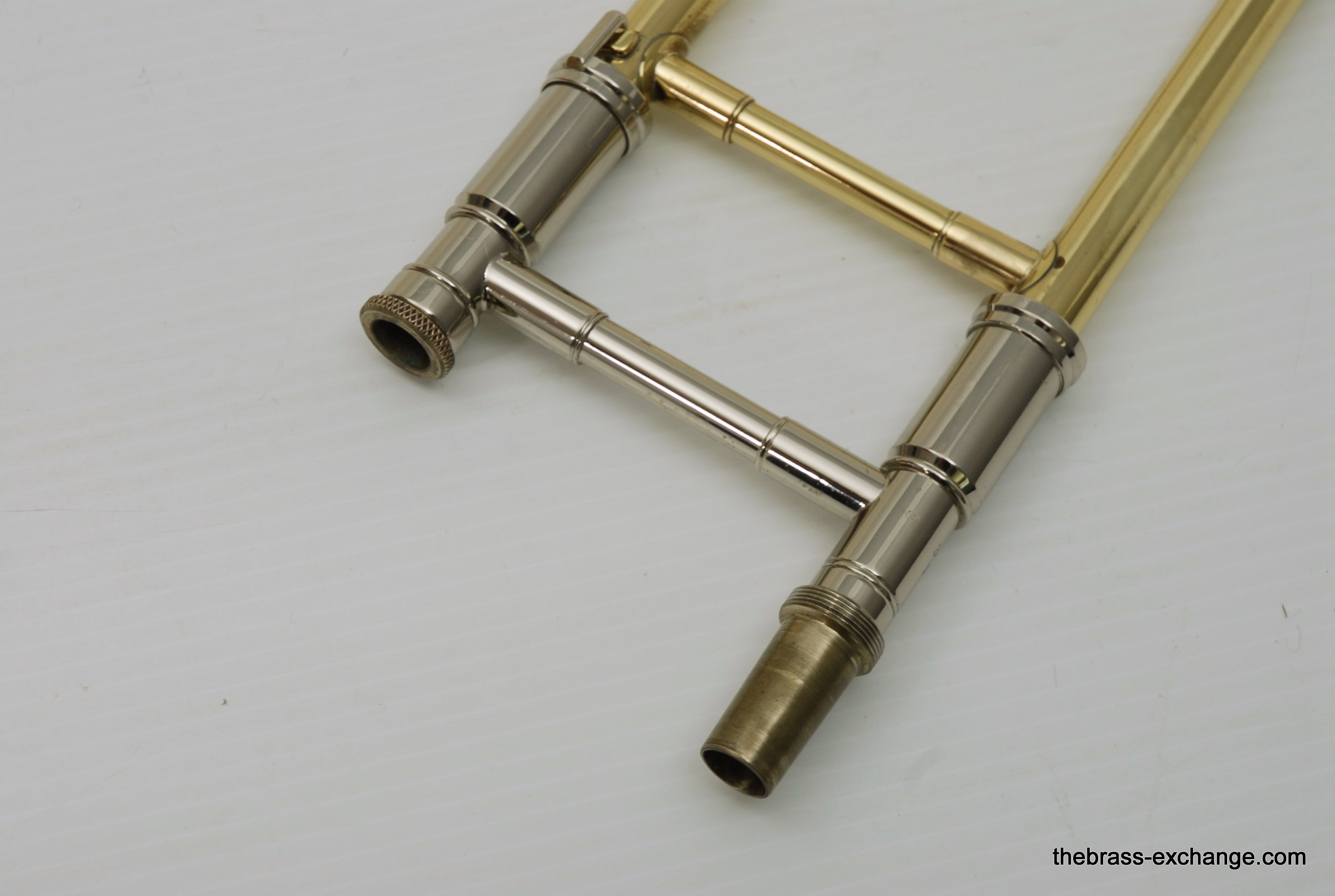 Edwards T350E Custom Large Bore Tenor with Axial Flow. Has 384CF Lightweight yellow brass bell 8.5", gold brass tuning slide, and standard .547 T-STD Lightweight brass handslide with brass endcrook. This is a lightly used custom factory order, single owner in perfect playing condition. Never any damage or repairs. Minimal lacquer wear. Minimal acid blead around the bell rim.  No dents or dings. Handslide and valve action are perfect. Comes with 2 removable leadpipes, one of which is an M&K nickel silver pipe. The 384CF bell is lighweight and responsive, solderd bead wire, tempered alloy, double buffed. Definitely one of the most popular Edwards Bells. It is a fantastic player, overall a great horn. The best part is that you don't have to travel to the Edwards factory for this one, it's in stock for immediate shipping. Includes a new Marco Magi Black Leather Case, The outer Panels are BN material, rugged, durable, original use- motorcycle seats. Maximum scuff and shock resistant. Case includes removable back back straps, which are very comfortable and made to last. Would be an excellent choice for any pro level player or student going away to college. In-stock for immediate delivery.