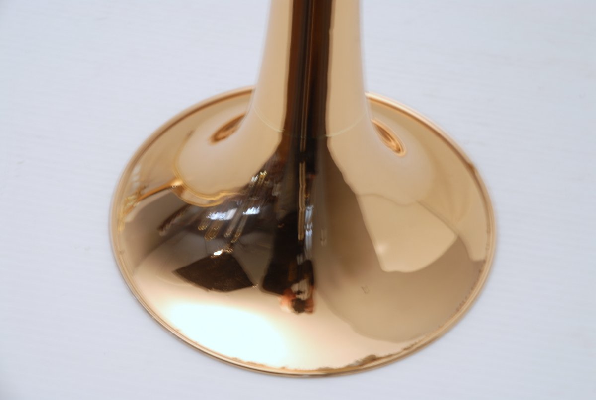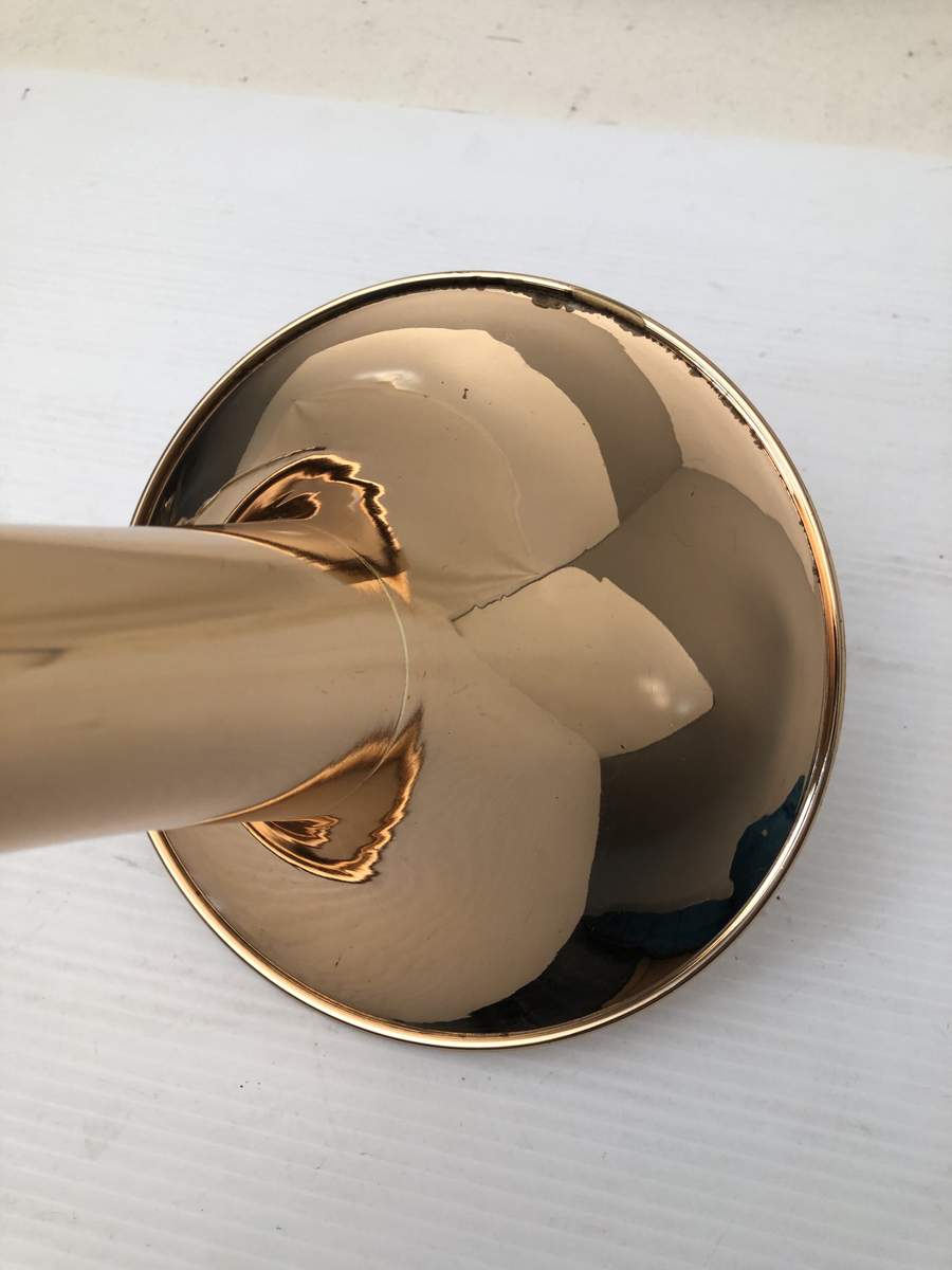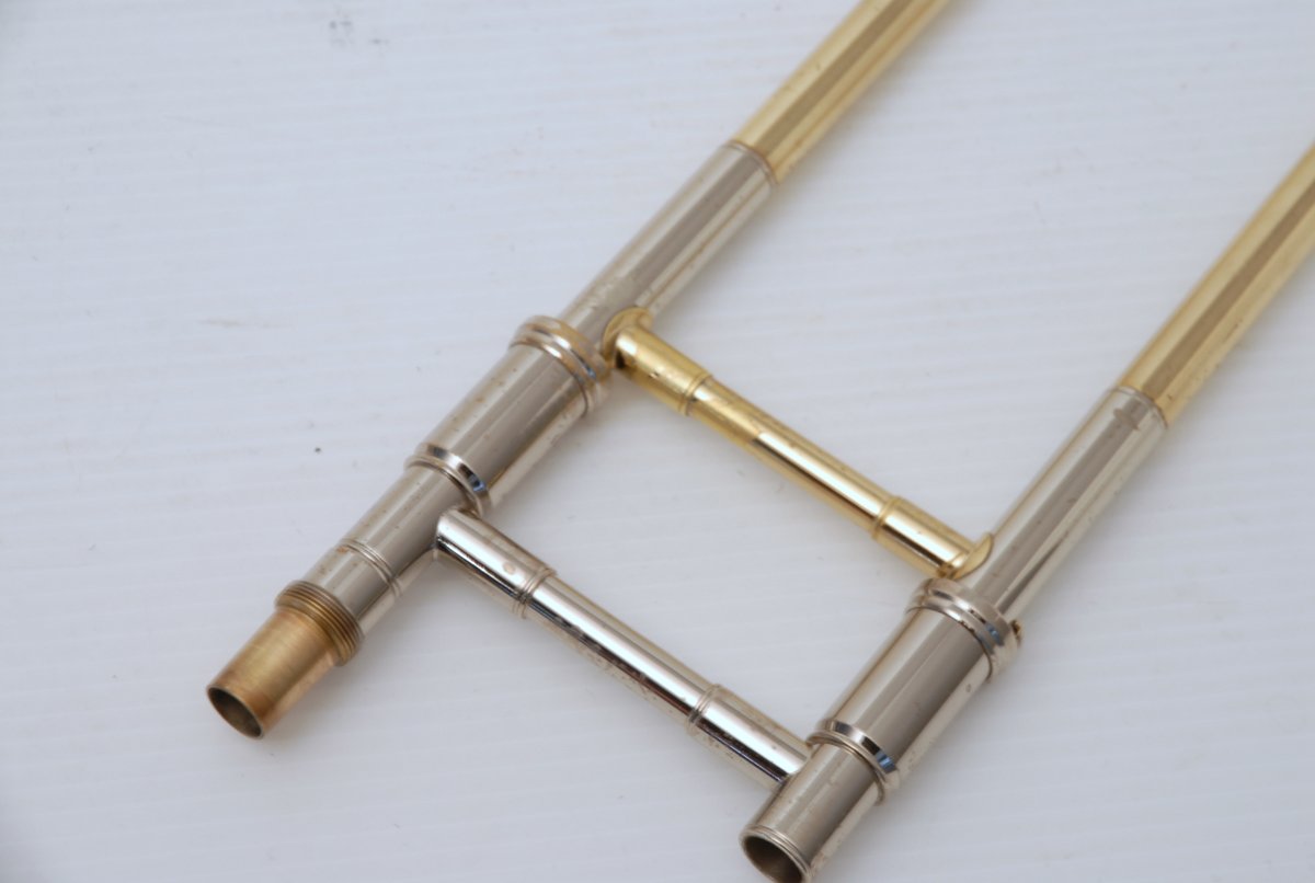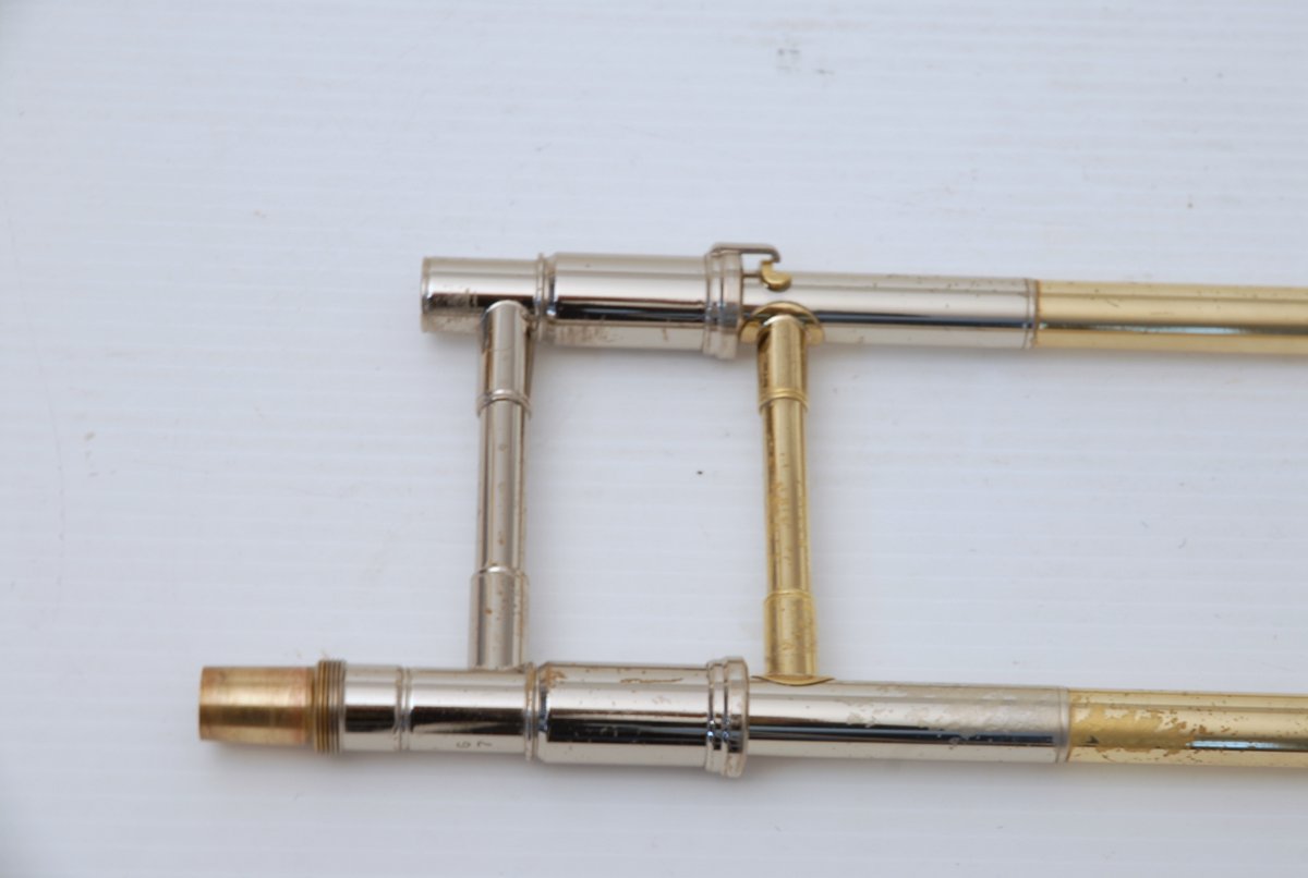 Getzen 3047AF-R Rose Brass Bell model with Thayer Valve. Single owner trombone in excellent playing condition. Photo's are in condition upon arrival prior to chemical bath, a couple of very small dings to be taken out of F wrap tubing. Lacquer is in excellent condition. A small amout of acid bleed around part of bell rim, minor lacquer wear on neck and hand grip areas. Valve section is very quick and easy, handslide is fantastic. Would make an excellent large bore tenor for any advancing player. Comes with original case and mouthpiece. A new Getzen 3047 sells new today for $3785. Save Now Play Great!