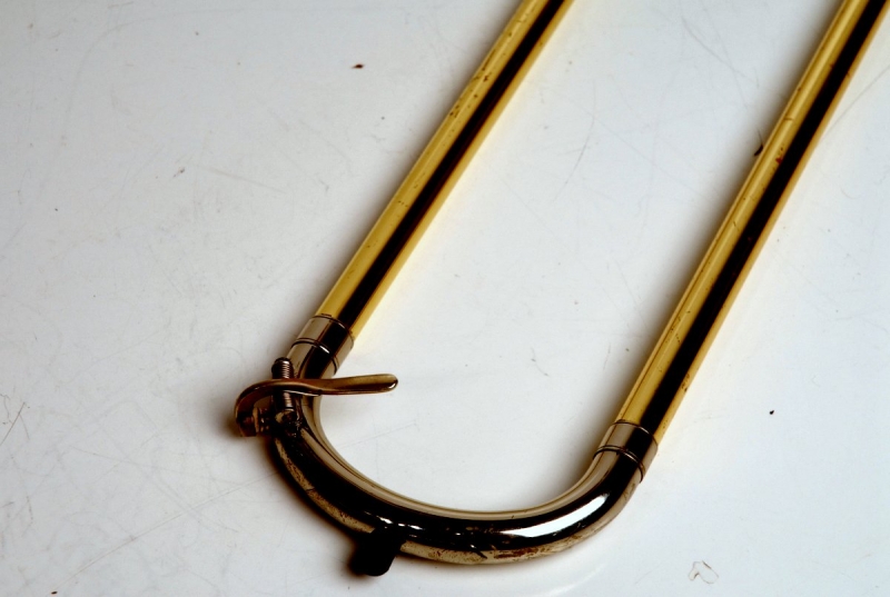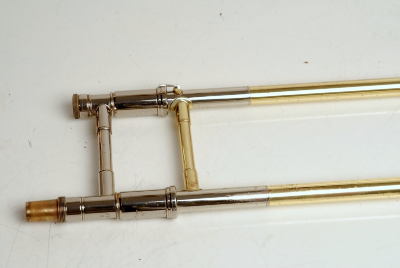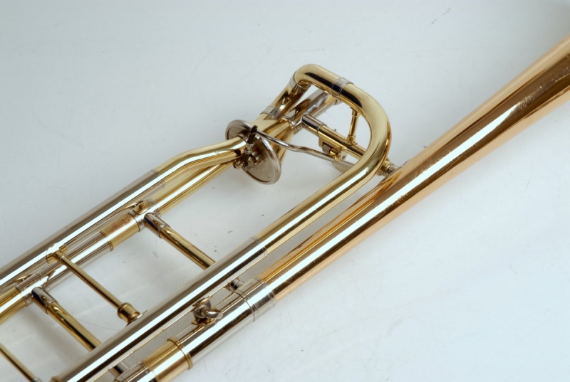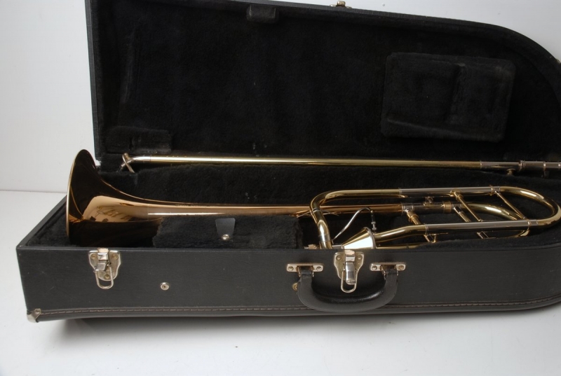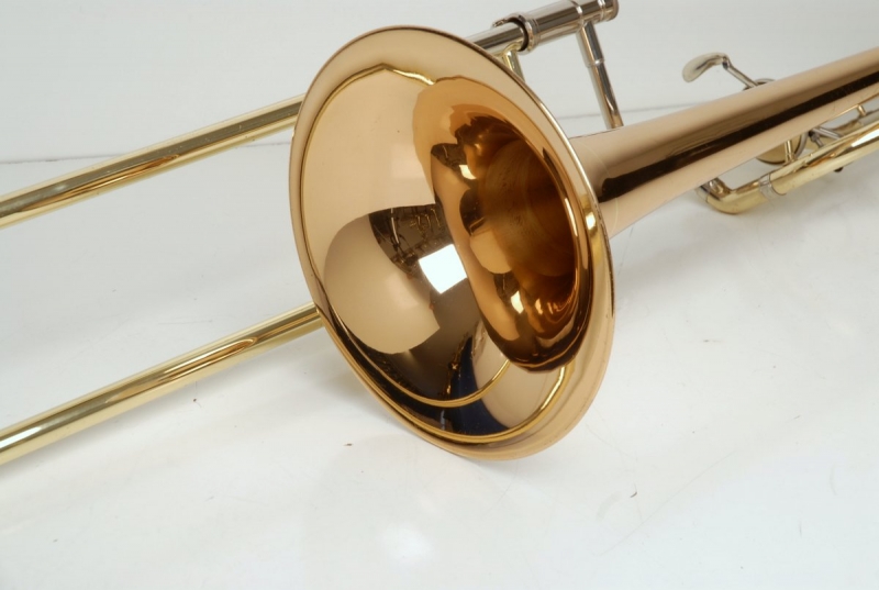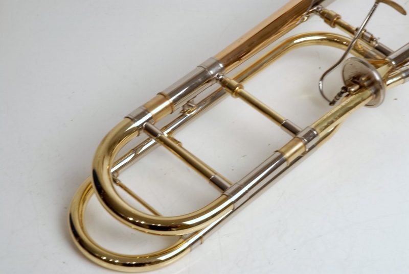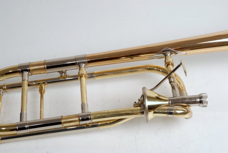 Getzen 3047AFR Large Bore Tenor. Rose Brass 8.5" Bell, .547 Bore Handslide, standard weight, removable leadpipe, original case. Single owner horn, orignally purchased 19 years ago used in college and post-college play by high level player. No signs of damage or repair. Ordinary lacquer wear, grip areas, skin contact areas. Freshly chem cleaned and gone over by our shop. Slide is excellent. Valve is super quiet, freshly cleaned and adjusted for maximum playabilty. This would make an excellent first serious large bore trigger horn for an advancing player looking to take their symphonic play to the next level. Orginal case included.