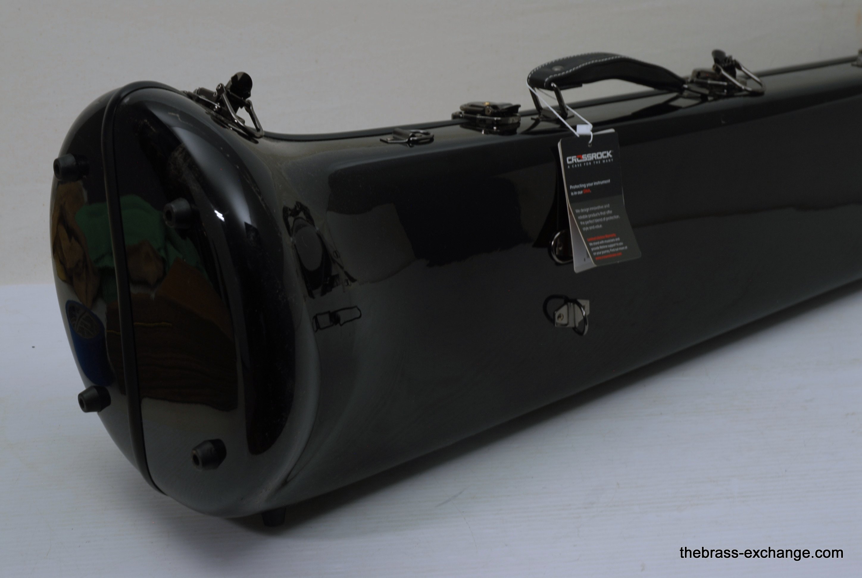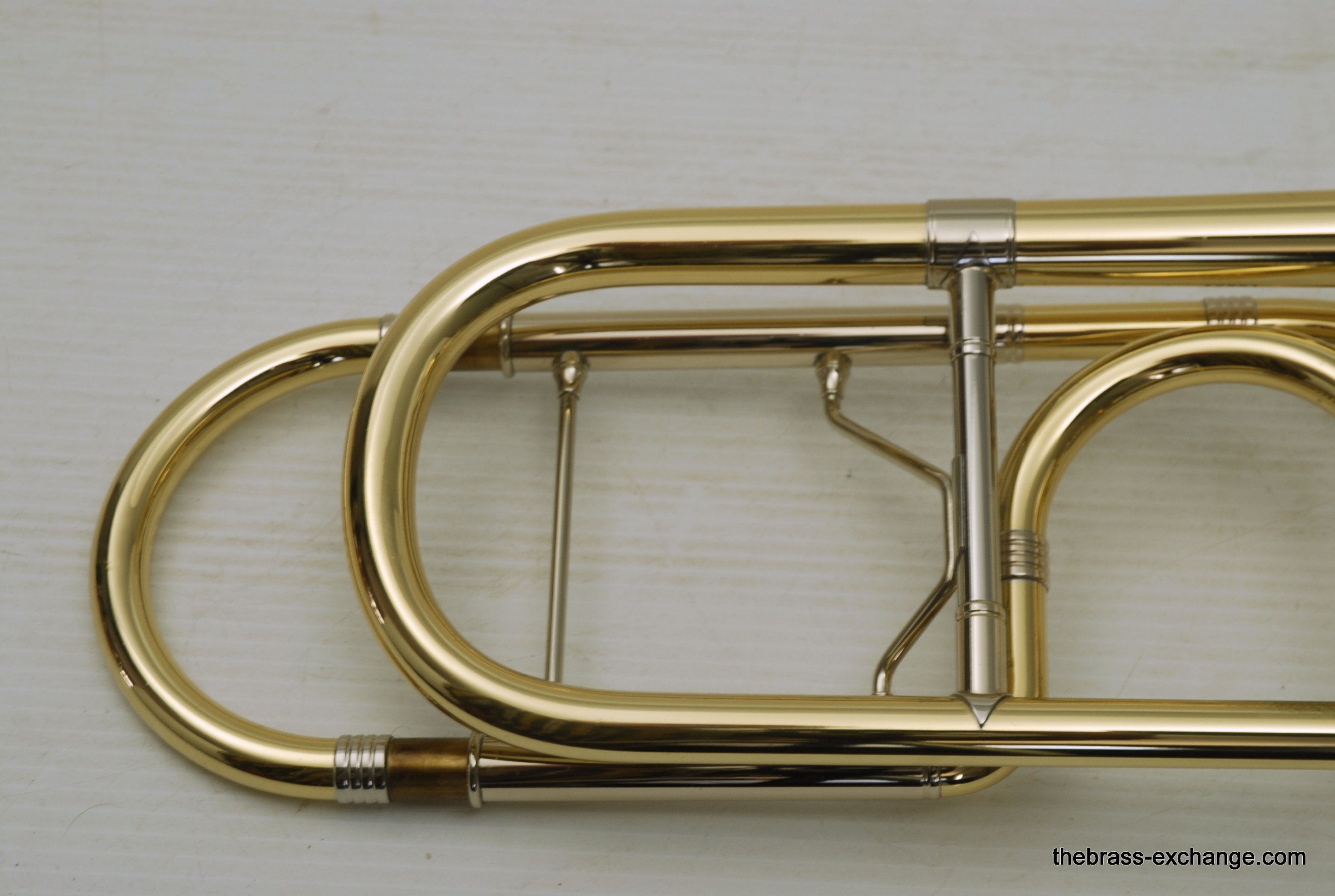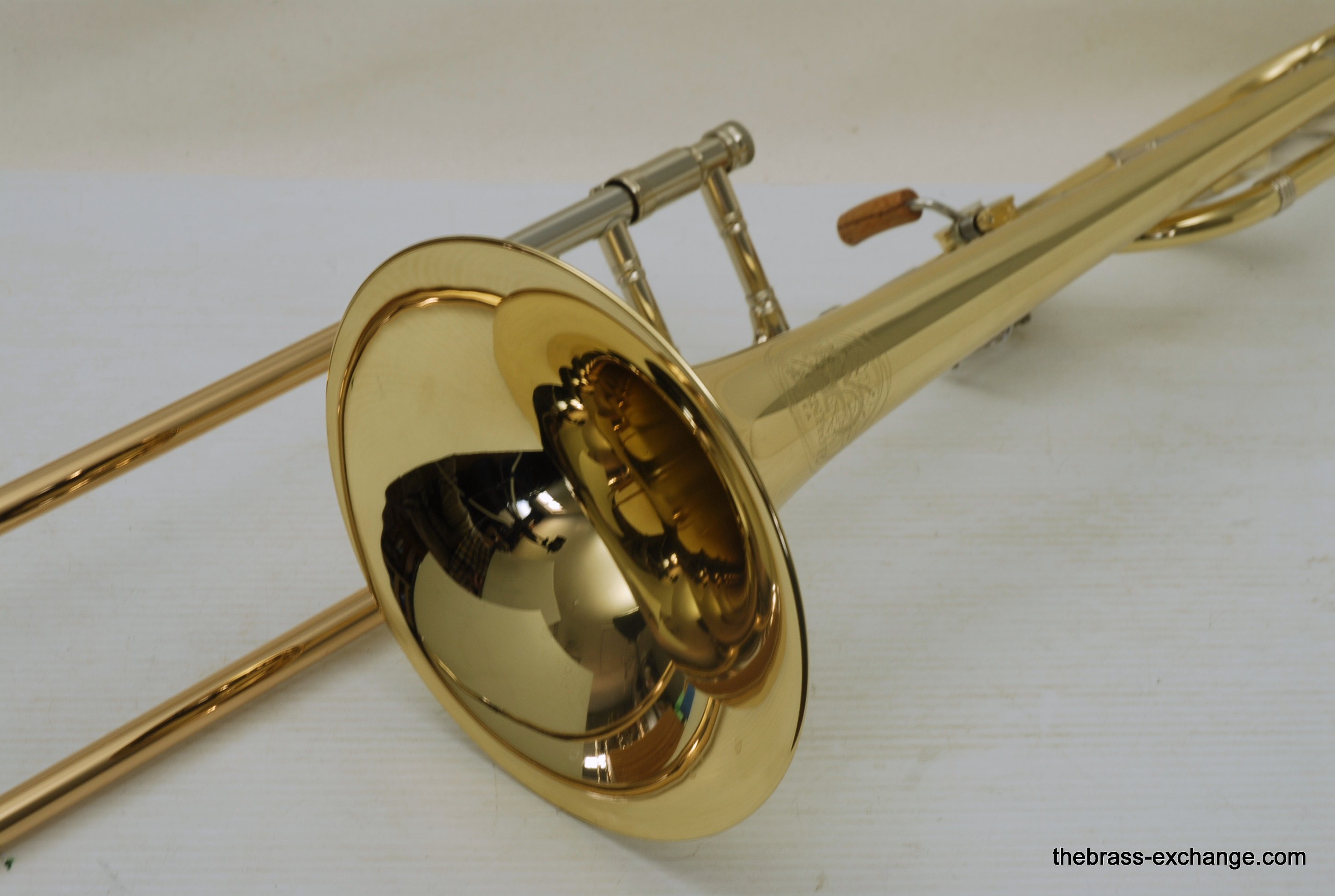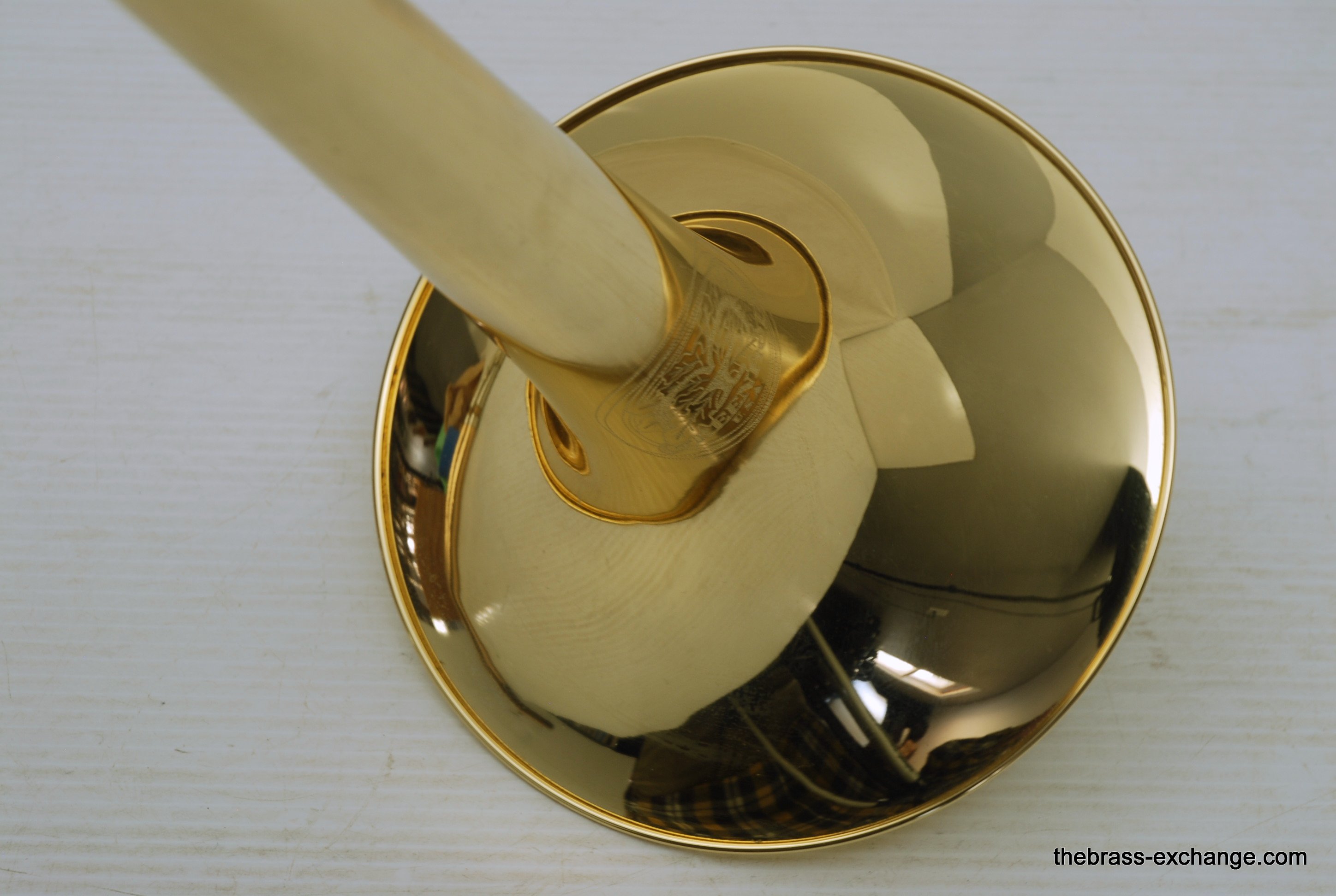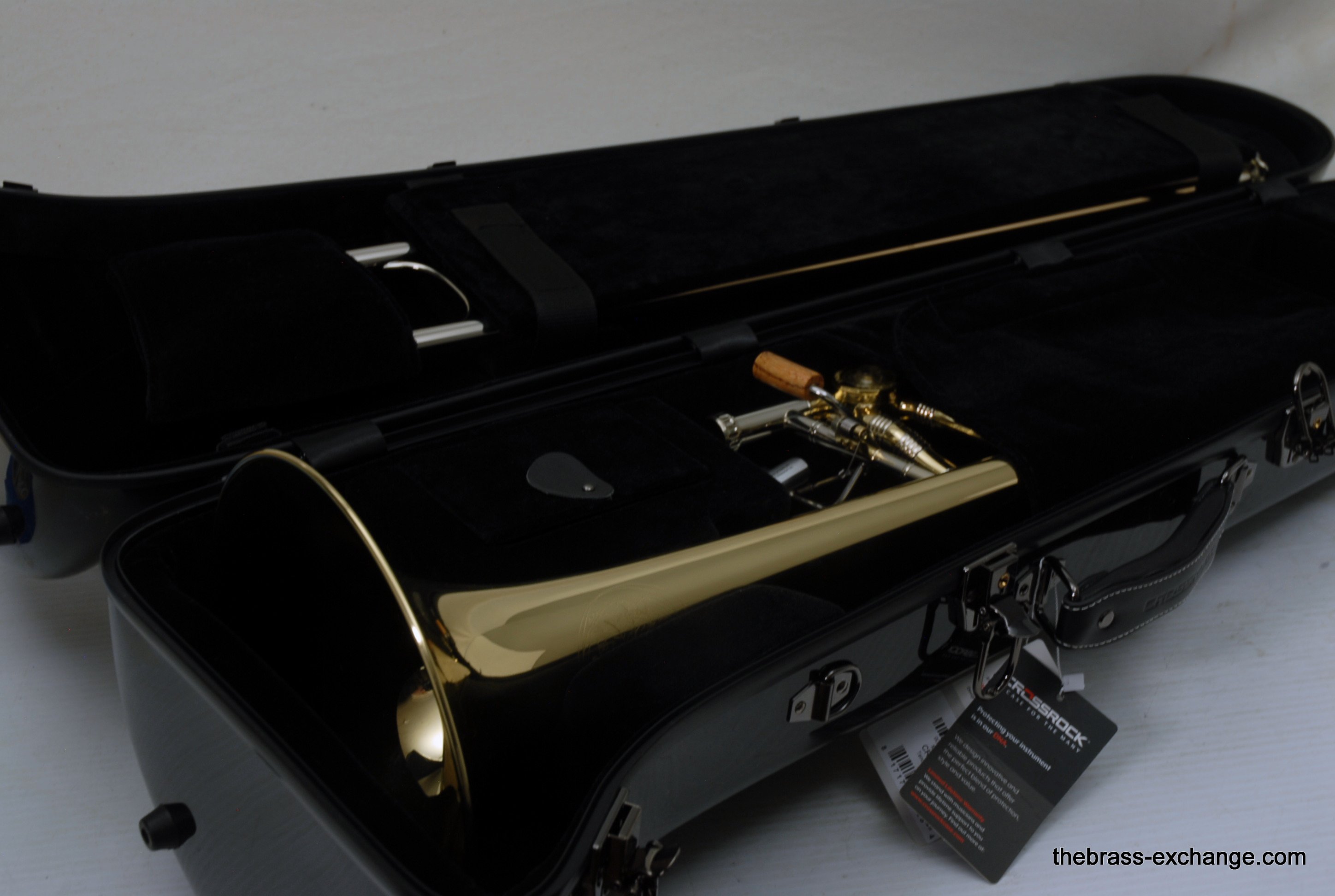 Greenhoe Original Make Tenor Yellow Brass with T.I.S. New Old Stock.  This is indeed another amazing Original Greenhoe .547 tenor made in Wisconsin prior to the closing of the factory.  Has 8.5" Lightweight yellow brass one piece bell, unsoldered rim.  Fantastic Greenhoe rotor, non-modular.  You have to play this one to believe it.  It's sensational.  Handslide is Conn width with T.I.S. tunining in slide, includes one removable leadpipe.  The handslide action is fantastic, about the smoothest slide that you can get, anywhere, and I am very picky when it comes to slides.  This horn is in the style of Conn all the way, unsoldered rim and gold brass slide.  88H Guys, 78H Players, 6H Lovers will take to this one immediately.  Is the type of horn you win an audition with- complex colorful overtones, outstanding projection, amazing intonation.  It really doesn't get any better than this.  Comes with a black Crossrock tenor case.