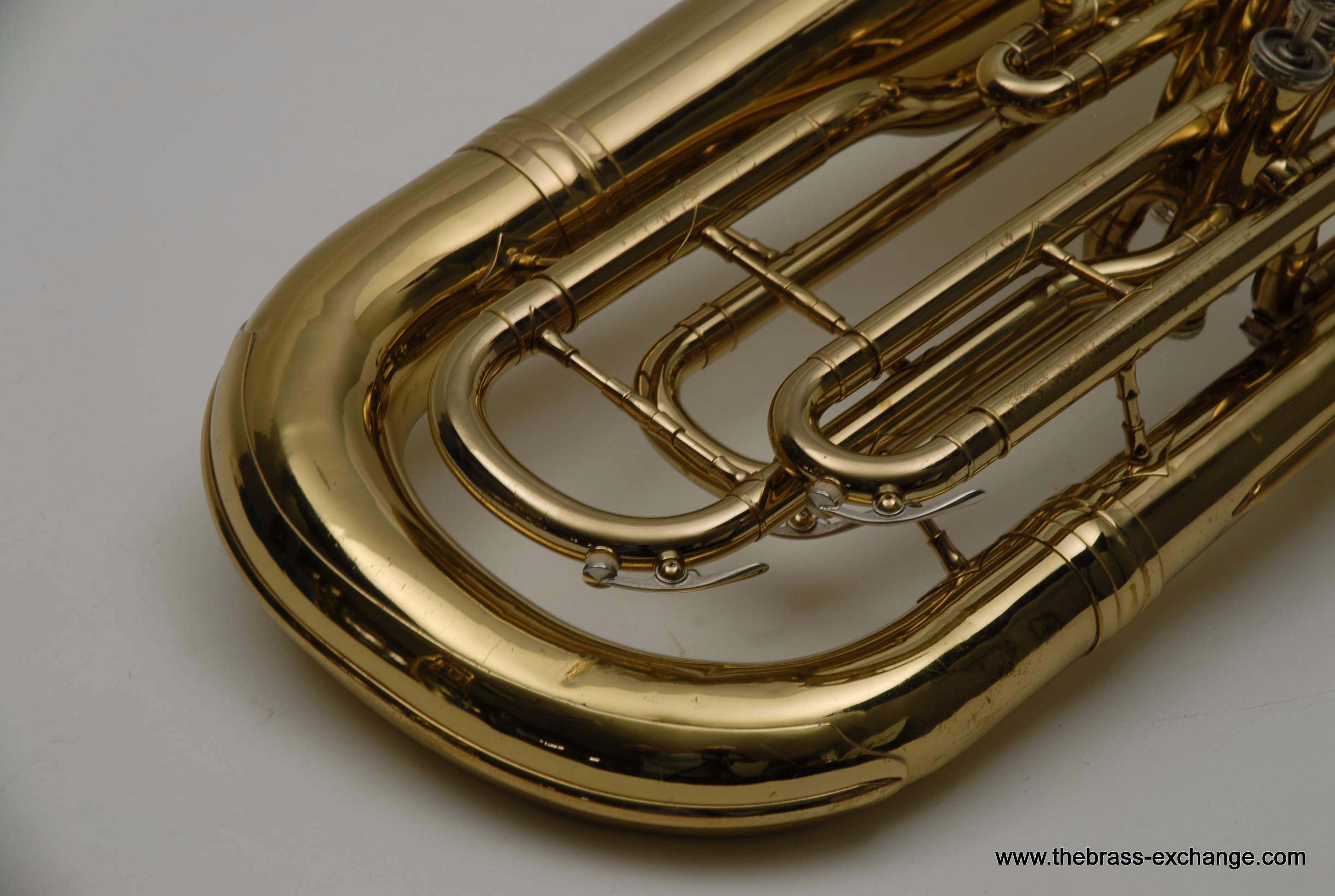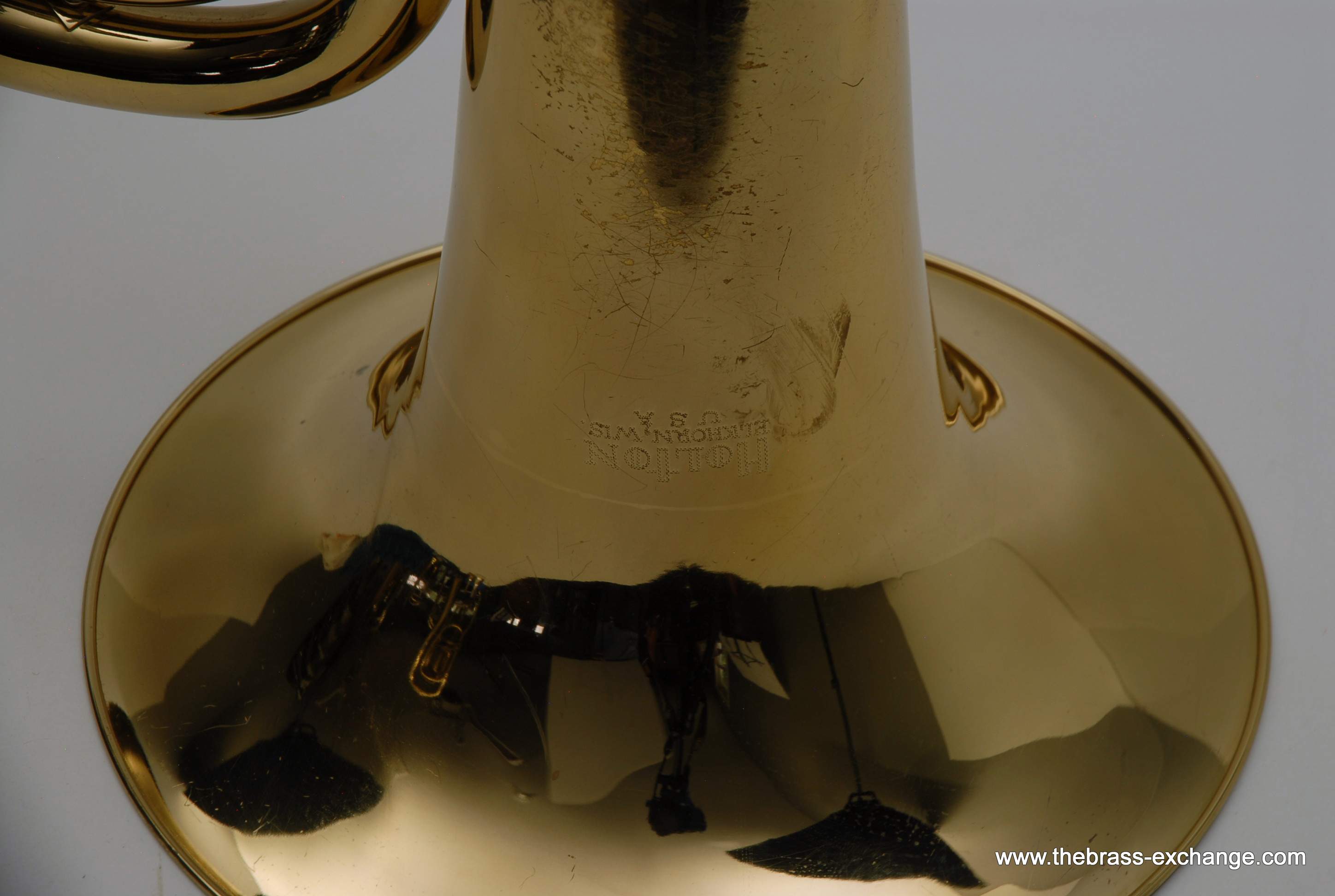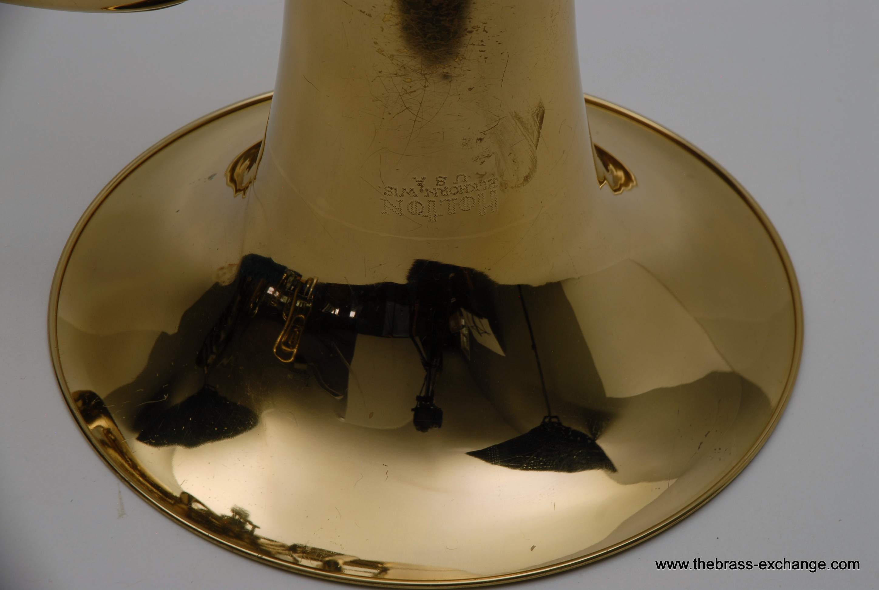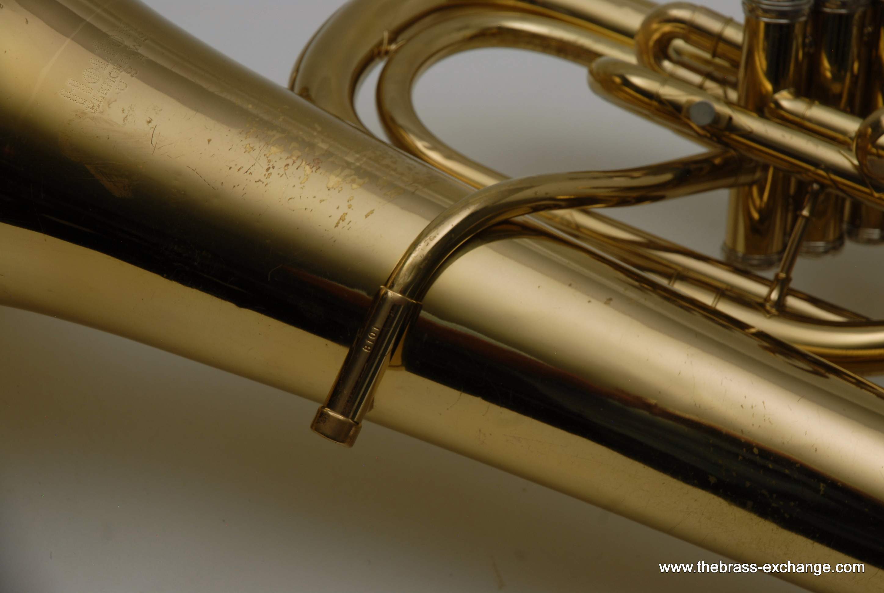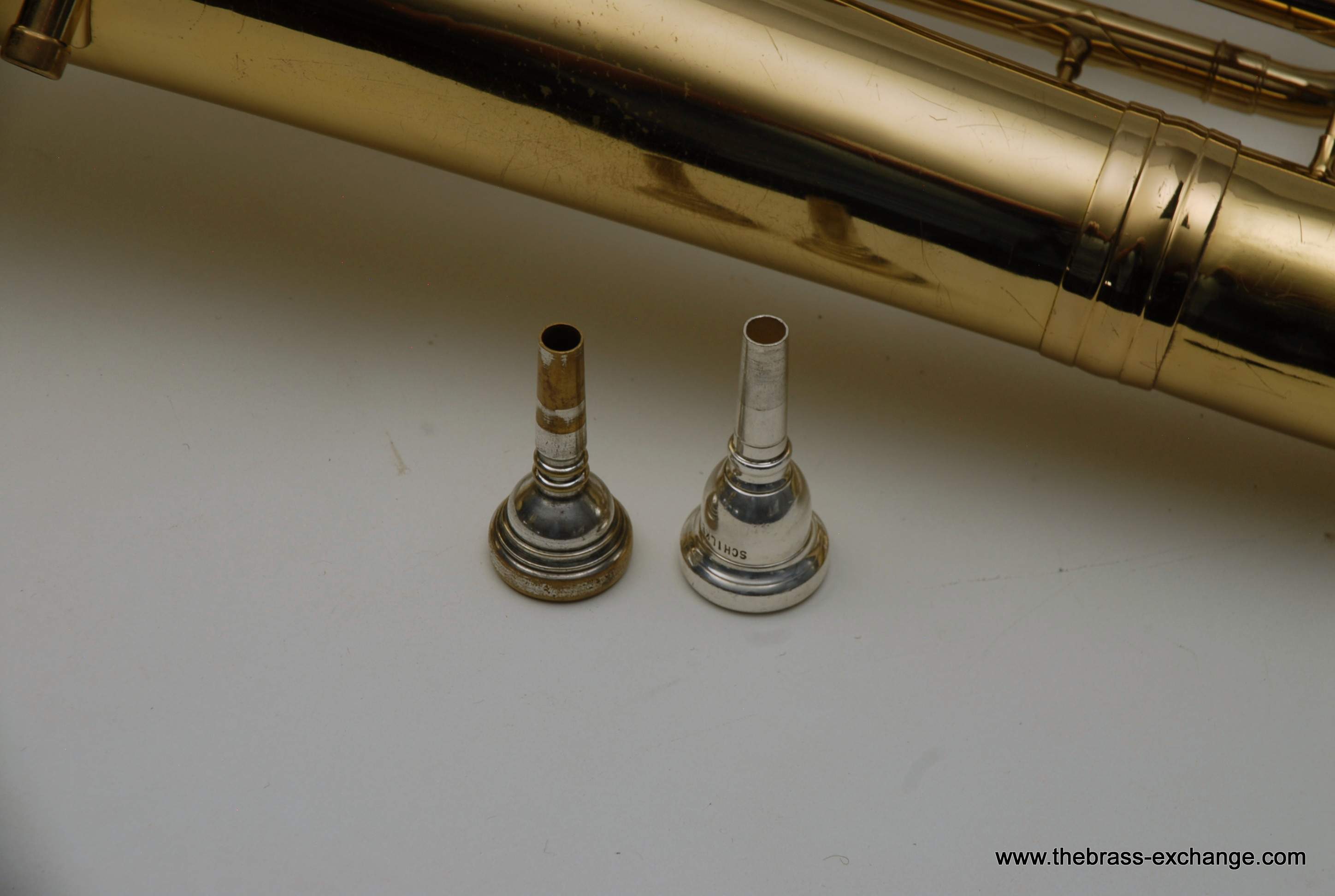 Holton 4 Valve Euphonium, 1960's make.  Front facing piston valves.  Has had full shop service here including pads, felts, chemical bath.  Takes Euro Shank mouthpiece, 2 mouthpieces included.  Original case.  Is not the top professional model available today, but it's not 8K either.  It definitely plays nice and is without any major issues.  Has several minor bow dings, but not too bad, it still plays exactly the way it was designed to play.  Has a rich sound.  Would be a perfect starter horn for any player looking to learn how to play valves.  Original case included.