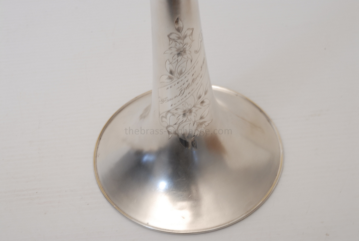 A: Very rare. Many surviving examples show significant wear or repair. Finding one with original parts, plating, and a well-preserved slide makes this horn a notable historical piece.