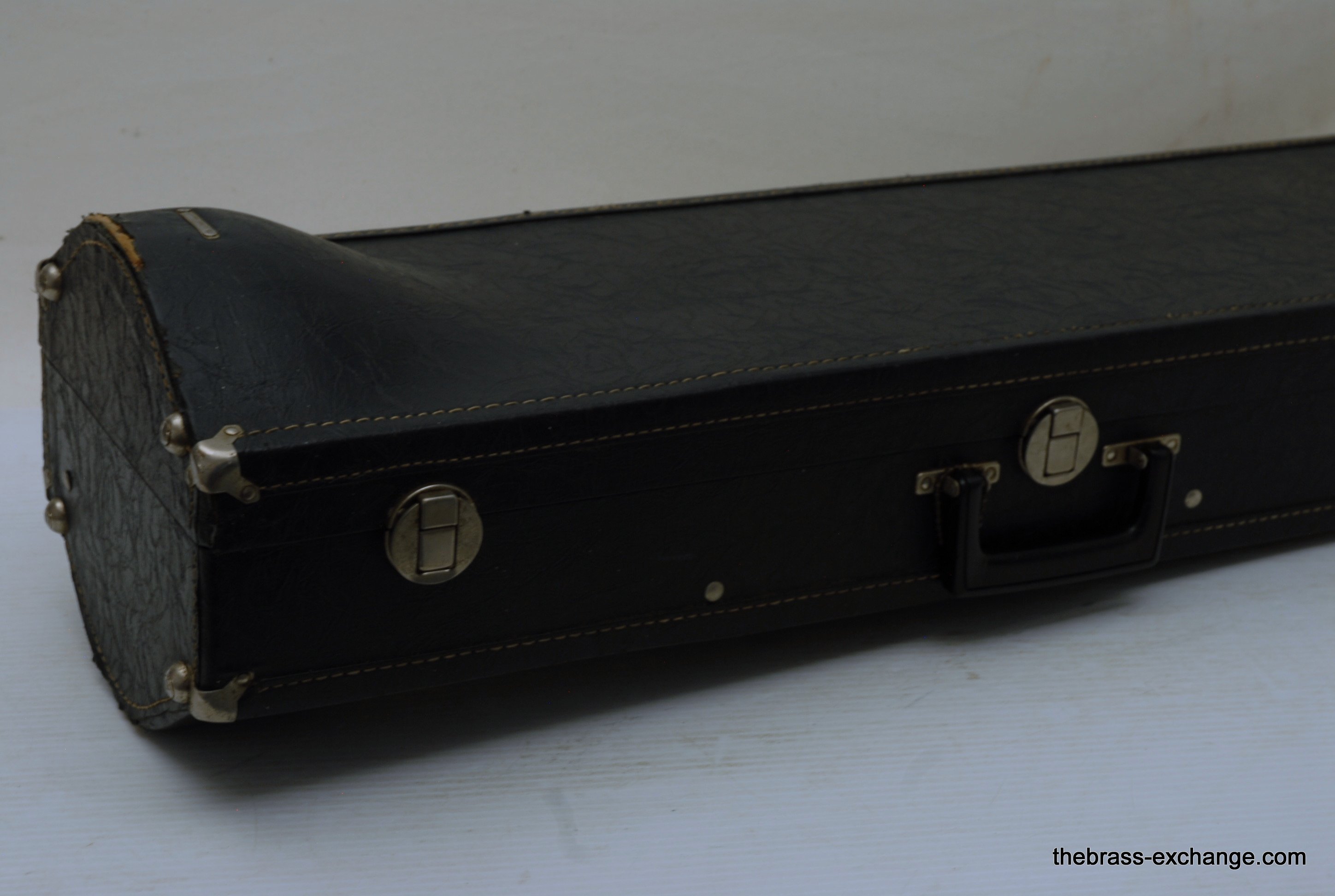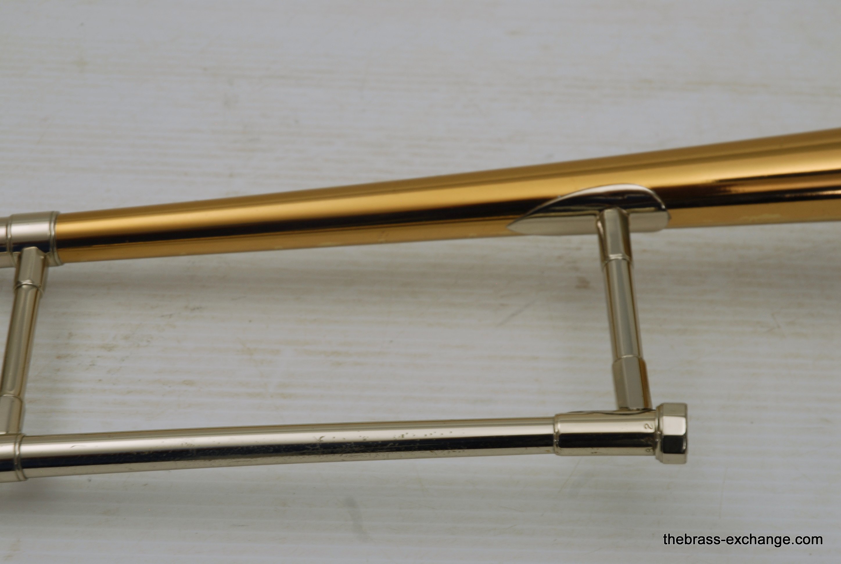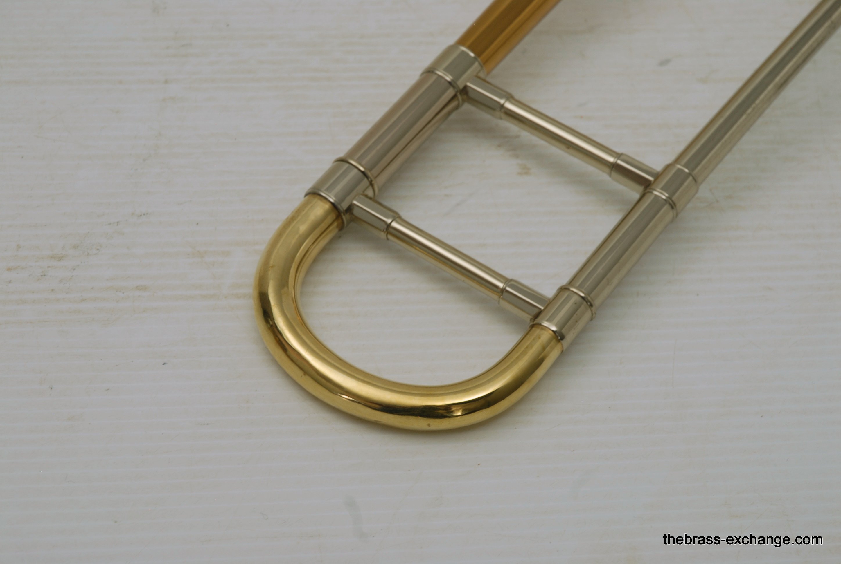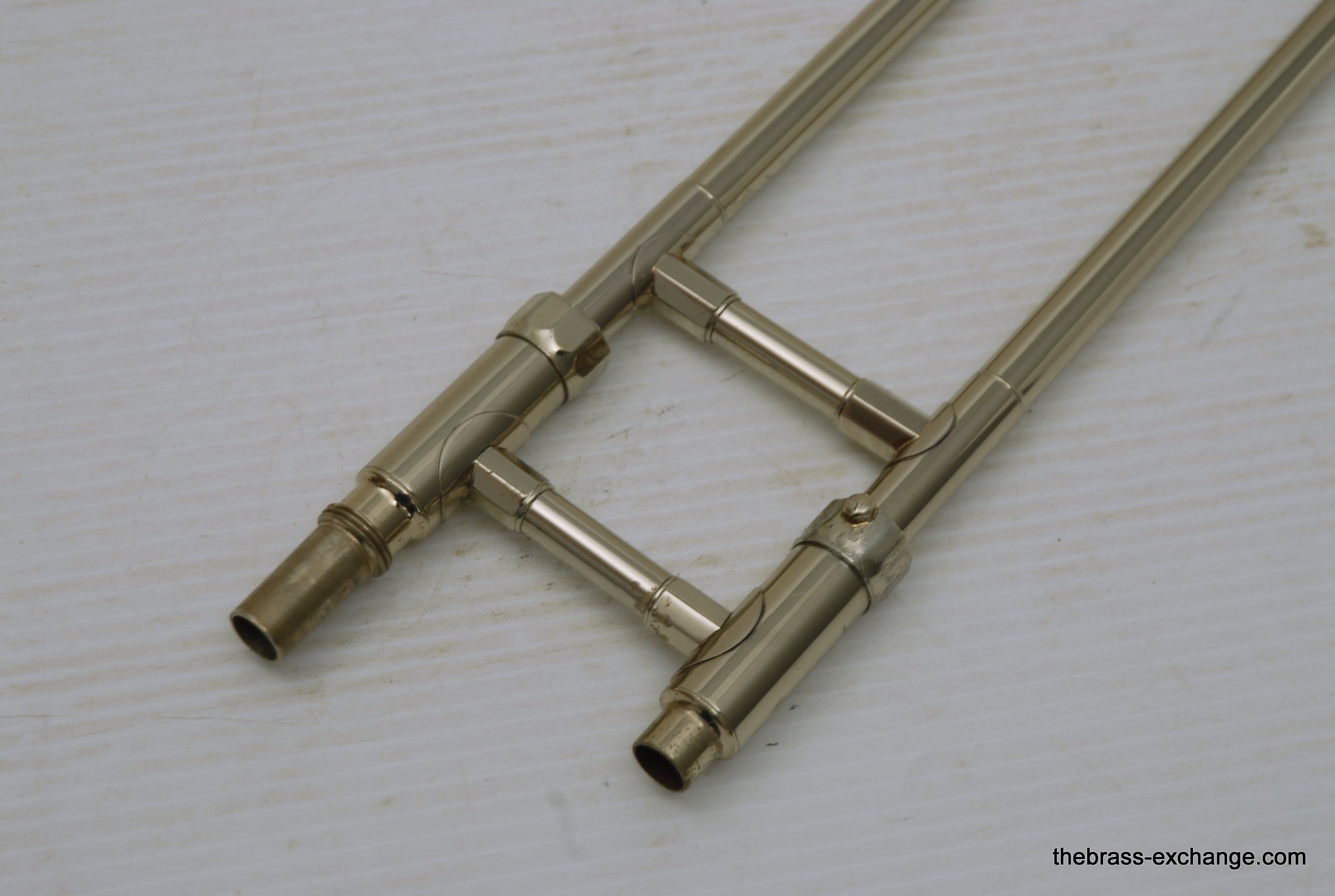 Holton Stratodyne Model 67 Vintage 1955.  Holton was making trombones going back to 1900.  This one was made 55 years into the companies existence. Has a 7.5" gold brass bell, hand engraved, and lightweight nickel silver handslide with .485.  Has had full shop service with chemical bath. Has also had a professional handslide set-up, tube straightening, de-stressed, outer tube inner surface polishing, is as good as it gets now.  No dents or dings, inner and outer slide tubes are in excellent shape.  Has very good slide alignment and plays fantastic.  Previous dent work on bell flare, no issues. All original lacquer, in very good shape.  There has always been something special about the combination of gold brass bell paired with a nickel silver handslide.  It produces a very warm yet vibrant sound, with lot's of depth.  The horn plays multi-dimensional and will do what you ask it to.  Great sound for lead/jazz/solo.  Many famous jazz guys loved these Holton's, including Buddy Morrow.  Not many of them become available becasue usually the guys that own them are real players and they know they have something special.  This one is available now.  Comes with orignal case.  In-stock for immediate delivery.