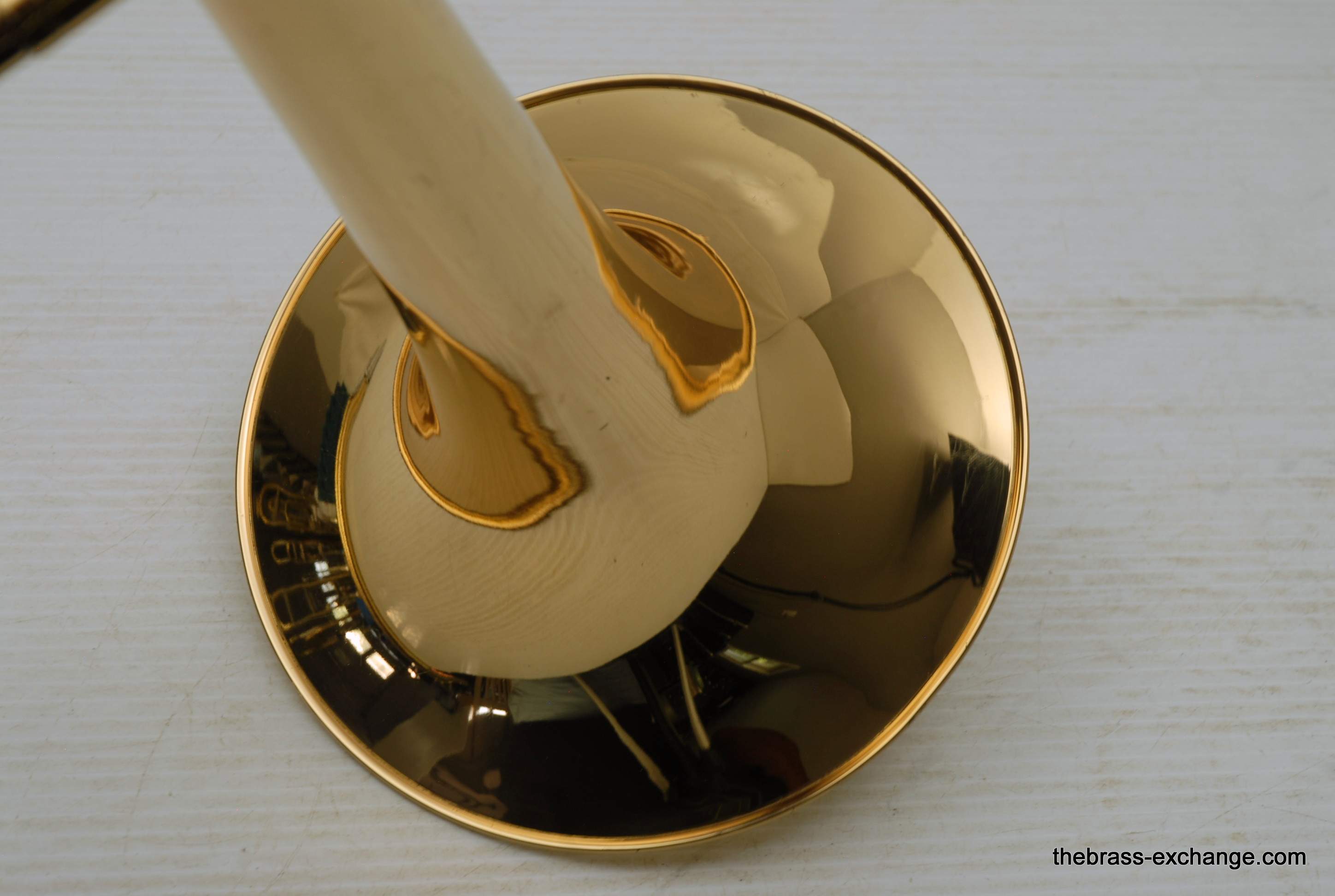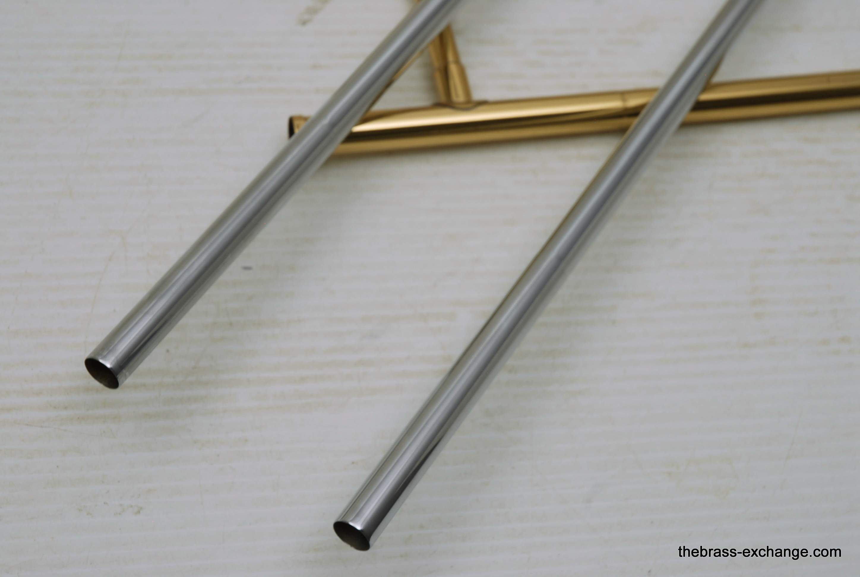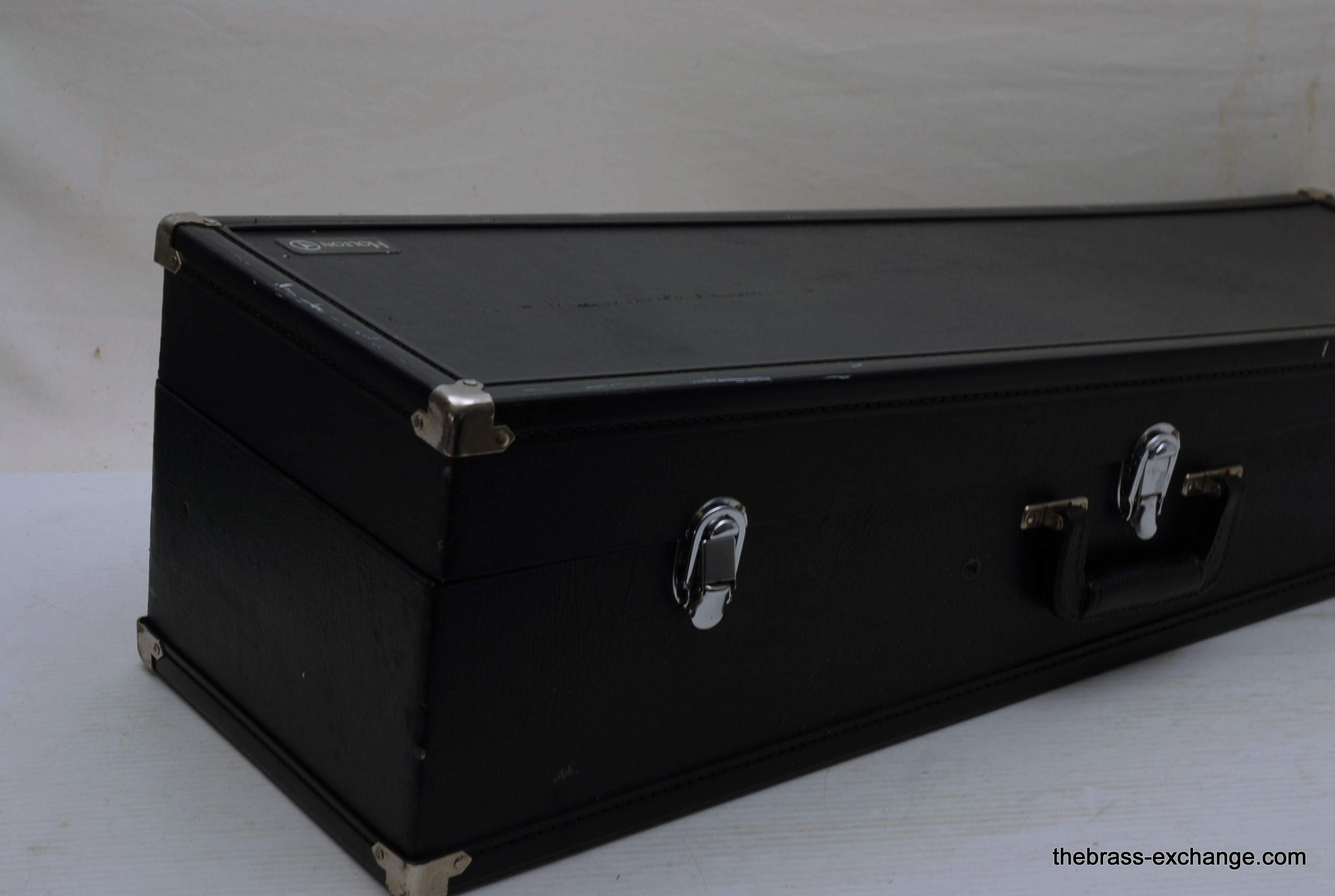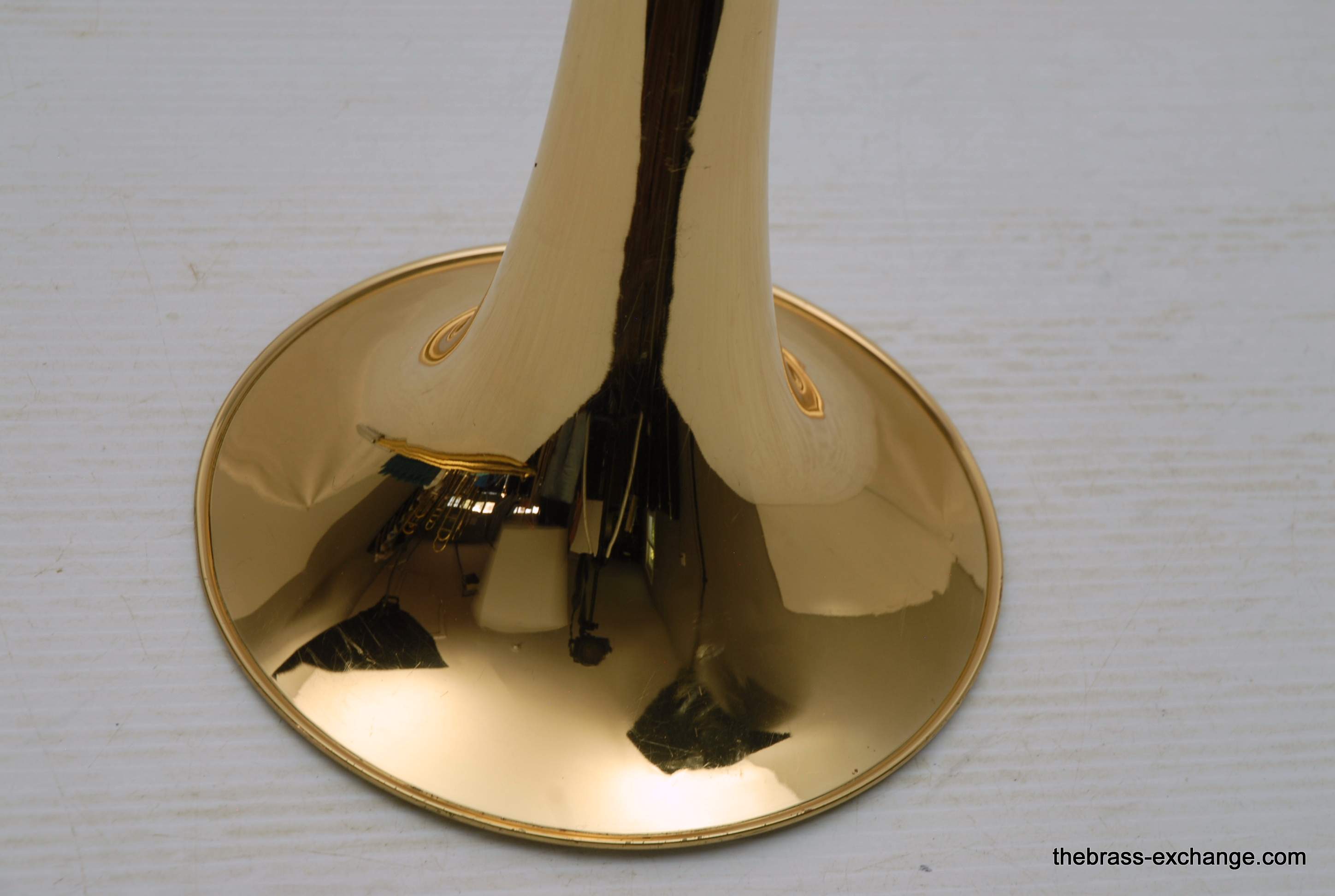 Holton TR-602F, Medium bore intermediate level used trombone.  Good condition, above average appearance, plays proper.  Has 8" Yellow Brass Bell, Traditional Wrap F rotor, .525 bore medium size slide for standard shank trombone mouthpiece.  A 6 1/2 size MP is right in the sweet spot of this horn, which is perfect for an advancing student looking to depart from an entry level instrument.  Has original wood shell case in very good conditon. No service needs to improve playability.  Slide checks out just fine with proper lubricant.  Would be a great choice for a young player looiing for an instrument that actually plays.  Mouthpiece not included.  In stock for immediate delivery.