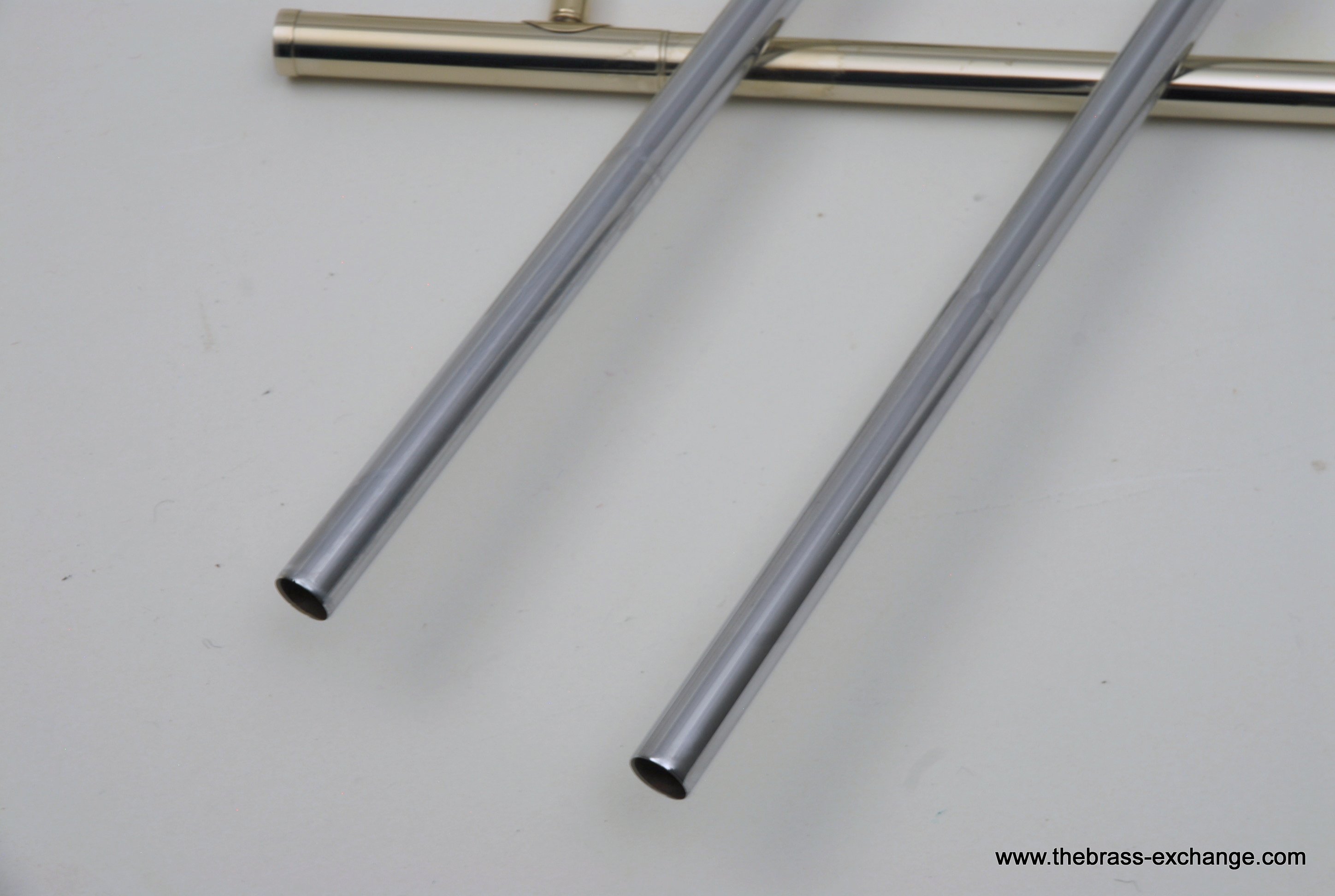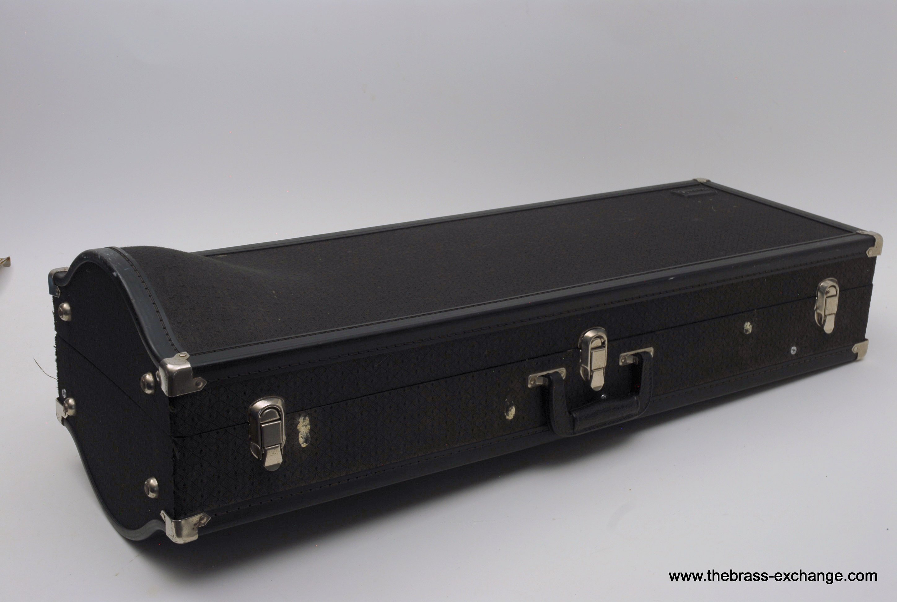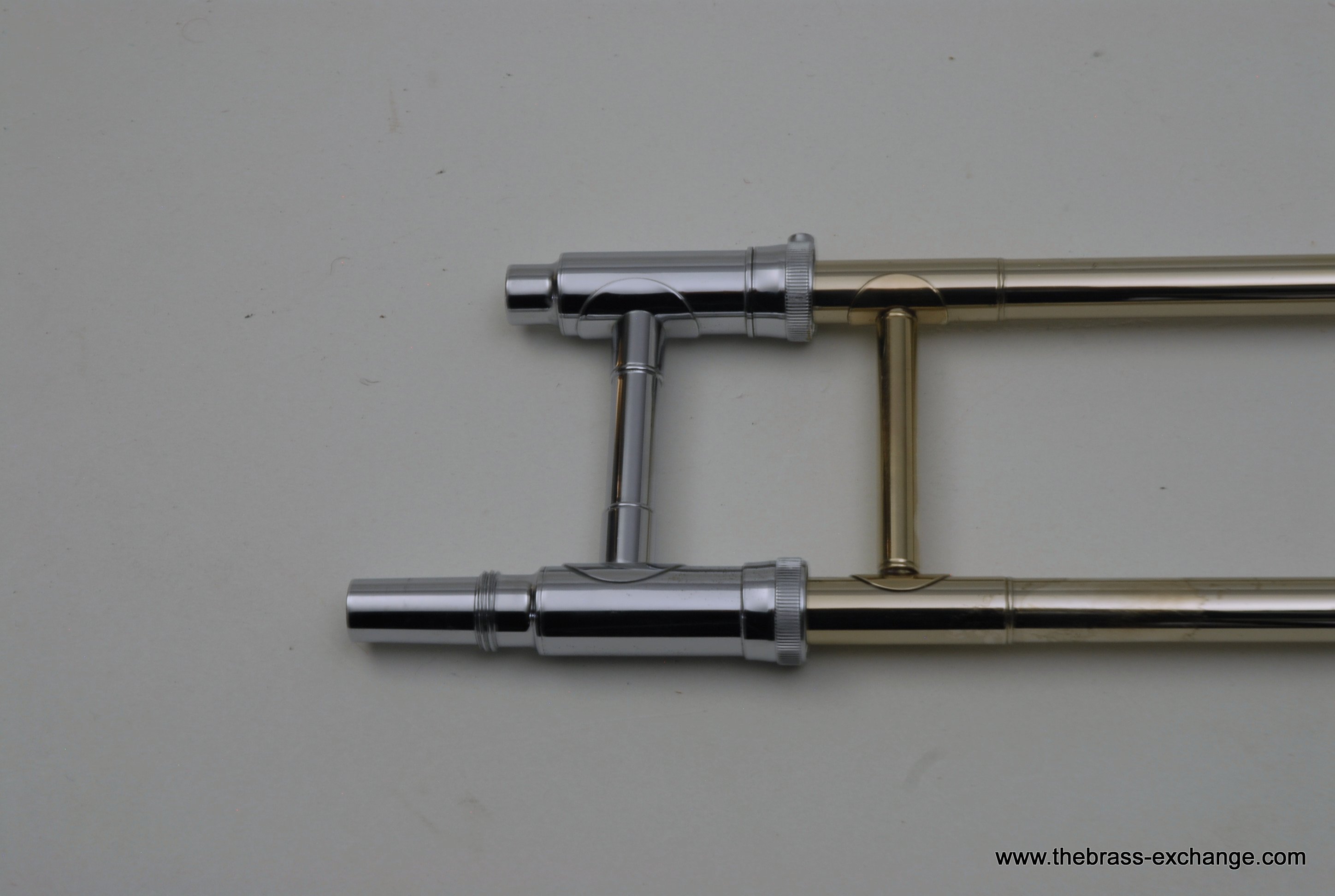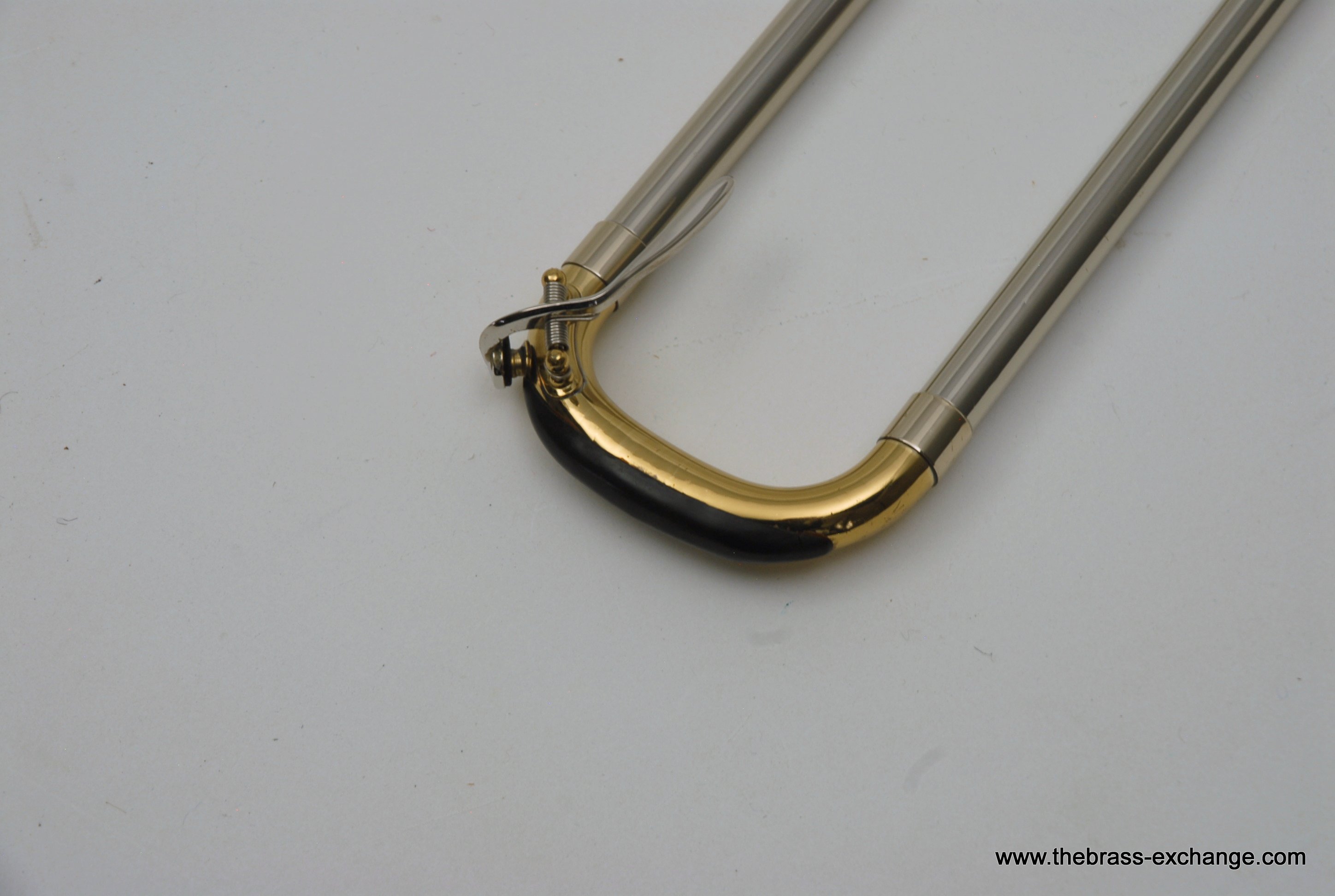 Holton TR100 Jazz Trombone SN 622166.  Has 8" gold brass bell with .500 bore light weight nickel silver slide.  Is in very good condition.  No cleaning or service needed.  Has the same specs as the classic Conn 6H Model, except with Gold Brass Bell.  Holton was making brass instruments going all the way back to the early 1900's.  Quality build was always a priority for the company.  We think this is an excellent example of a great Holton.  Gold brass plays with more warmth than standard yellow.  Is an excellent choice for Jazz/Commercial style music.  No slide inner tube plating defects on this instrument.  The slide is fantastic and will not disappoint.  Includes original case.