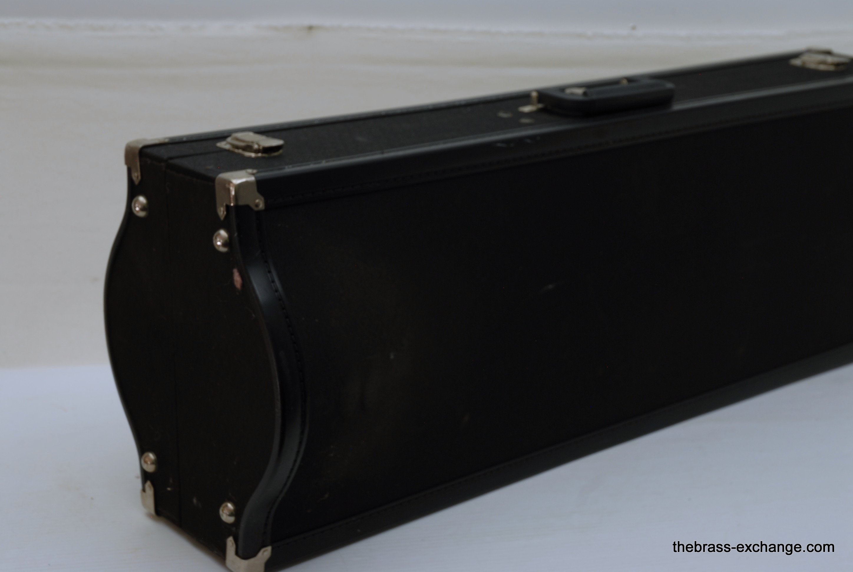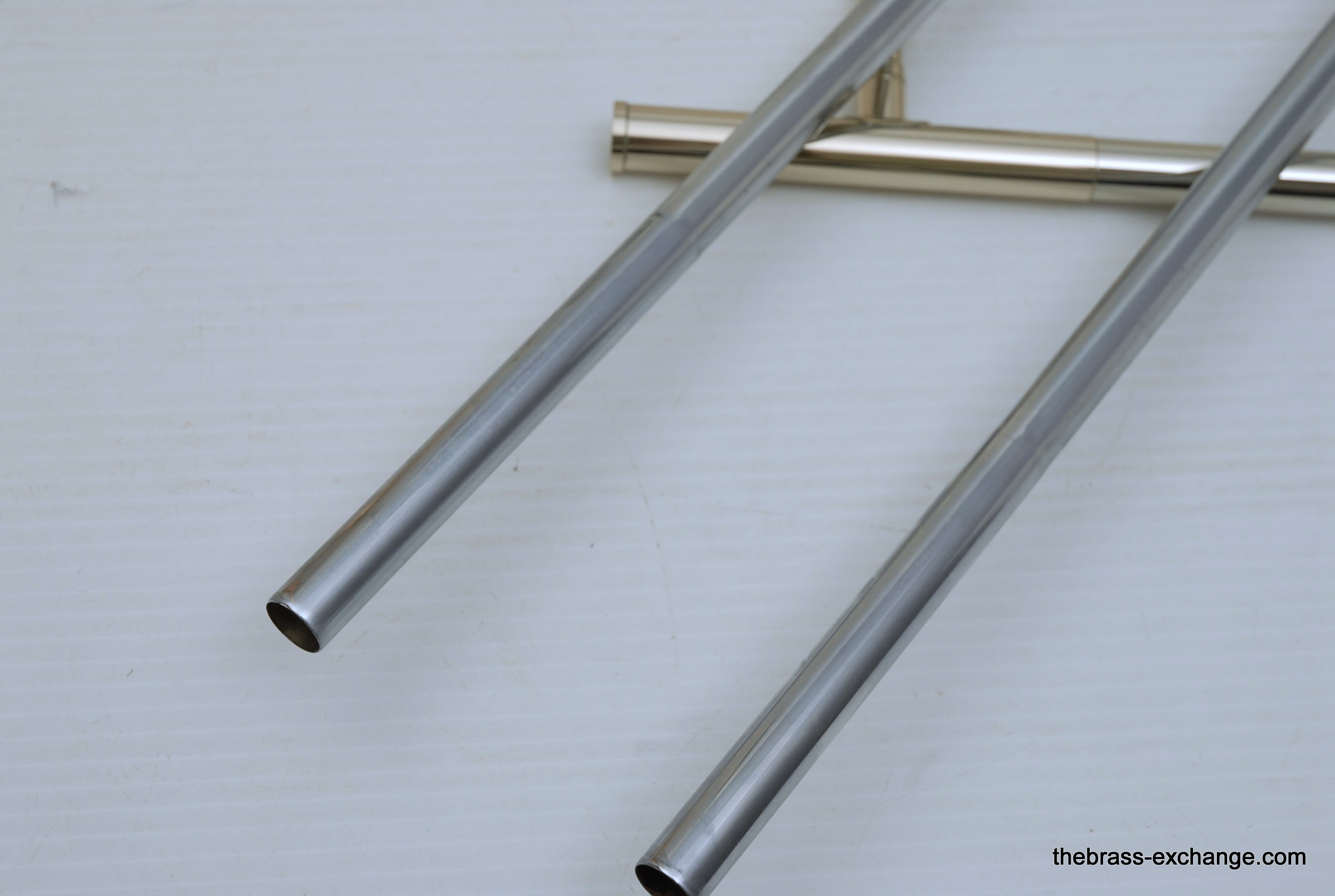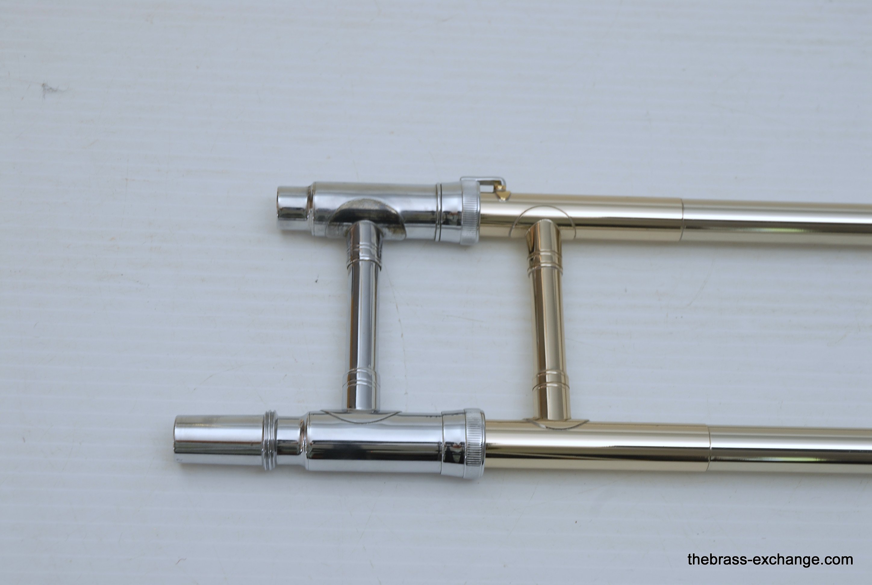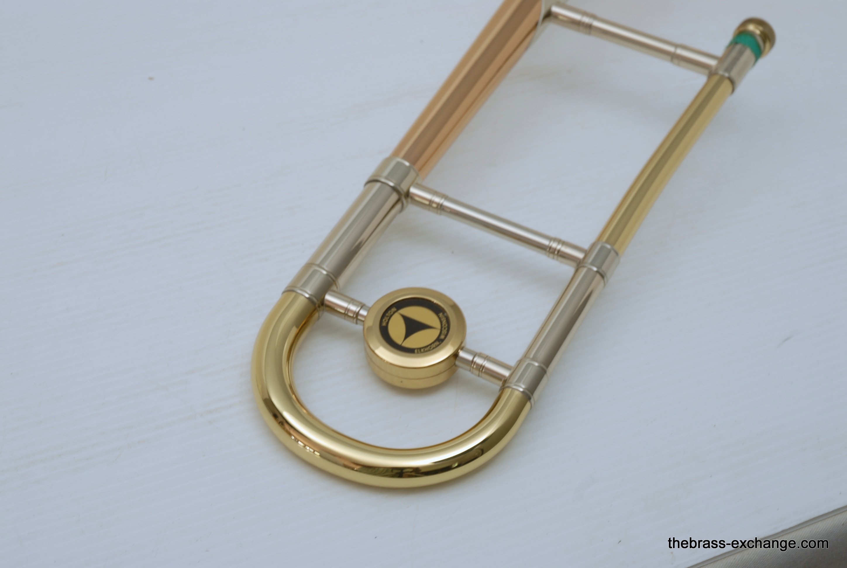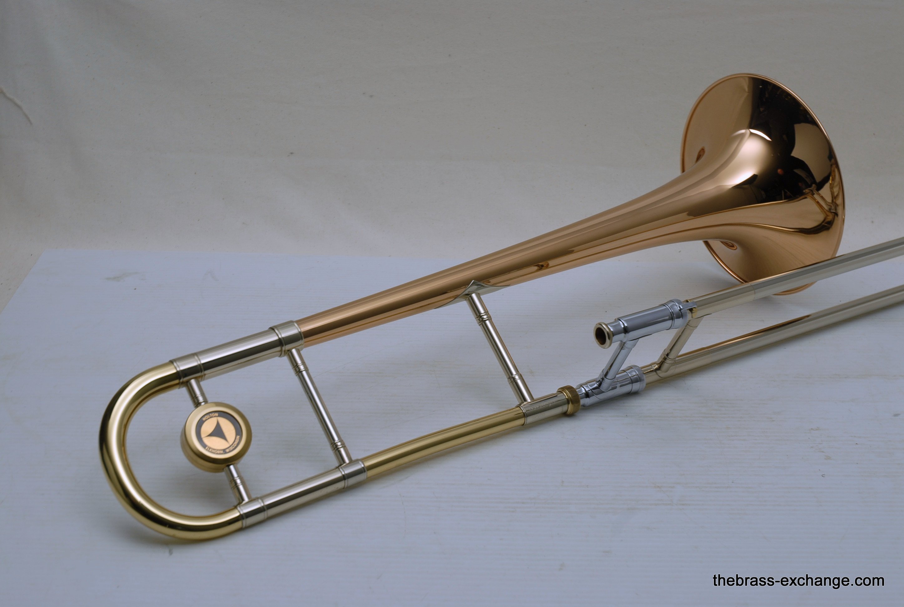 Holton TR107 Large Bore Straight Tenor.Β Has 8.5" Rose Brass Bell, Lighweight Nickel Silver Handslide with custom fit threadless removable press fit leadpipe, handlside in perfect playing condition.Β Β Super Mint Closet Find with paperwork and perfect condition case.Β These do not become availble very often, especially ones in mint condition, all original lacquer.Β Picky slide guys will enjoy. Would make an excellent all around tenor for any player looking to play without a trigger. Is .547 bore large shank mouthpiece.Β Plays dark, yet lively with lots of color. In-stock for immediate delivery.