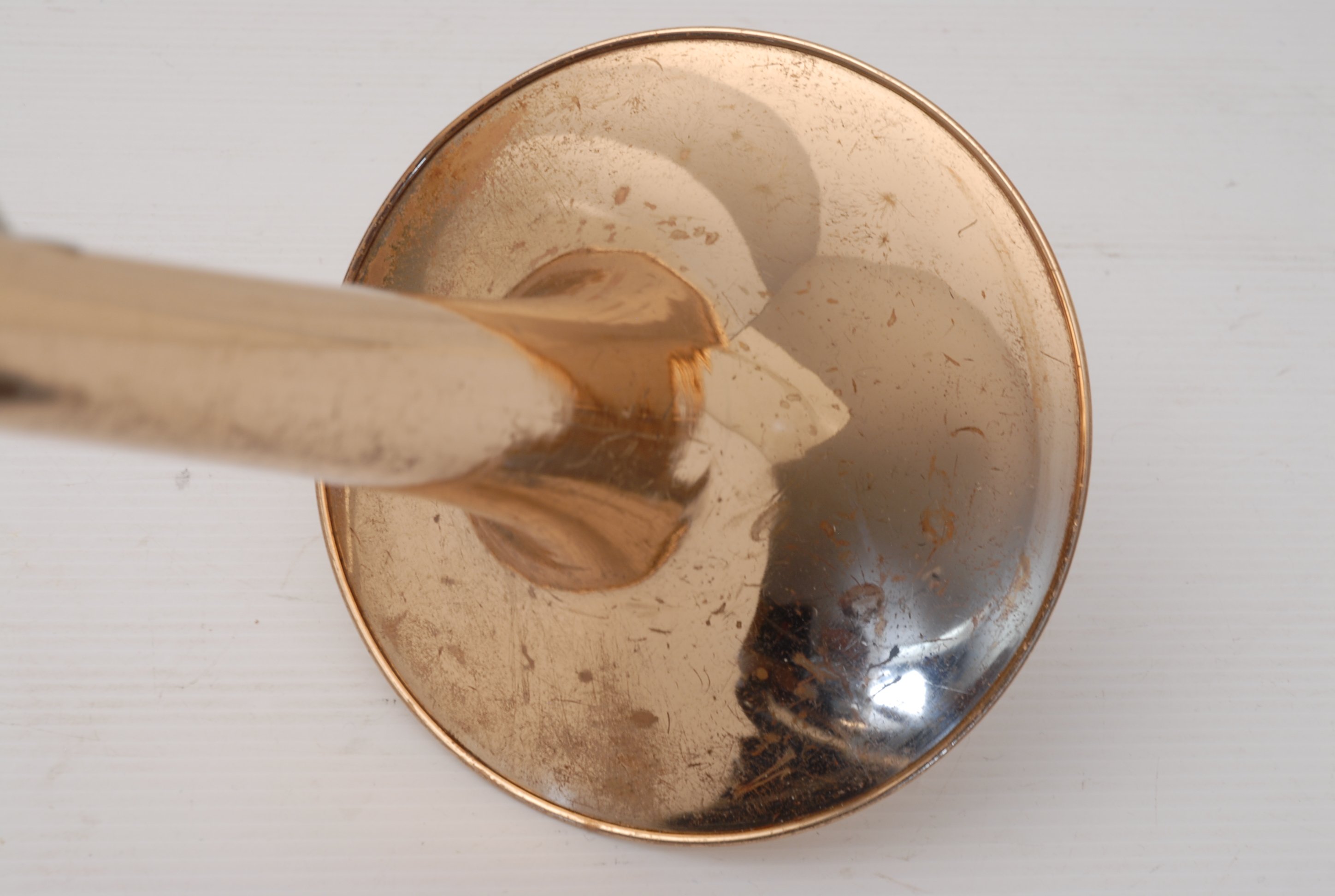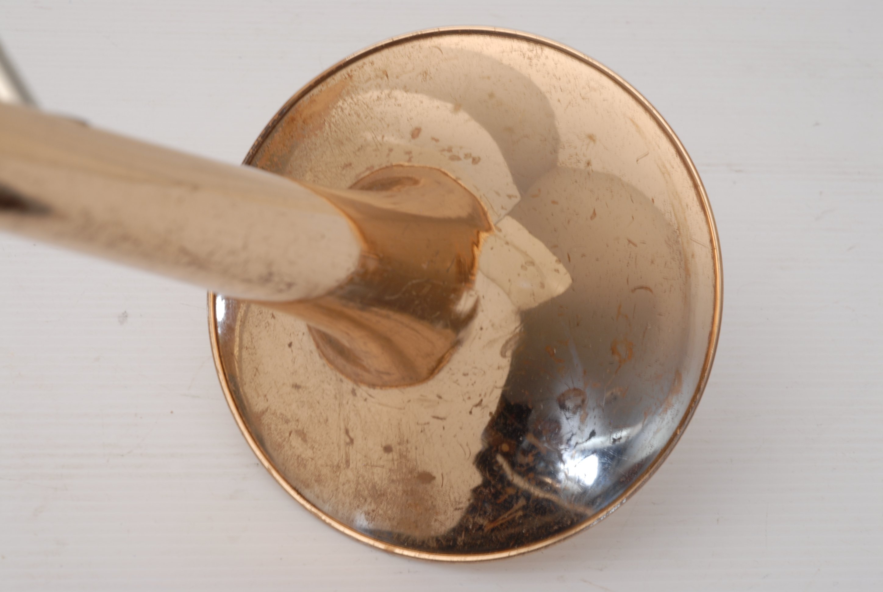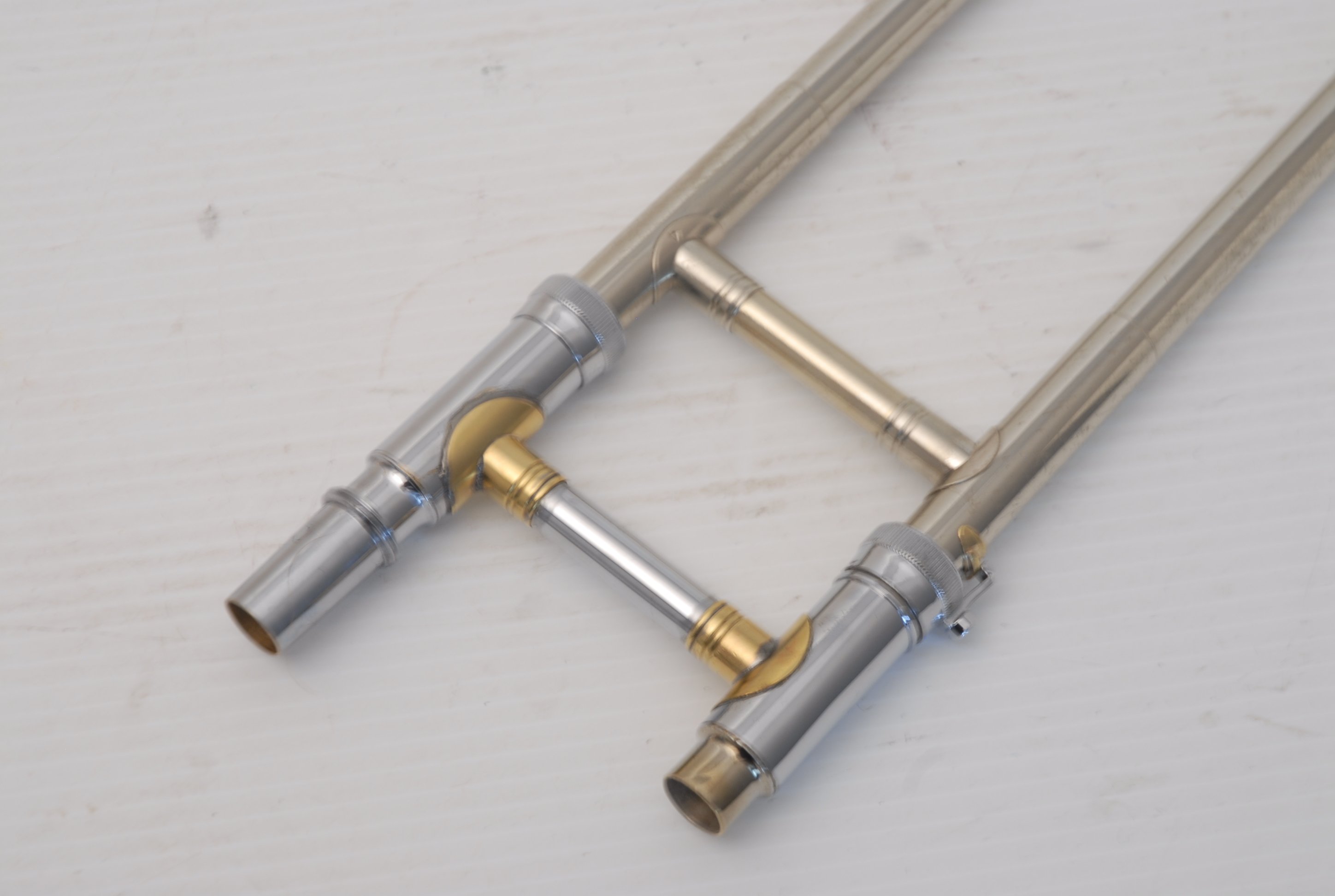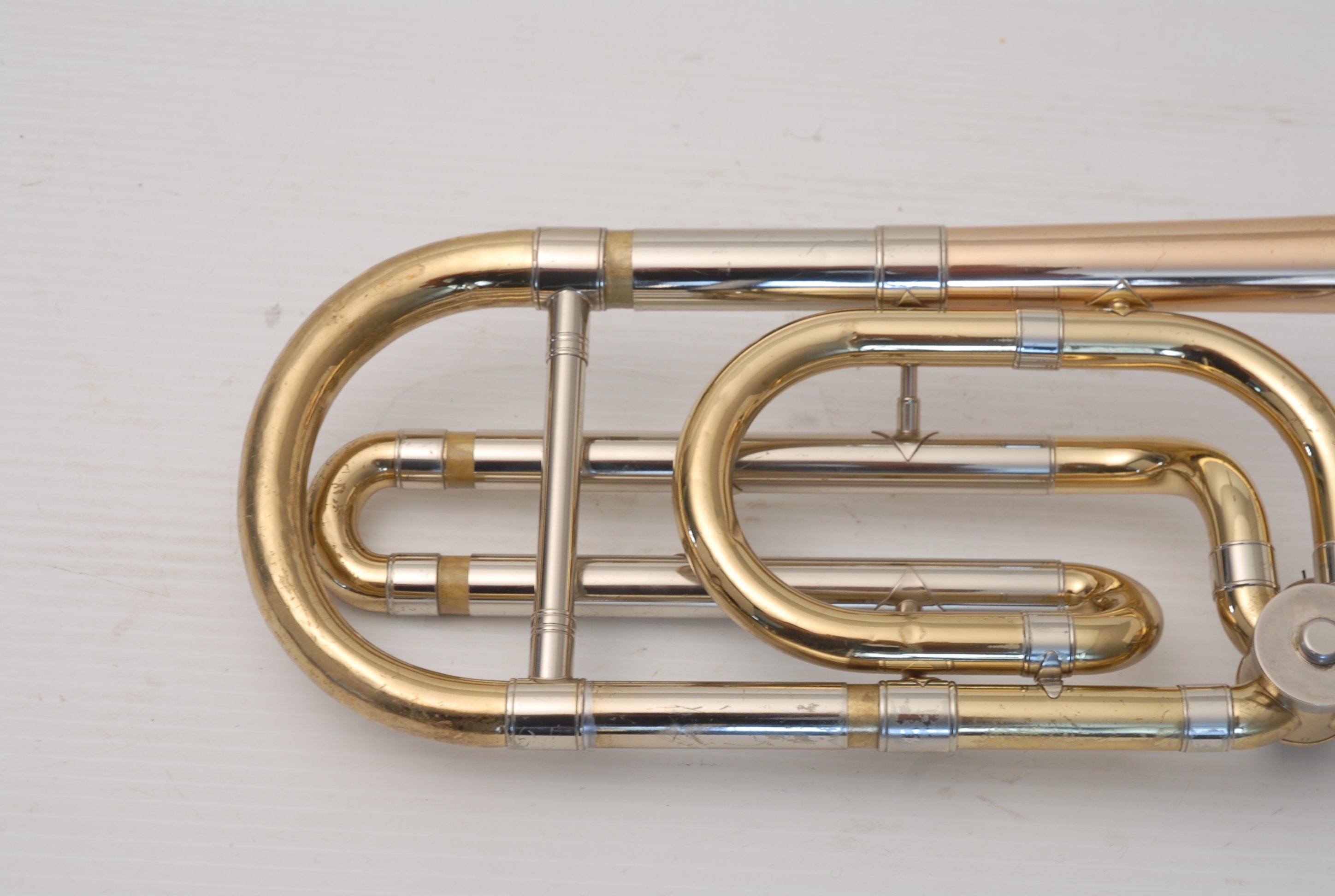 Holton TR150 Large Bore Tenor with F made in the mid 1970's. Has 8.75" gold brass bell, .547 nickel silver handslide. No dents or dings, previous repairs. Has had a chemical bath and been adjusted. Moderate lacquer wear over entire instrument. Handslide is OK despite some inner tube wear, of course reflected in the price. Would make an excellent first F attachement horn for and advancing young player. Comes with case and mouthpiece.