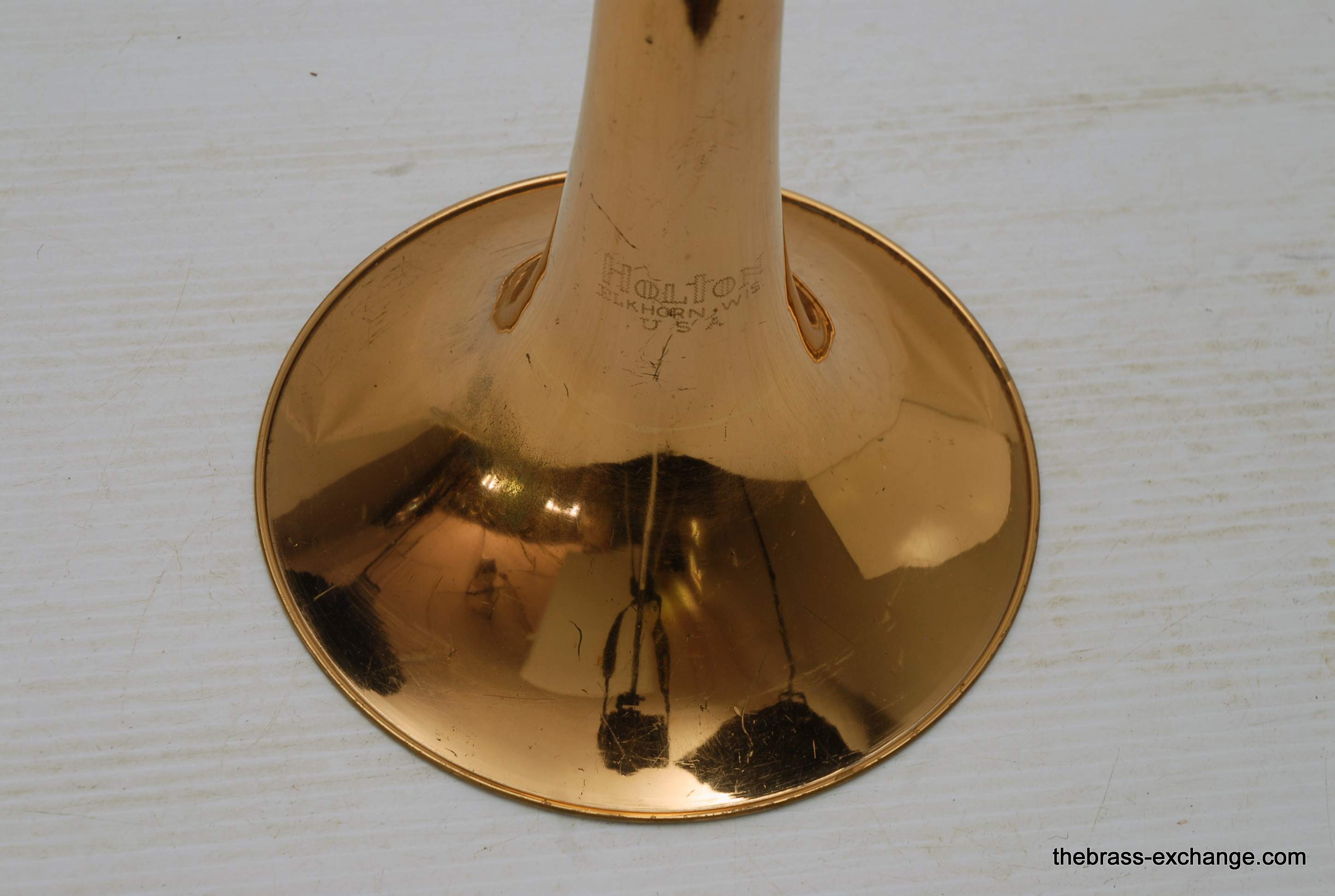 This example received full shop service, including a chemical bath, rotor service, and slide adjustment. Although it has undergone light dent work, the instrument remains straight, responsive, and acoustically true to its original build. Slide alignment and compression are excellent, and the inner tubes show only minimal wear.