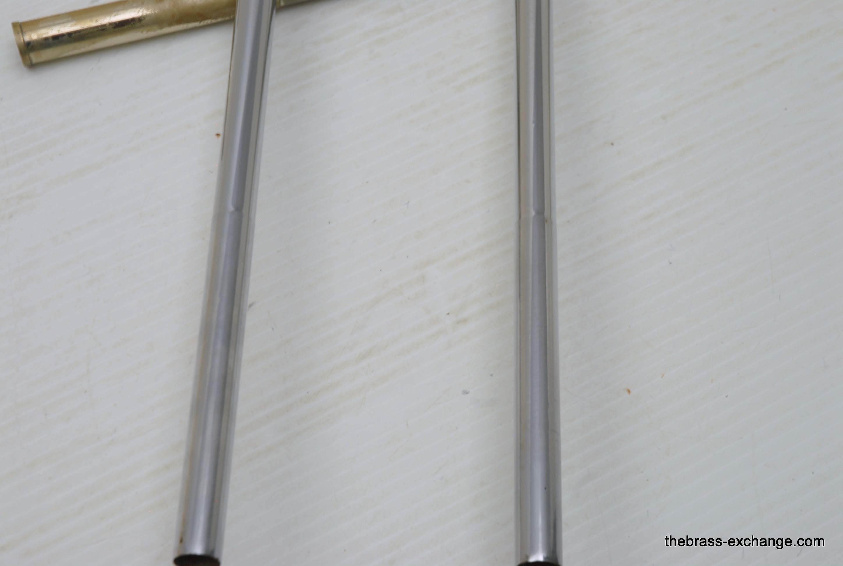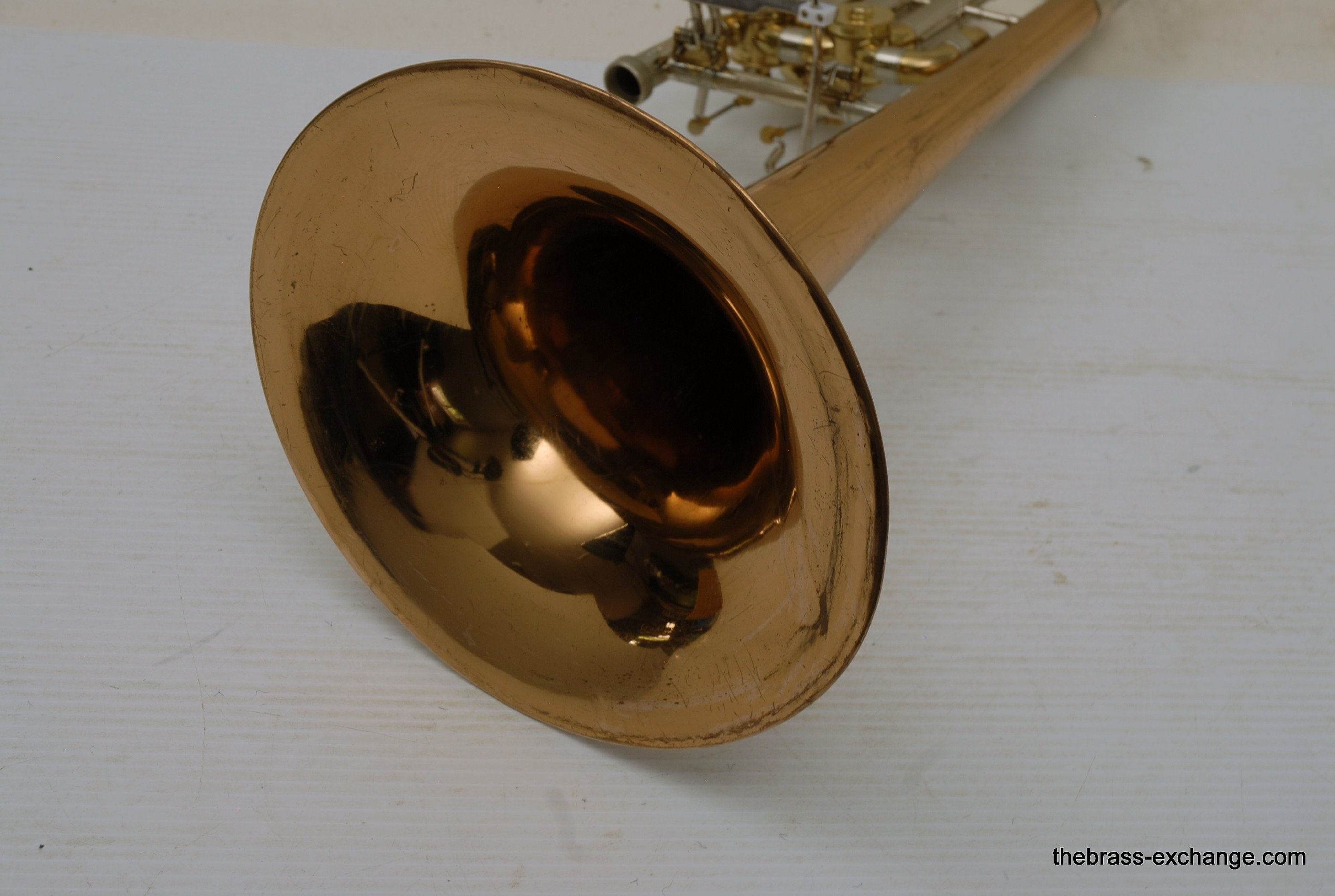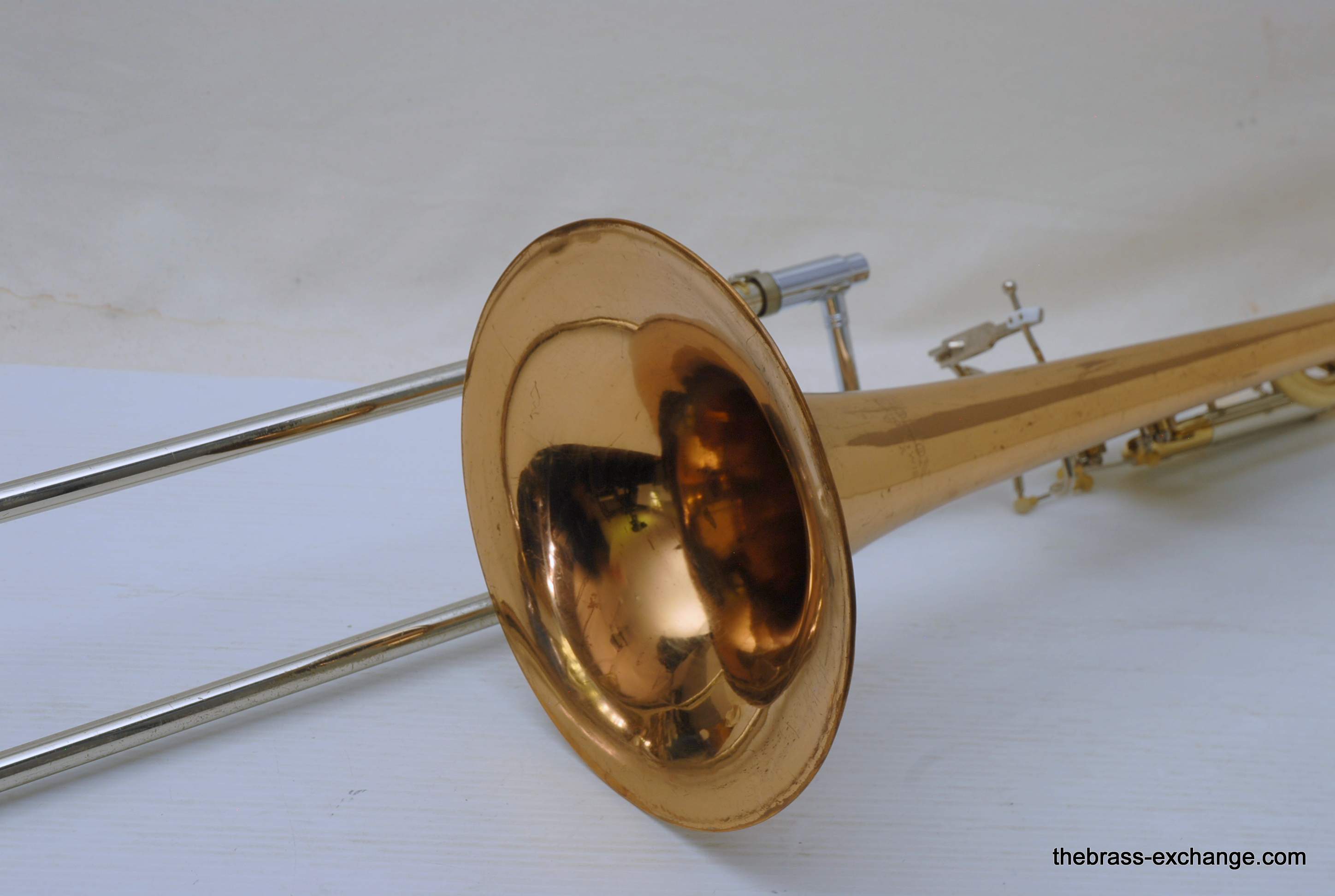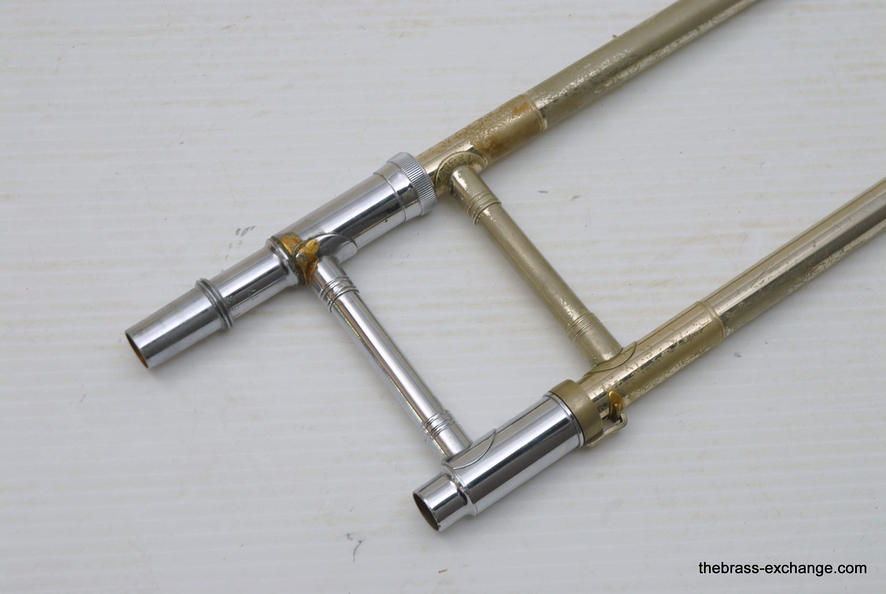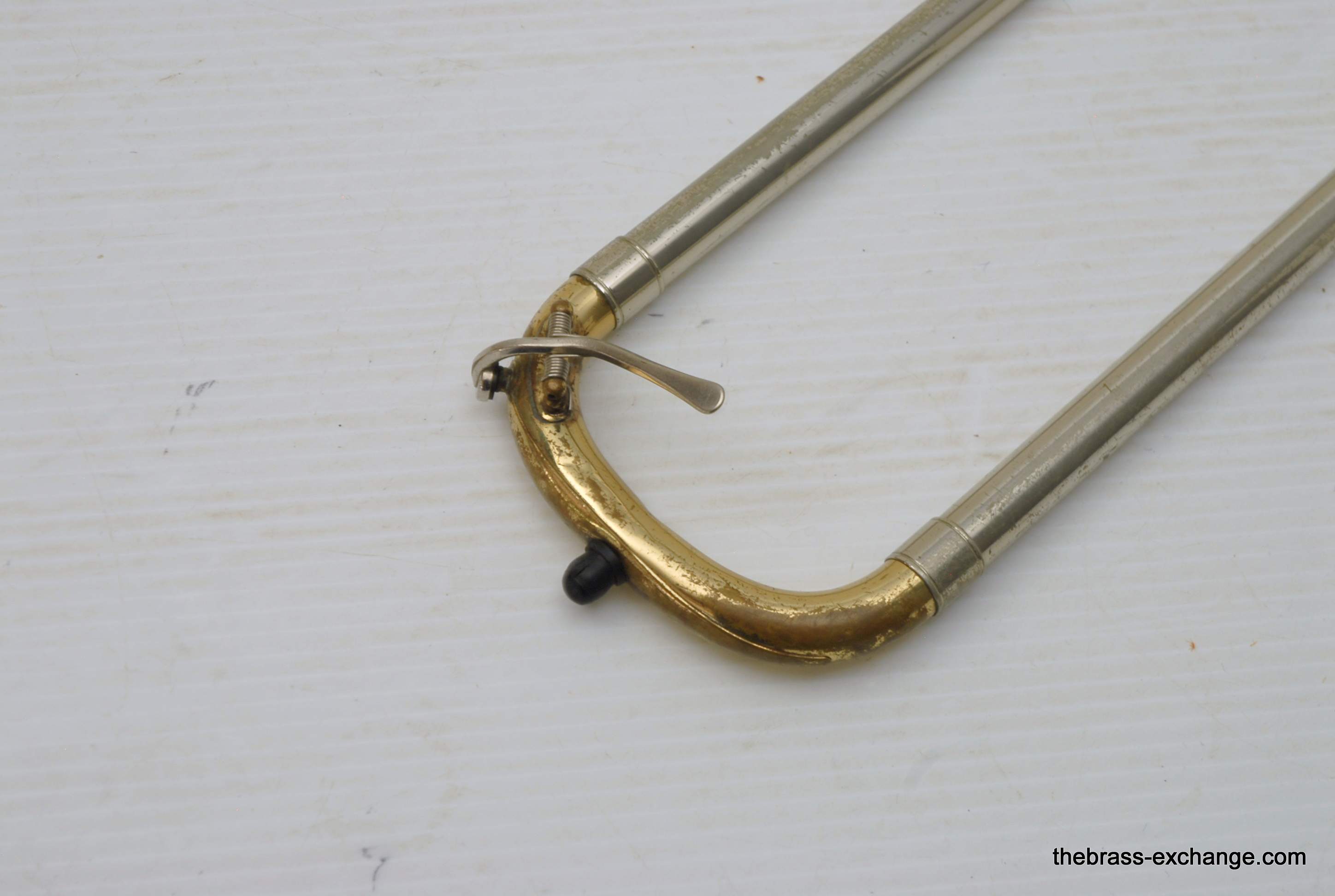 The bell section has received full shop service including dent removal, chemical cleaning, and rotor alignment. The instrument still retains its original lacquer and comes with a like-new Getzen bass trombone case.