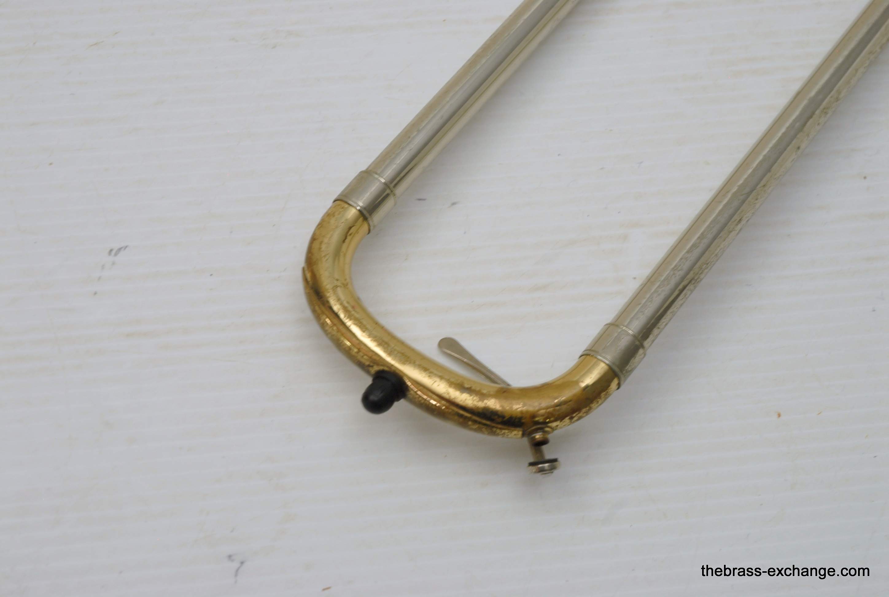 This Holton TR180 Bass Trombone dates to the early 1970s and represents one of the most intuitive dependent rotor designs of the era. It was famously favored by Professor Lewis Van Haney of Indiana University, a major figure in American trombone pedagogy. The TR180 features a 10" rose brass bell and a lightweight nickel silver handslide, offering a vibrant tone with fast slide response.