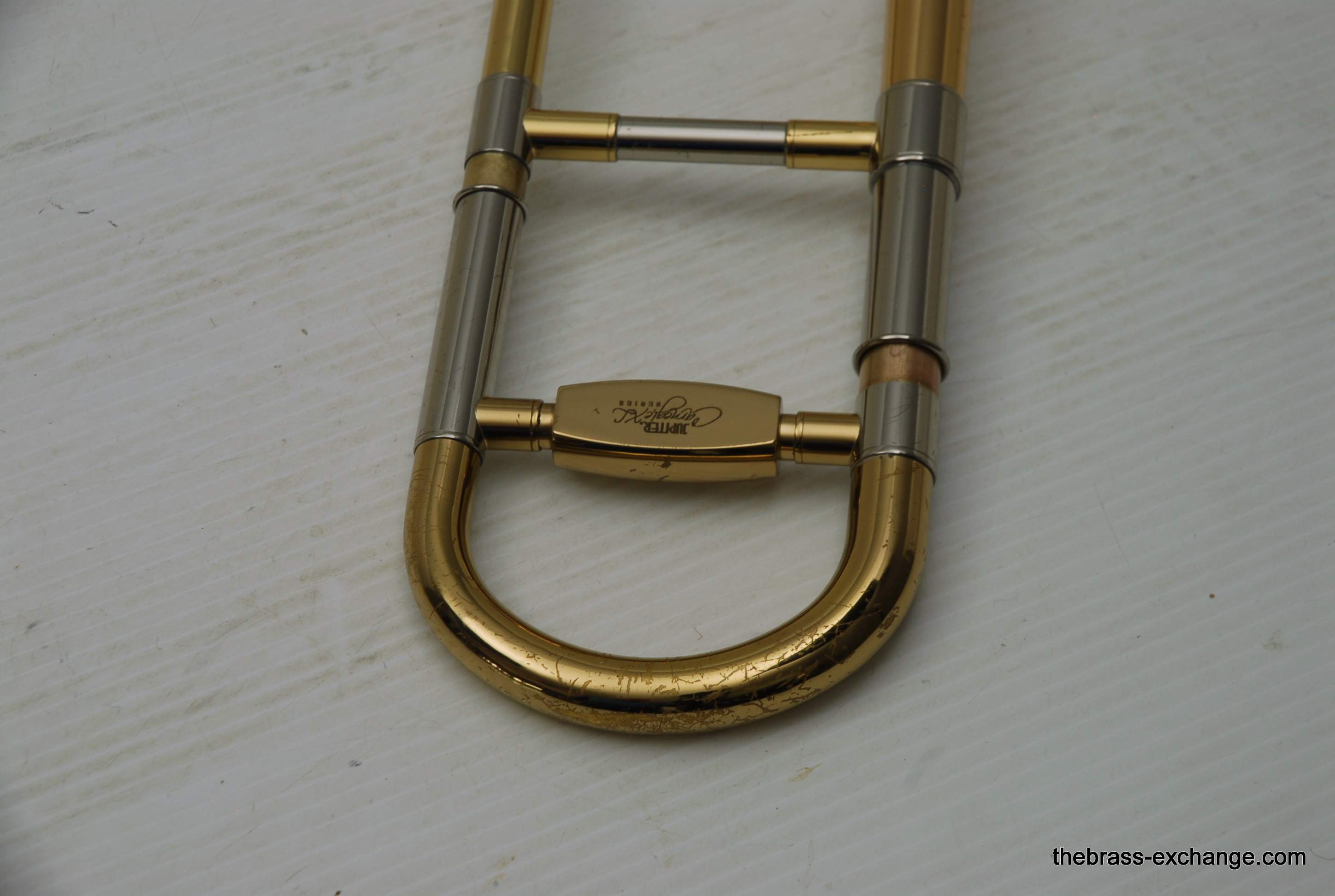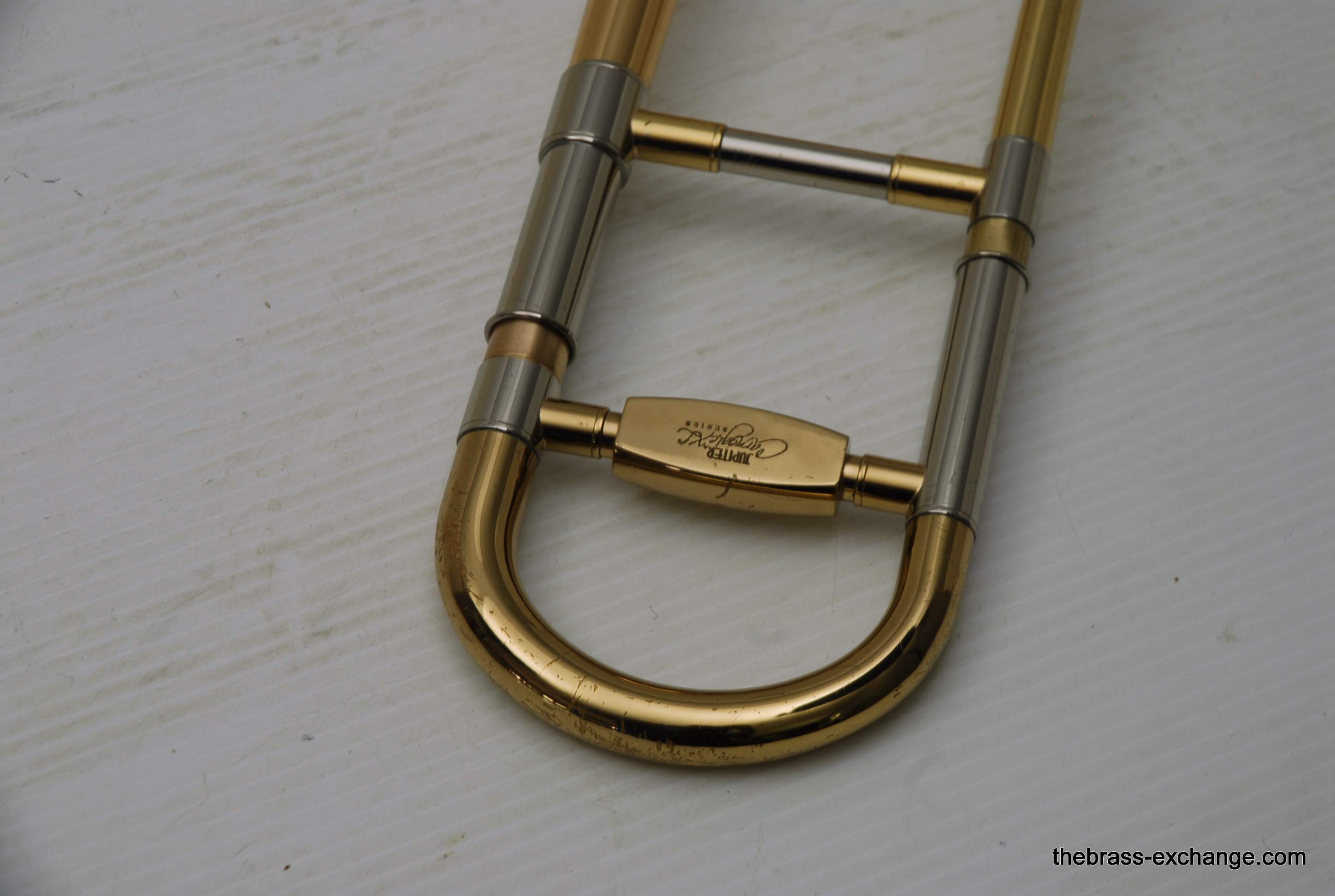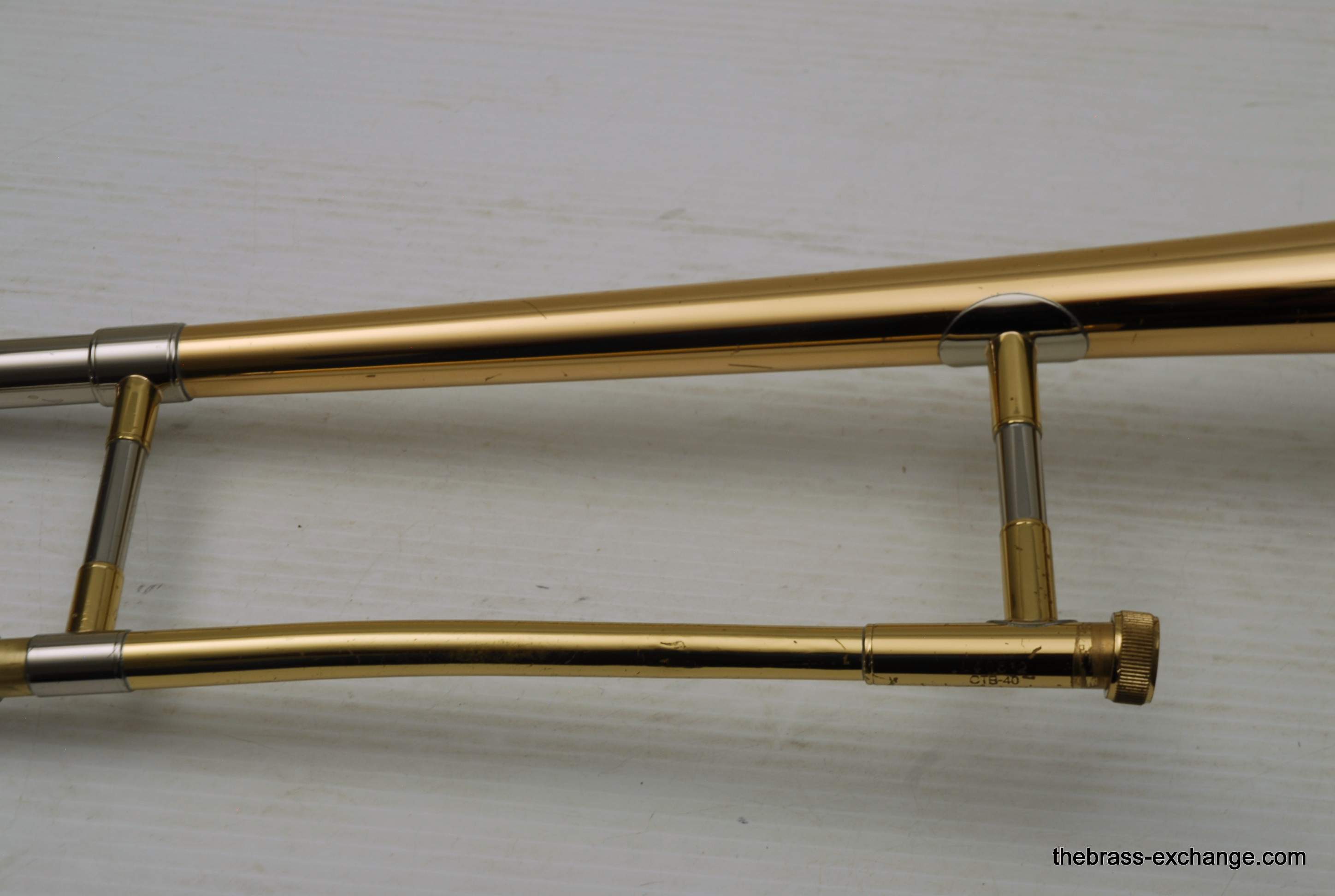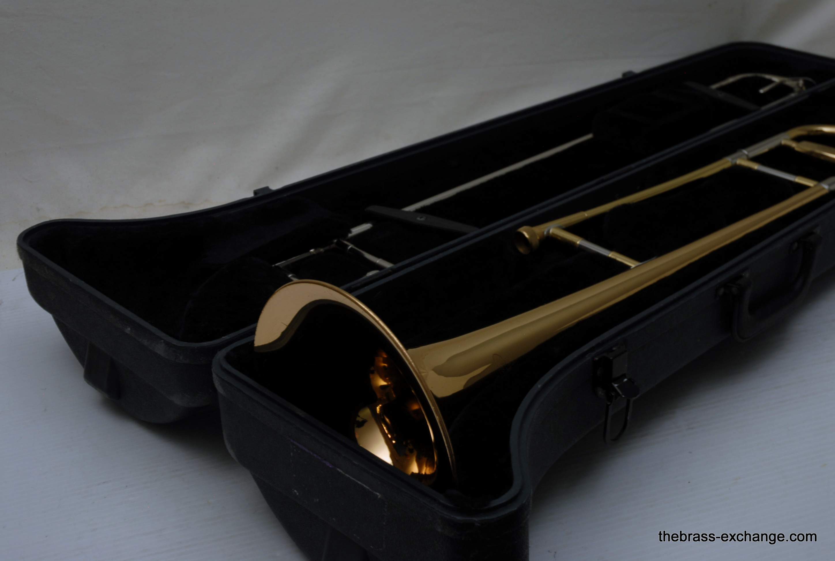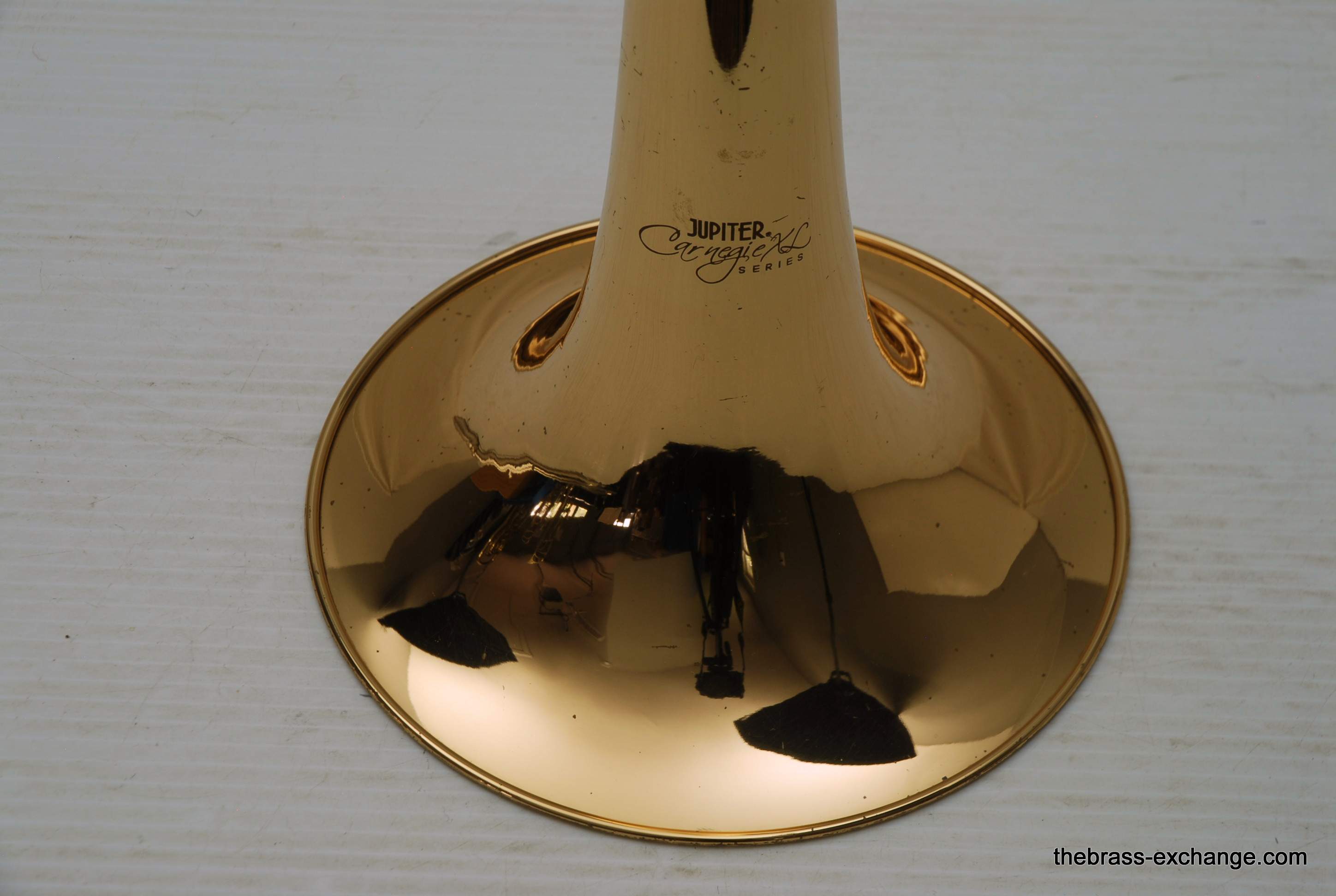 Jupiter Carnegie CTB-40 Trombone, Student Model, Pre-owned. Excellent condition, has had full shop service including chemical bath. No dents or dings. Handslide is straight and plays proper. No structural defects on this instrument, only minor lacquer wear. Has 8" gold brass bell with .500 bore light weight nickel silver slide. Includes original hard case, durable and easy for a young player to handle. Starter Mouthpiece also included.