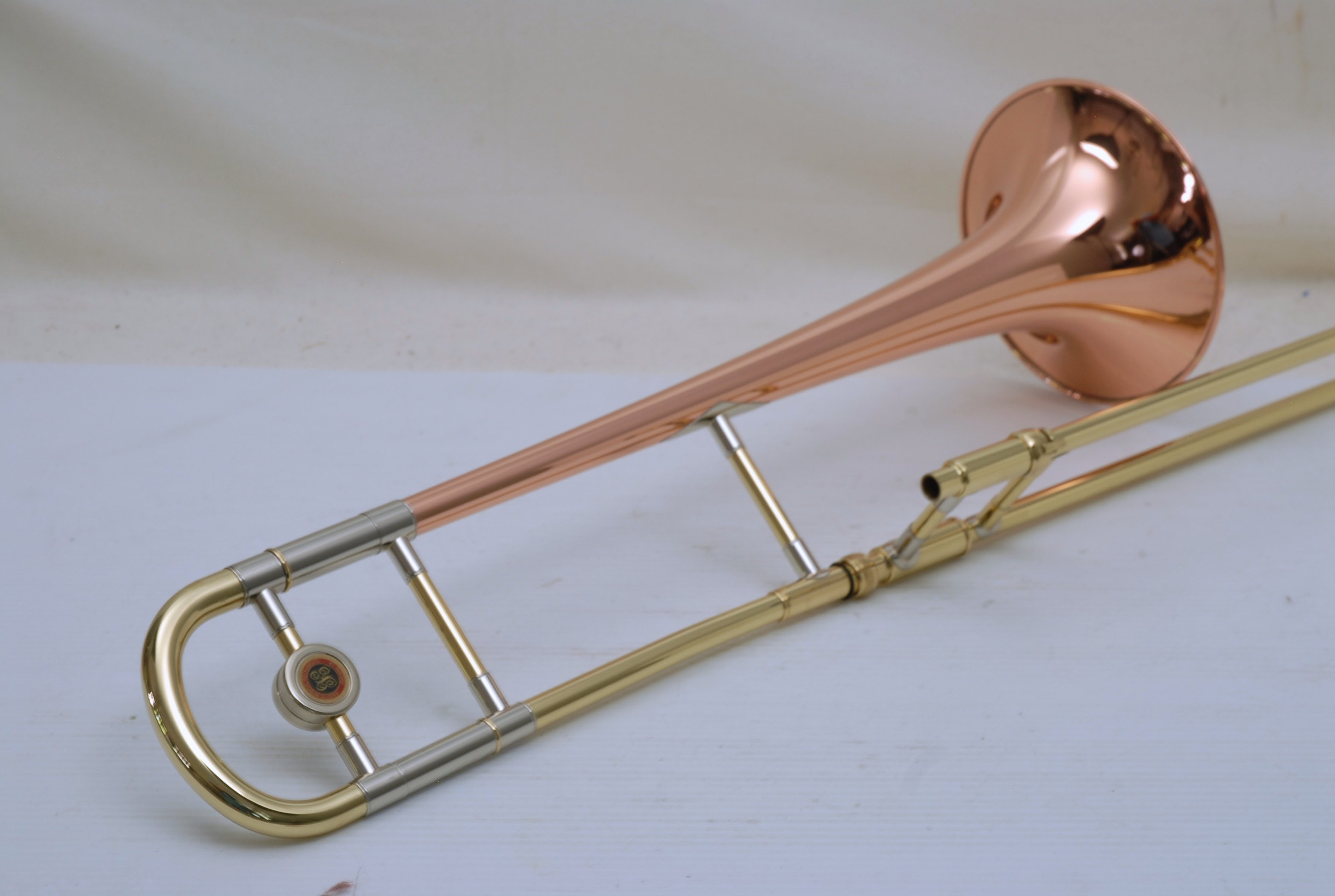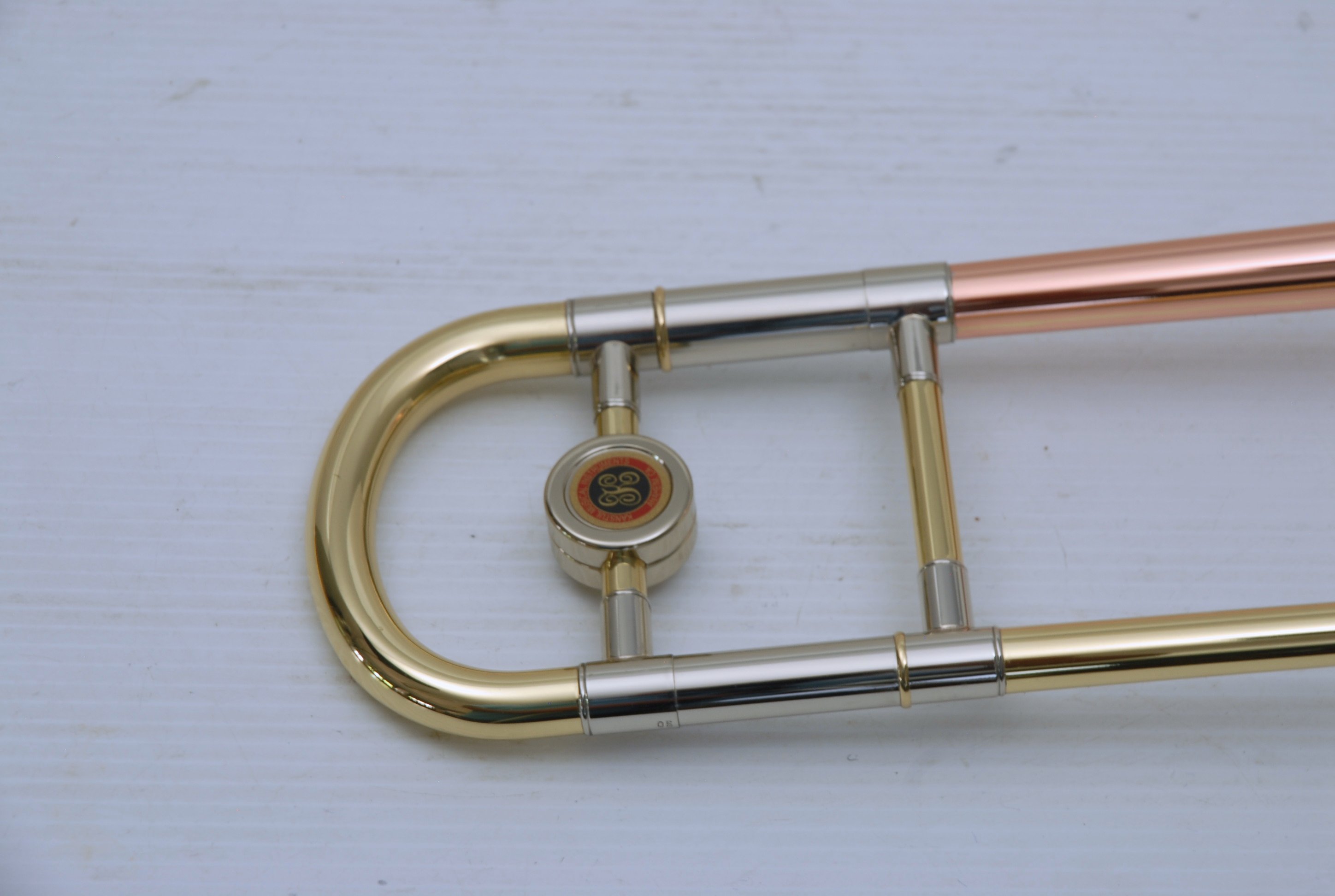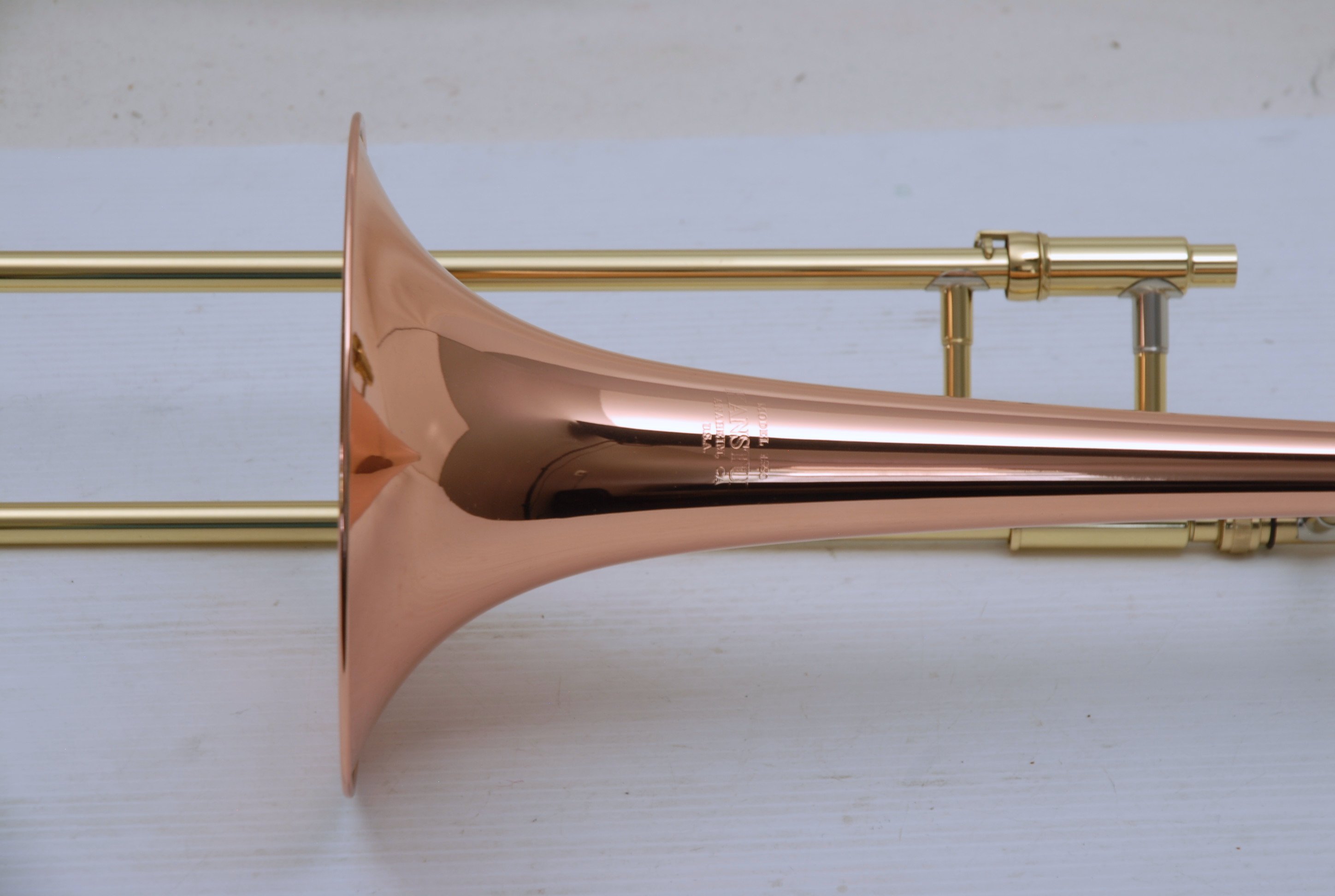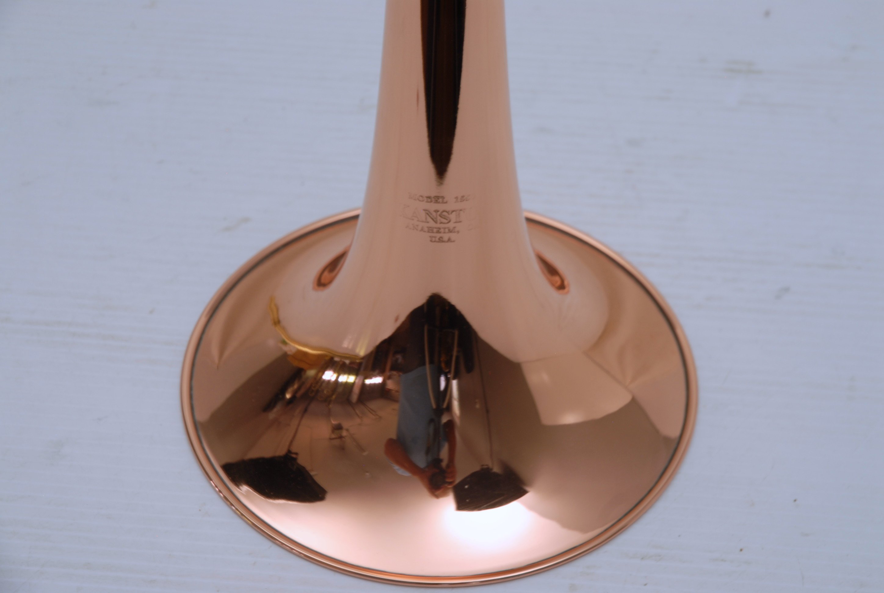 Kanstul 1550 .500 bore tenor.  This is slightly used mint condition .500 bore.  No damage or previous repairs.  Has gorgeous 8" copper bell with lightweight brass slide.  Similar to the vintage Conn 10H.  This horn plays with lots of color, ideal for jazz/commerical style/rock/funk. This is the type of horn that when you play at full volume, everyone knows you are in the room.  Handslide is super smooth and flawless.  Comes with a protec case.  When Kanstul was still in business this model sold for miniumum $2457.  In-stock for immediate delivery.