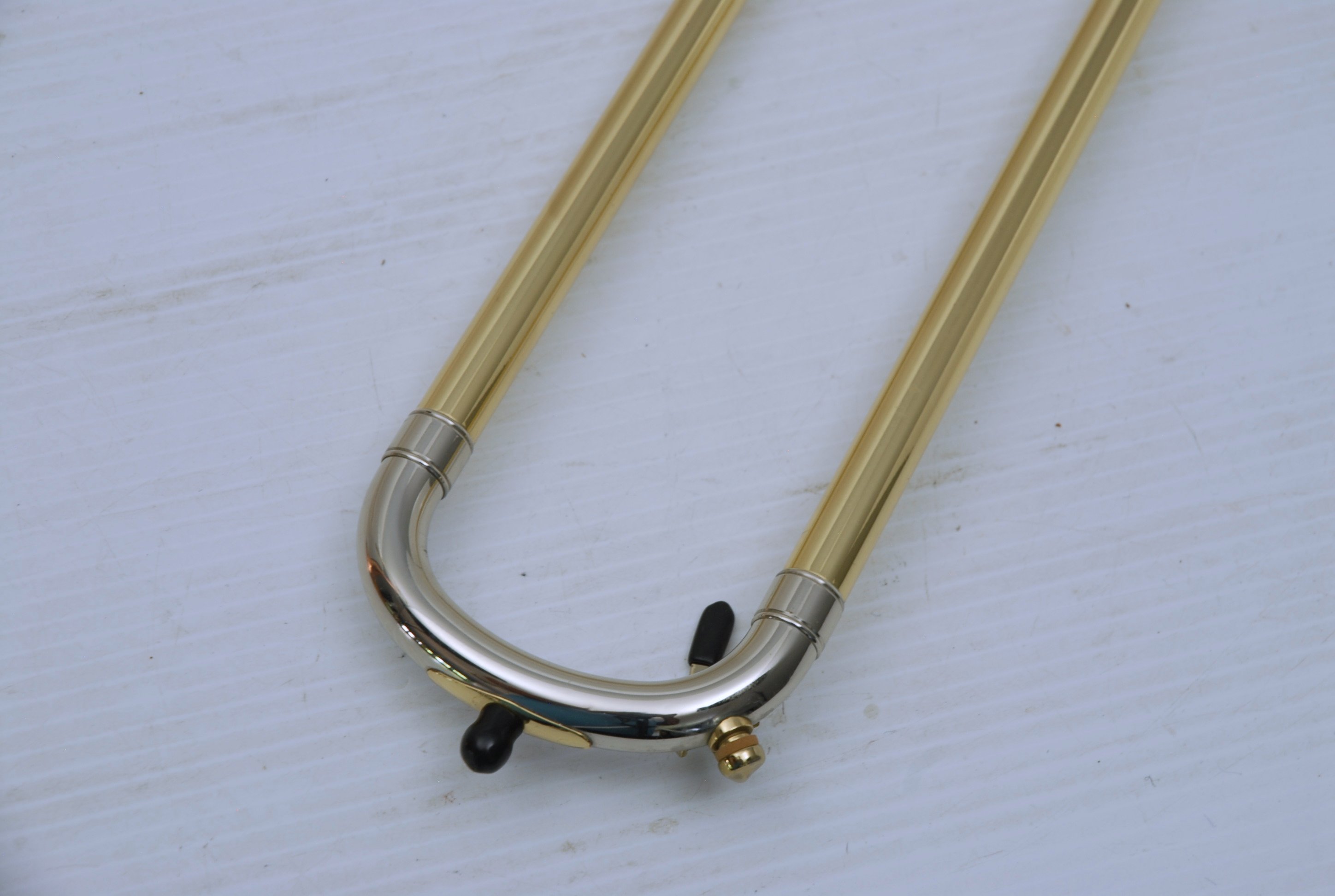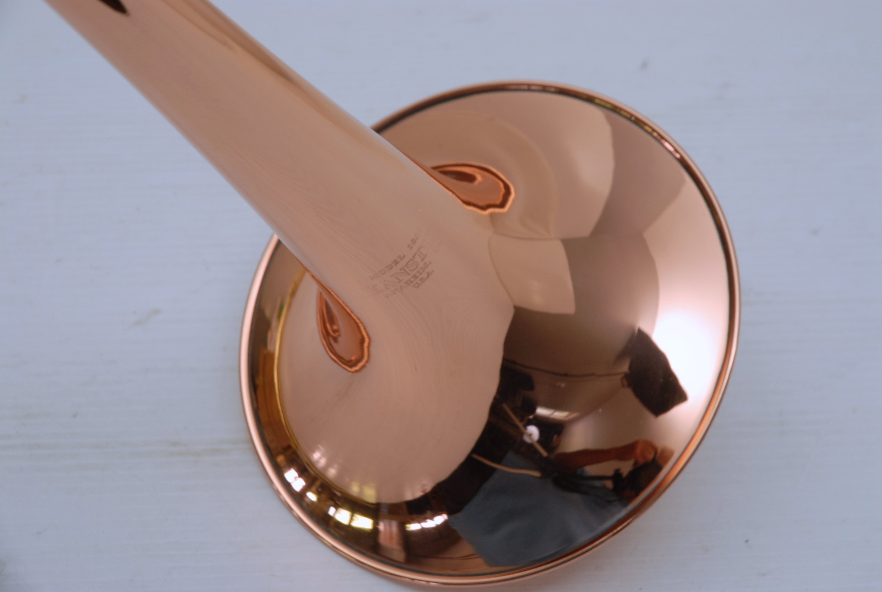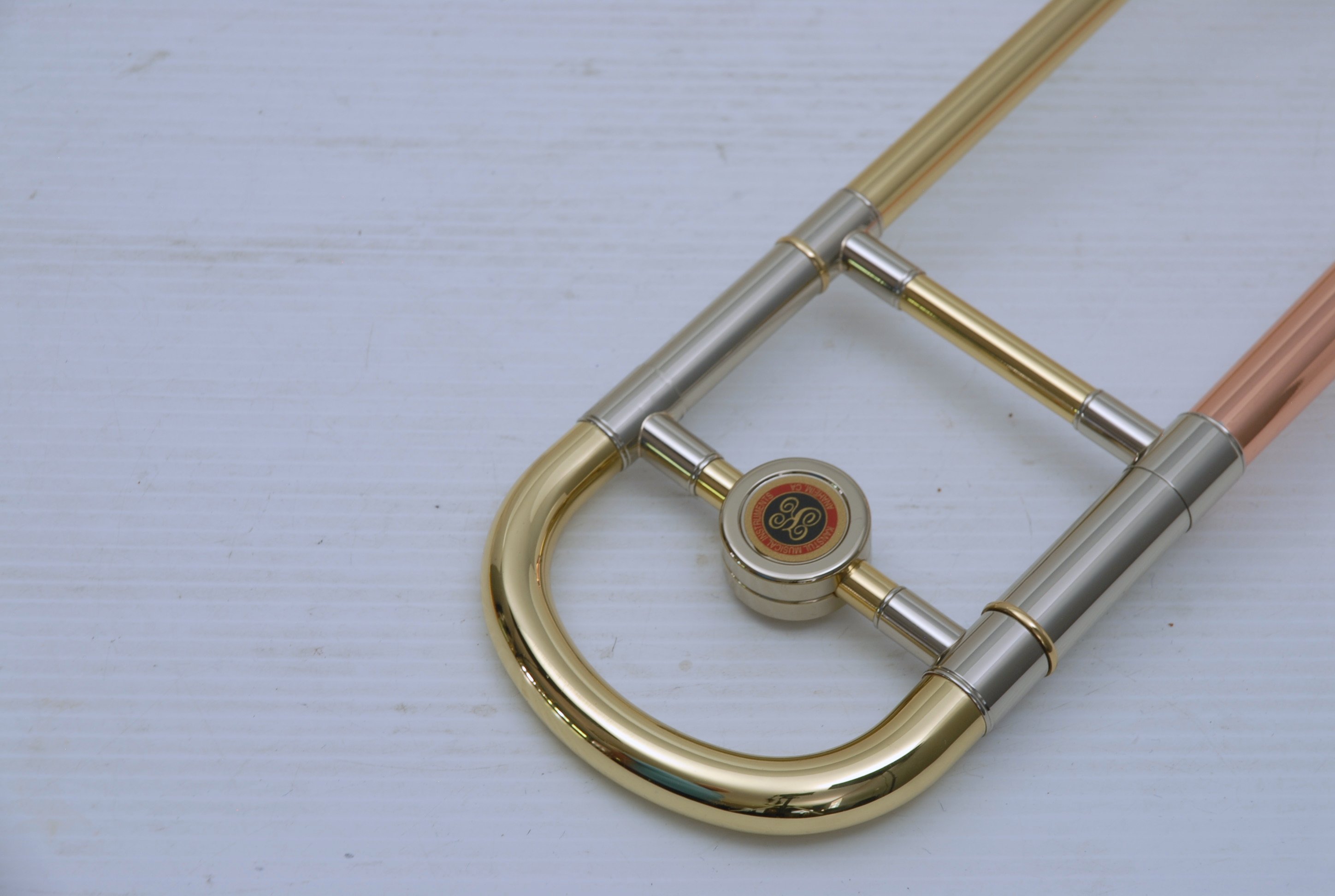 Kanstul 1550 .500 bore tenor.  This is slightly used mint condition .500 bore.  No damage or previous repairs.  Has gorgeous 8" copper bell with lightweight brass slide.  Similar to the vintage Conn 10H.  This horn plays with lots of color, ideal for jazz/commerical style/rock/funk. This is the type of horn that when you play at full volume, everyone knows you are in the room.  Handslide is super smooth and flawless.  Comes with a protec case.  When Kanstul was still in business this model sold for miniumum $2457.  In-stock for immediate delivery.