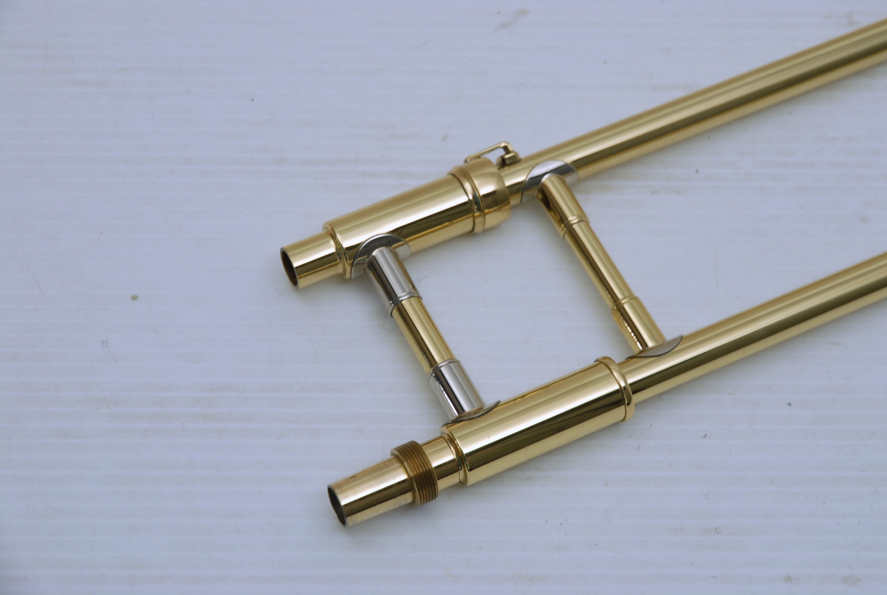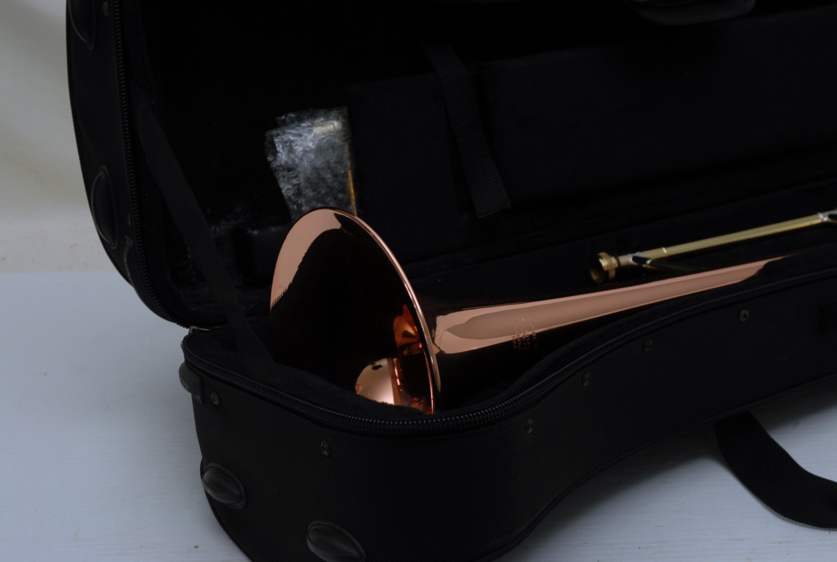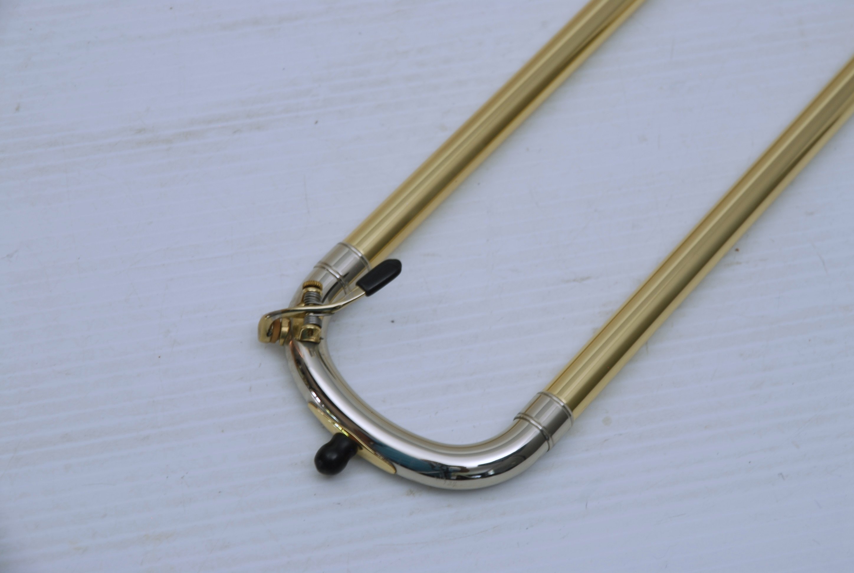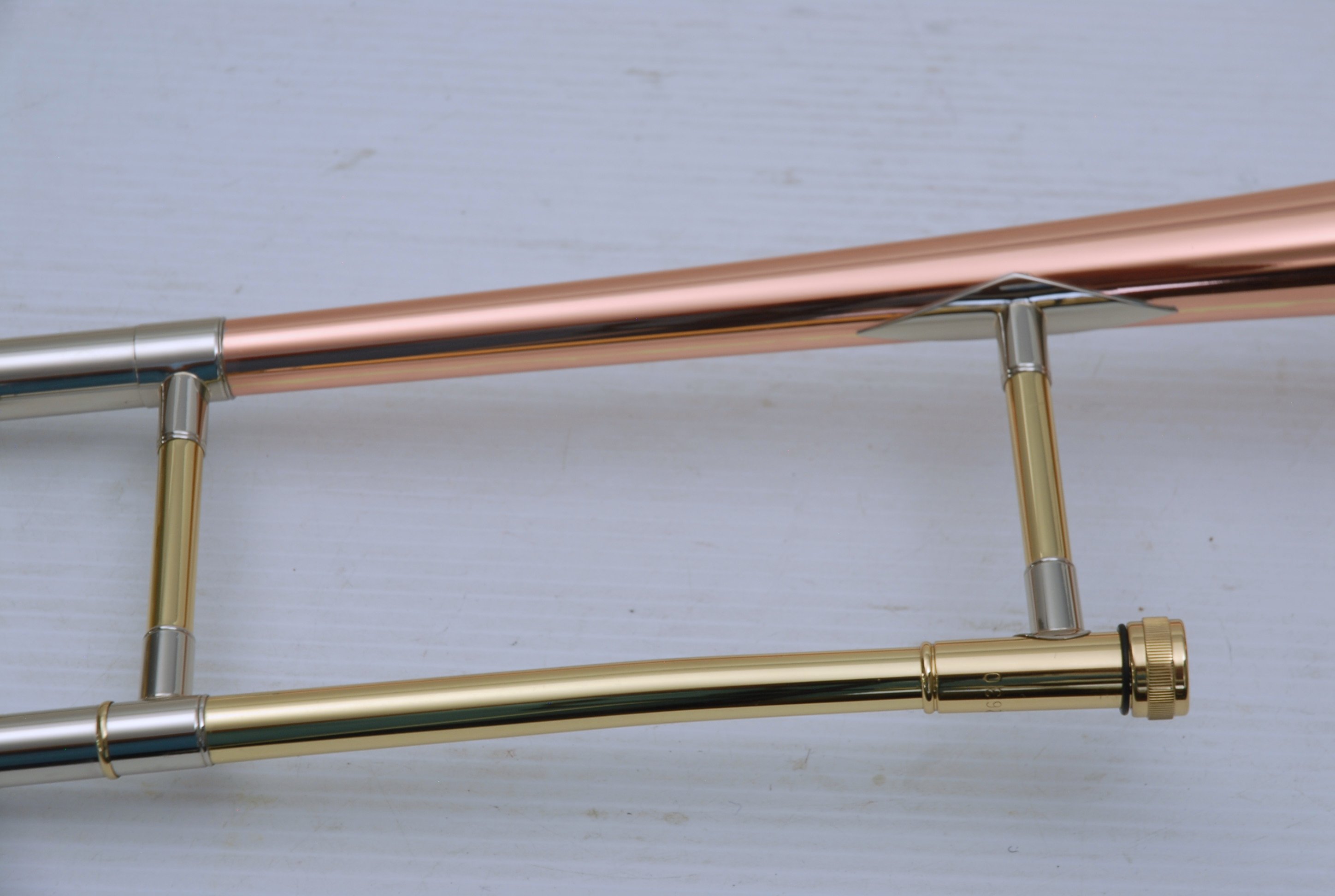Kanstul 1550 .500 bore tenor.  This is slightly used mint condition .500 bore.  No damage or previous repairs.  Has gorgeous 8" copper bell with lightweight brass slide.  Similar to the vintage Conn 10H.  This horn plays with lots of color, ideal for jazz/commerical style/rock/funk. This is the type of horn that when you play at full volume, everyone knows you are in the room.  Handslide is super smooth and flawless.  Comes with a protec case.  When Kanstul was still in business this model sold for miniumum $2457.  In-stock for immediate delivery.