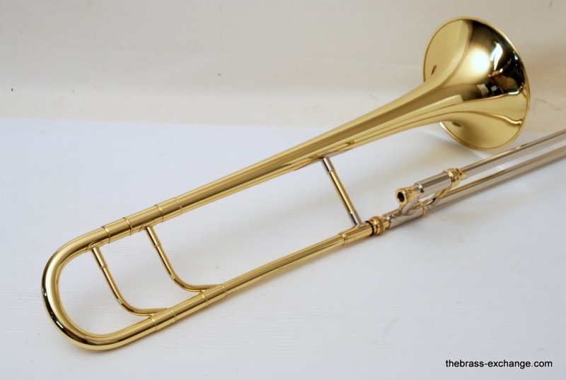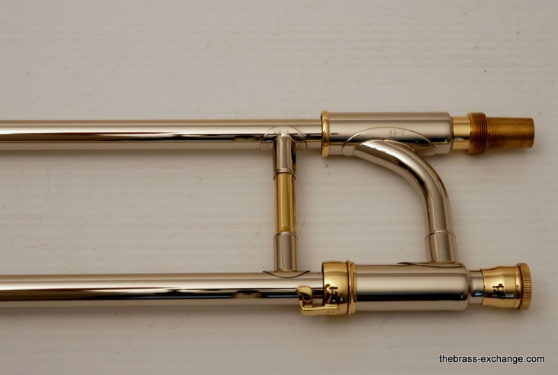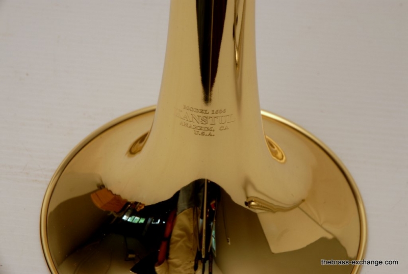 Kanstul Model 1606, perfect conditon, like new, barely used. This model was made by Zig Kanstul himself 4 years ago. The handslide is as good as a slide can possibly be, is super light and fast, all nickel .500 bore with three removable ledpipes included. Bell section 8" yellow brass, is the lighter gauge, very quick responding, lots of color, will play dark, but brighten up when needed. This would make an excellent pro level jazz/commercial/studio horn for any small bore player looking to depart from the typical 2B/3B. These sell new today in L.A. for $2650. This one is an exceptional player and terrific value. Protec case and all three leadpipes included.