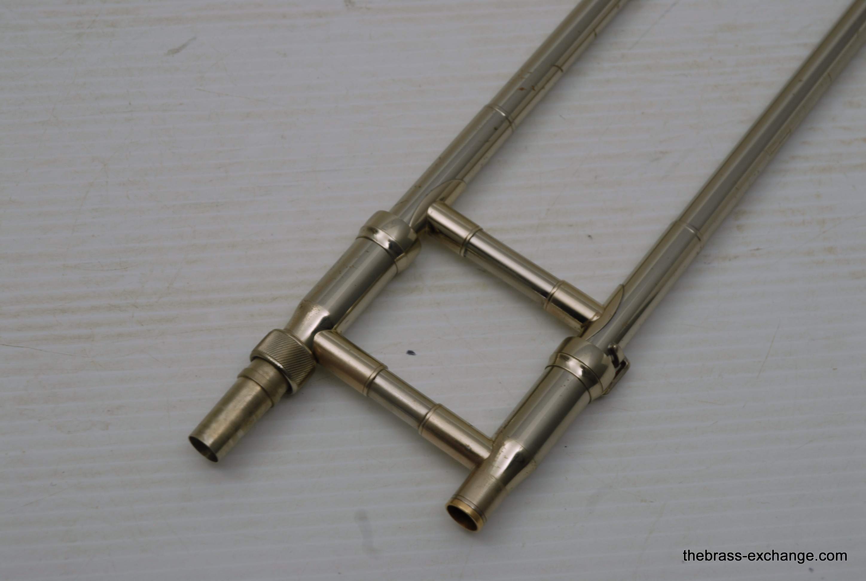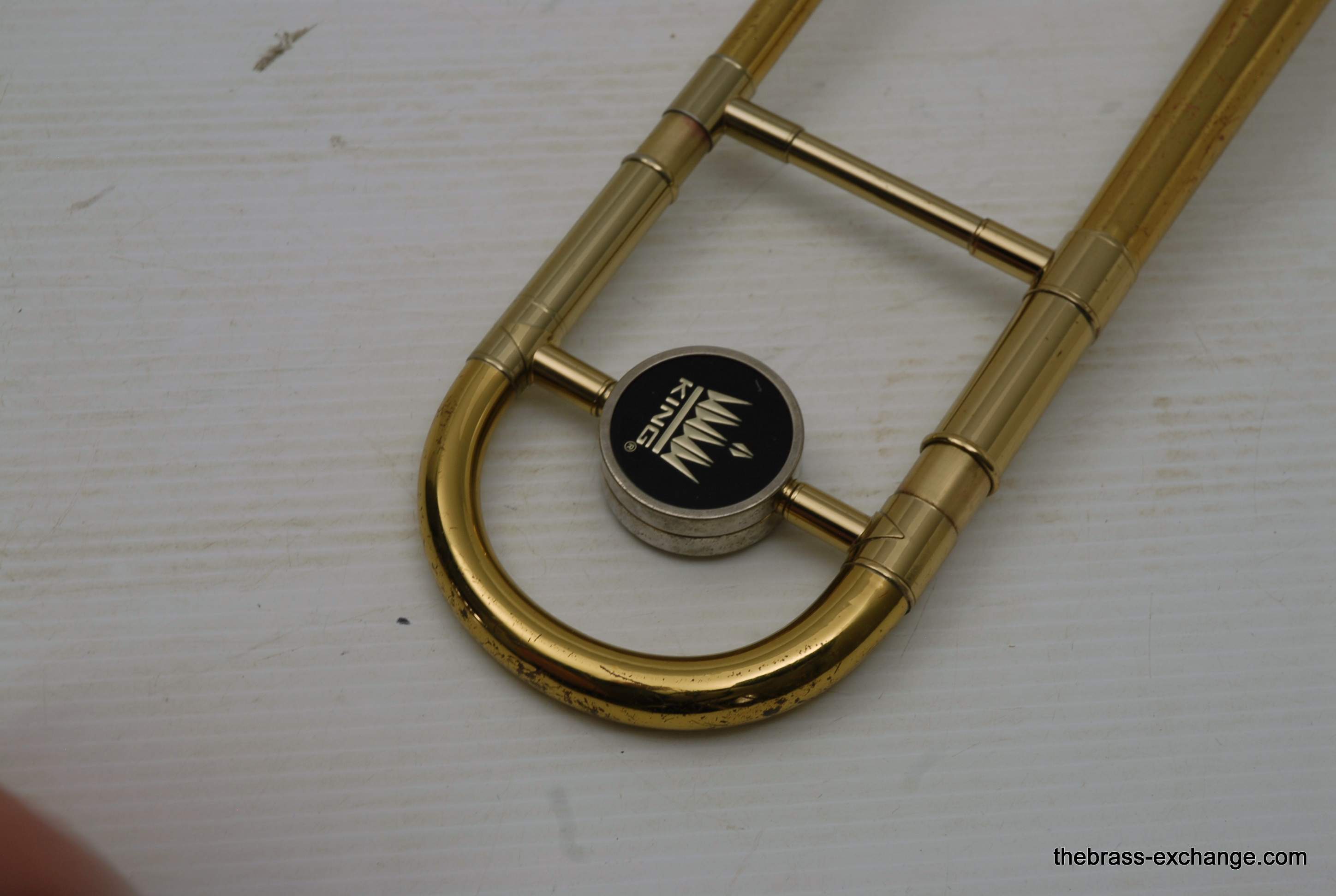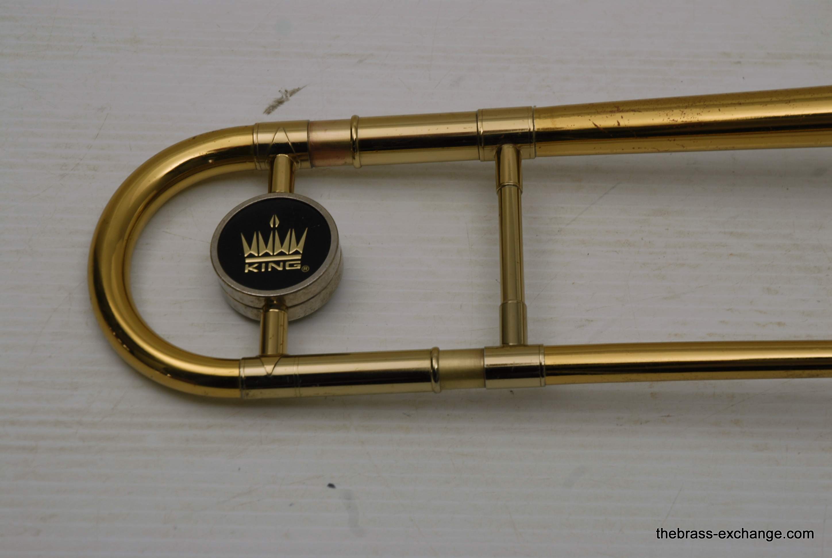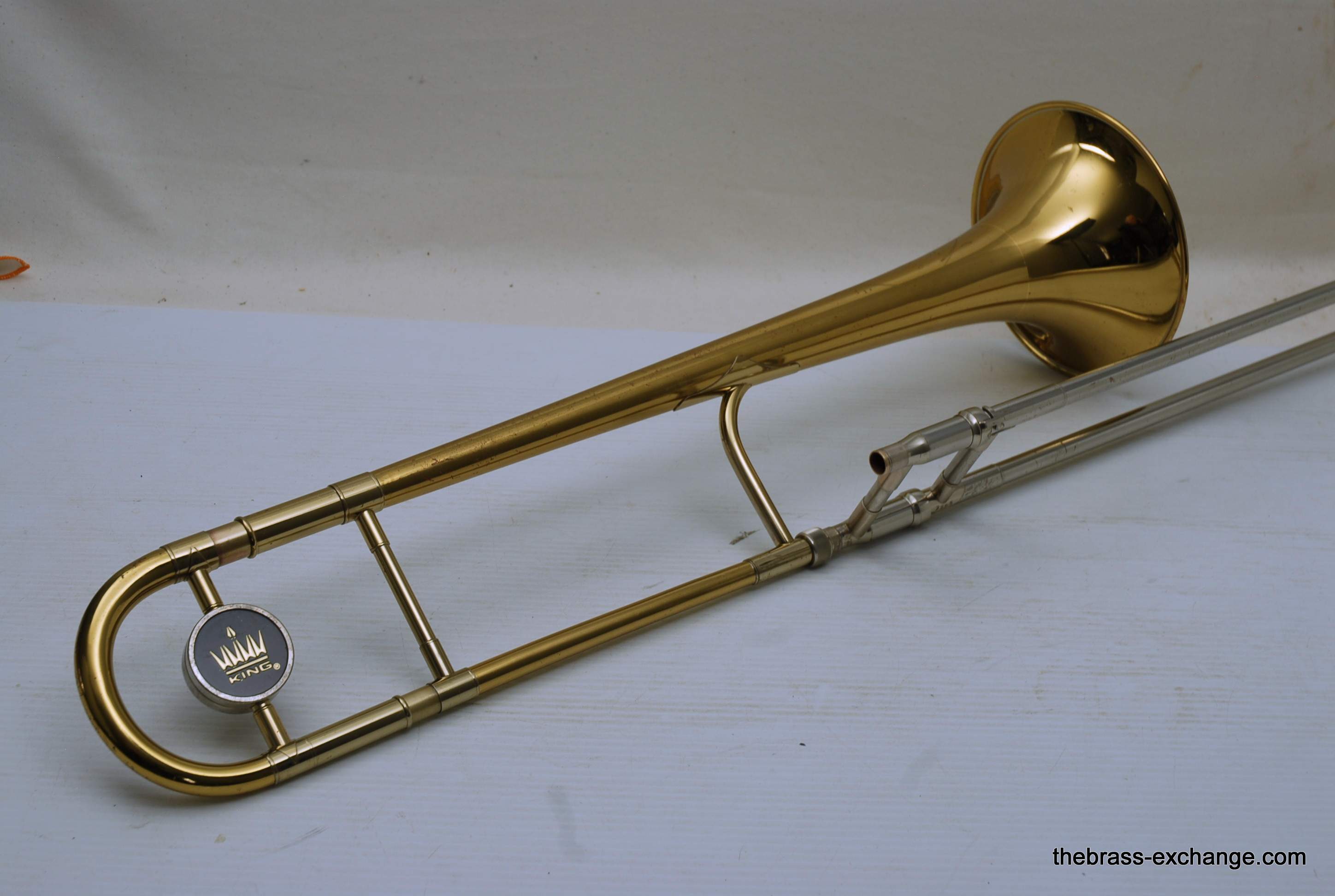 King 2B Made in the mid 1970's.  Is the classic 2B - 2 Bore- dual Bore model.  In fact, 2B means 2- bore.  Yes the top inner tube is less in inner diameter than the bottom inner tube.  The bell is small.  This model delivers a lot of energy out front with lot of warmth and center, but will also sizzle and cut above lover voices, as you would excpect in a lead horn. Is all original parts and lacquer.  Has had full shop service with chemical bath, slide adjust, no dents or dings.  Handslide is very good, no defects on inner slide tubes.  The slide plays perfectly as is.  This horn has not had major damage or repair.  Would be an ideal lead or solo horn for big band, trad jazz, dance band, commerical style playing.  There is a reason why Tommy Dorsey and so many other famous players over the years played this model.  Once you start playing it, you know why.  Comes with a new MTS compact lightweight case.  In-stock for immediate delivery.