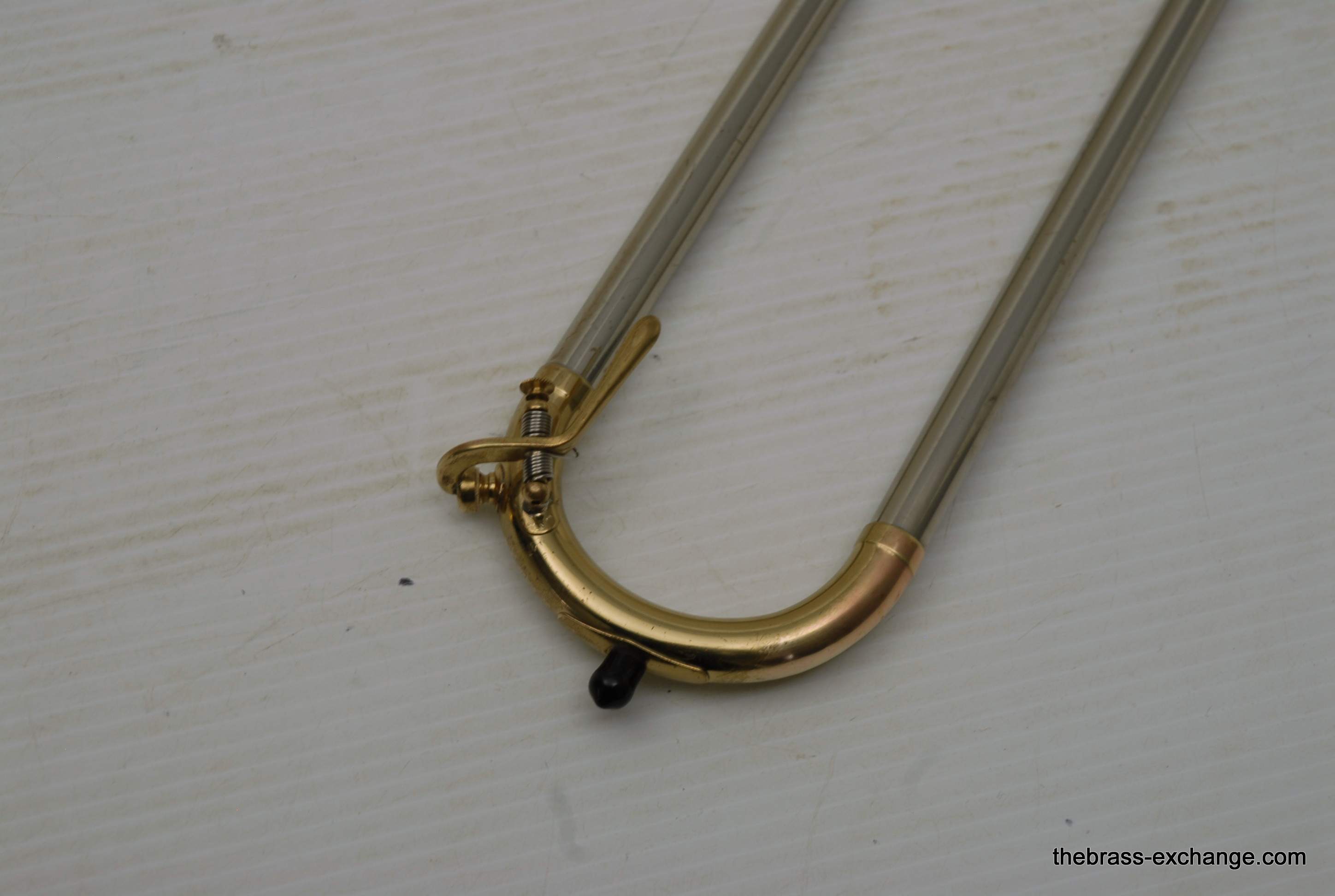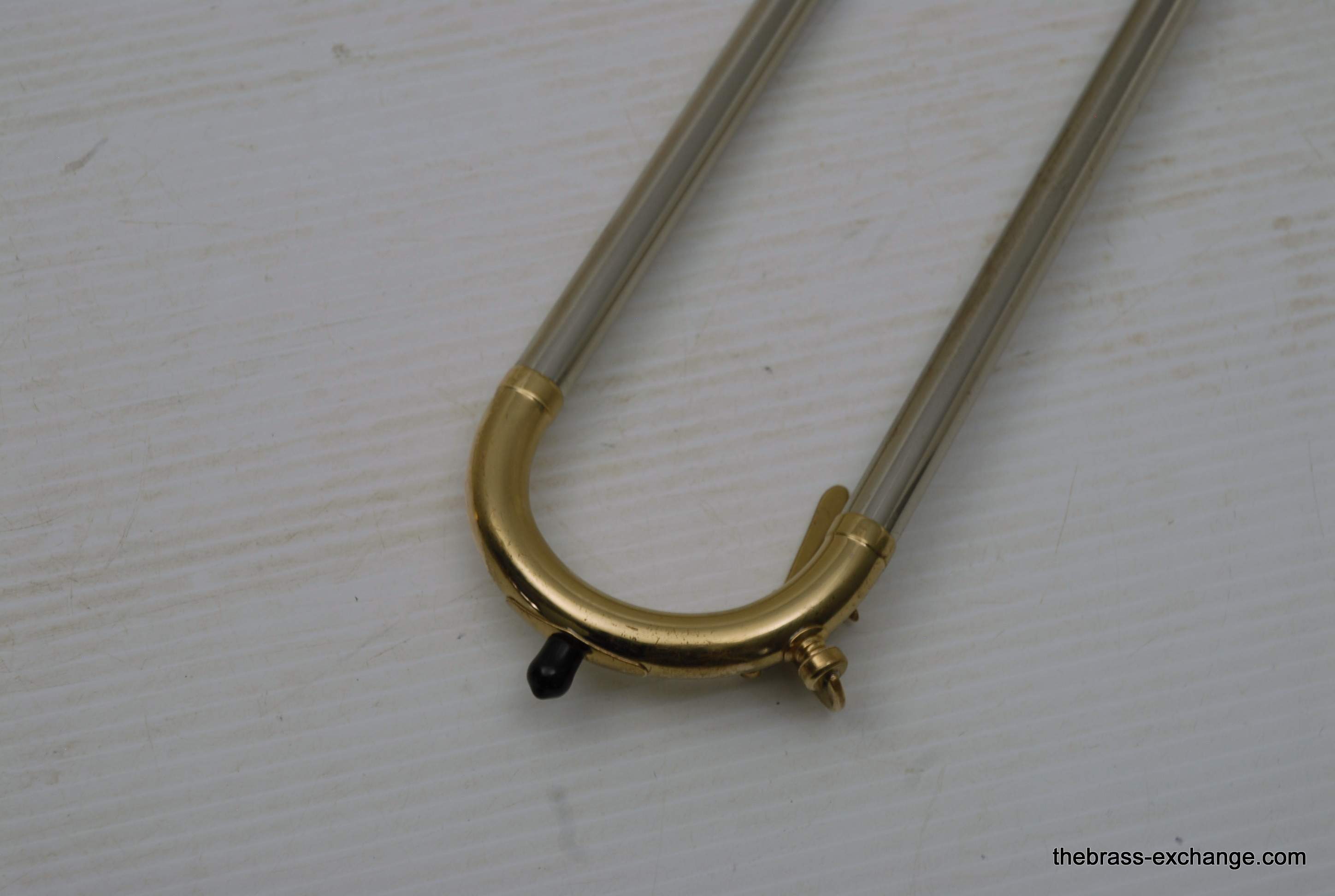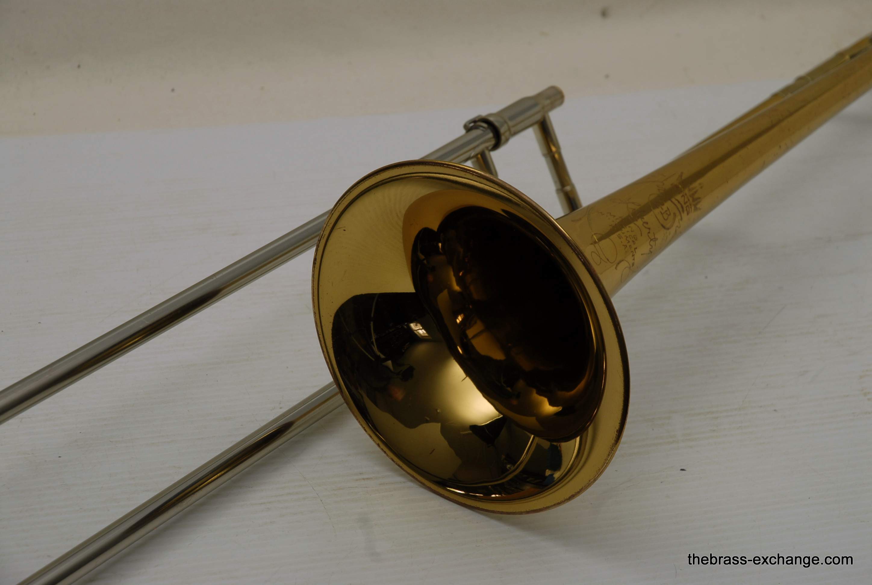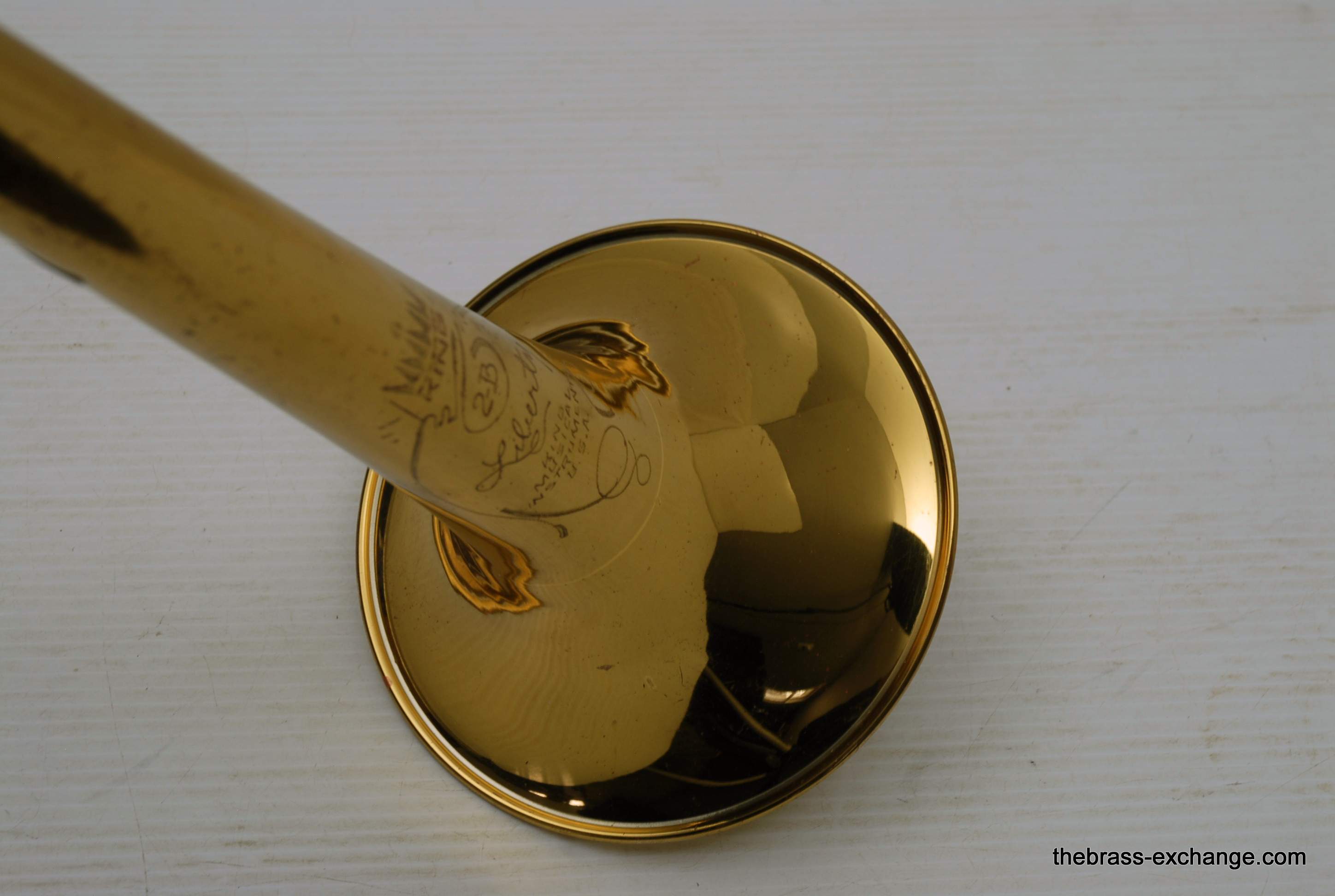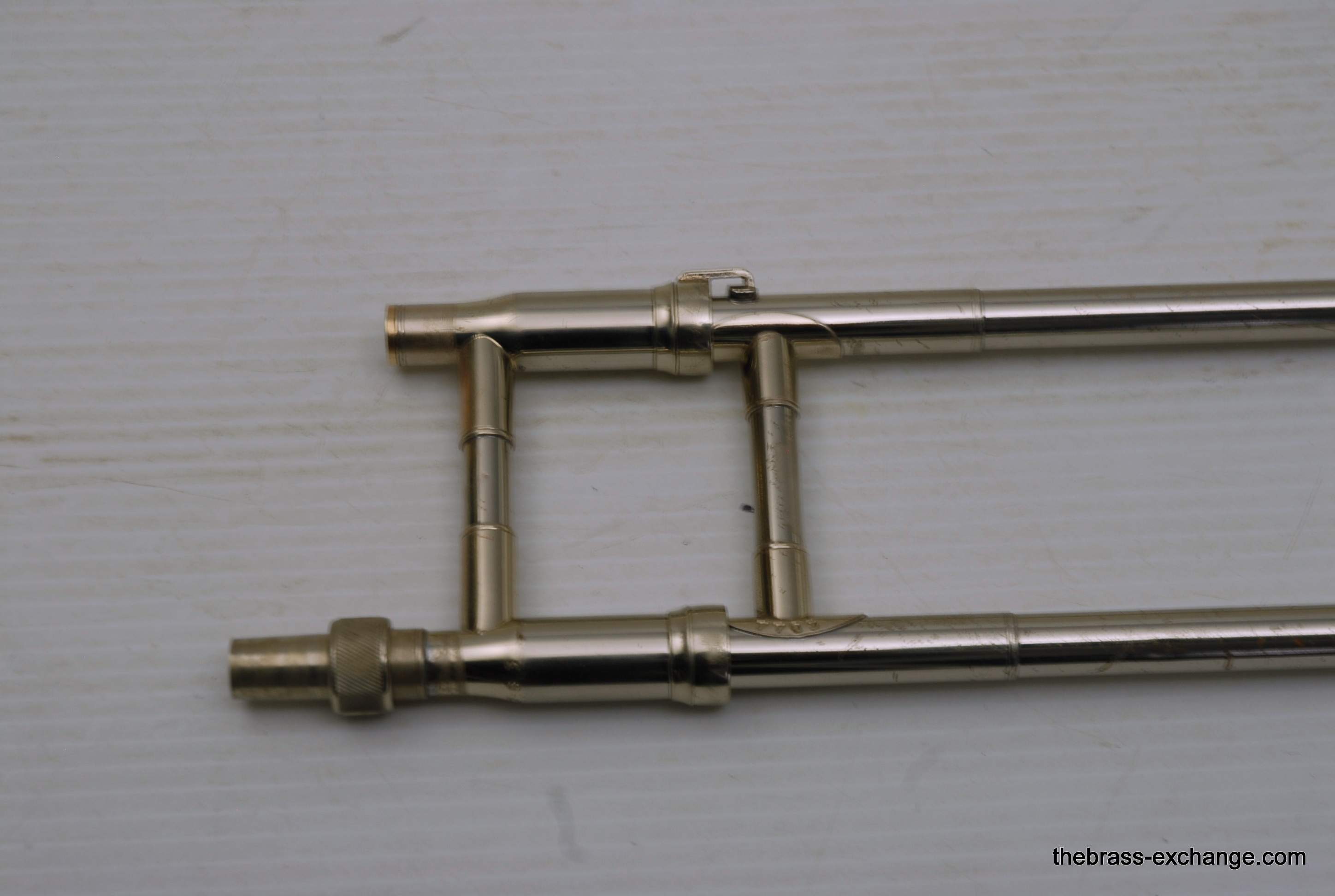 King 2B Made in the mid 1970's.  Is the classic 2B - 2 Bore- dual Bore model.  In fact, 2B means 2- bore.  Yes the top inner tube is less in inner diameter than the bottom inner tube.  The bell is small.  This model delivers a lot of energy out front with lot of warmth and center, but will also sizzle and cut above lover voices, as you would excpect in a lead horn. Is all original parts and lacquer.  Has had full shop service with chemical bath, slide adjust, no dents or dings.  Handslide is very good, no defects on inner slide tubes.  The slide plays perfectly as is.  This horn has not had major damage or repair.  Would be an ideal lead or solo horn for big band, trad jazz, dance band, commerical style playing.  There is a reason why Tommy Dorsey and so many other famous players over the years played this model.  Once you start playing it, you know why.  Comes with a new MTS compact lightweight case.  In-stock for immediate delivery.