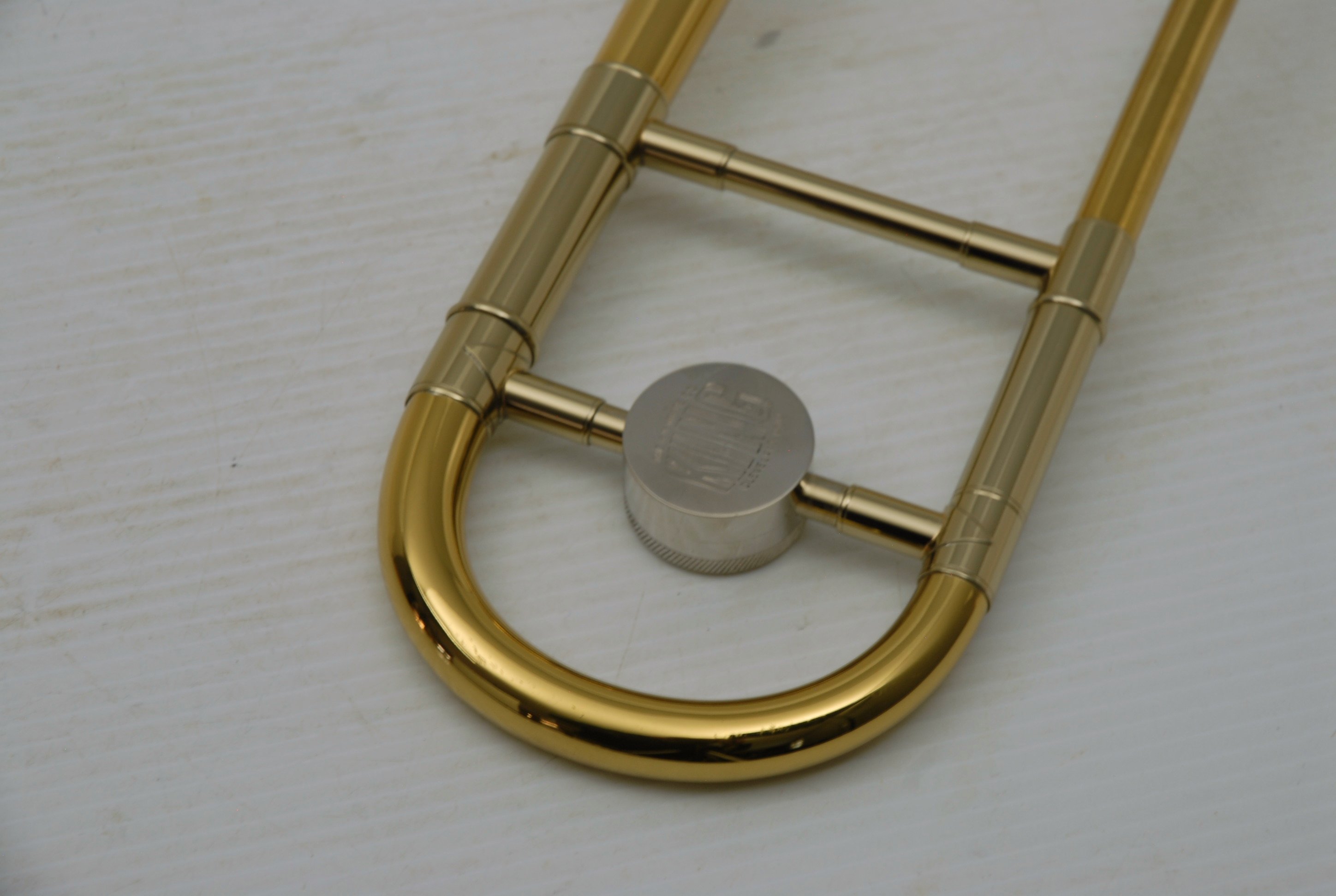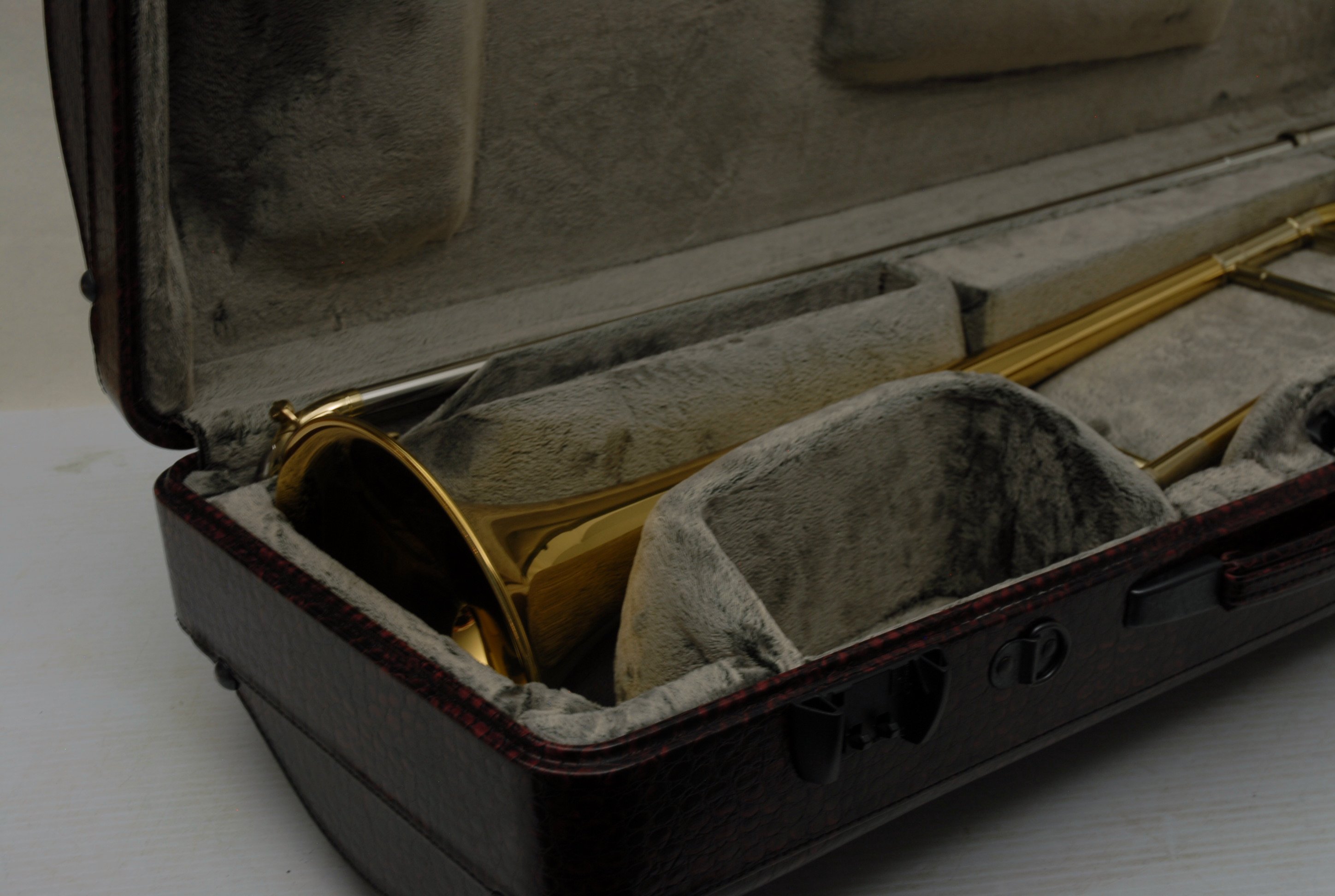 This particular horn arrived at The Brass Exchange in near-mint condition—bell perfectly straight, no solder repairs, and an untouched lacquer finish that still gleams with its original factory hue. The handslide operates flawlessly, aligning precisely without tension or drag.