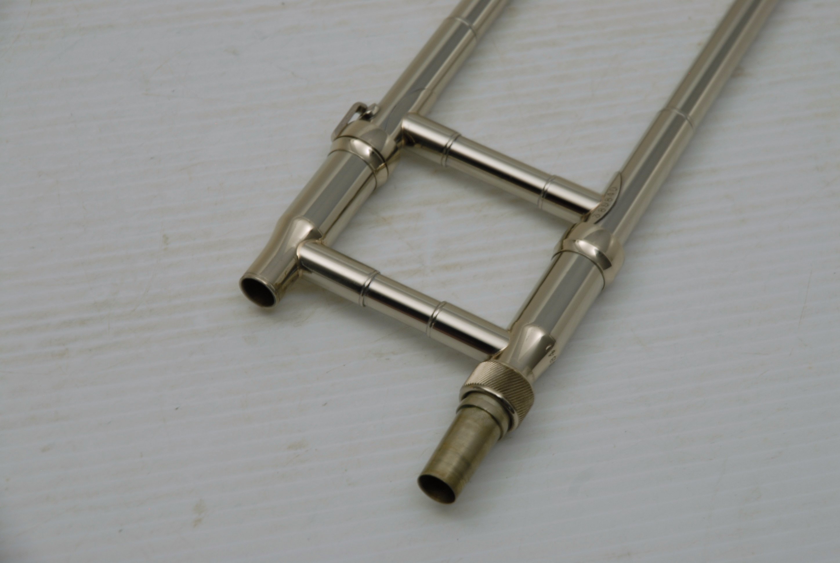 A: These instruments were built before the company’s sale to Seeburg (1965). They feature Cleveland-engraved bells, yellow-brass slides with nickel-silver outer tubes, and the signature quick-response core that later generations sought to recreate.