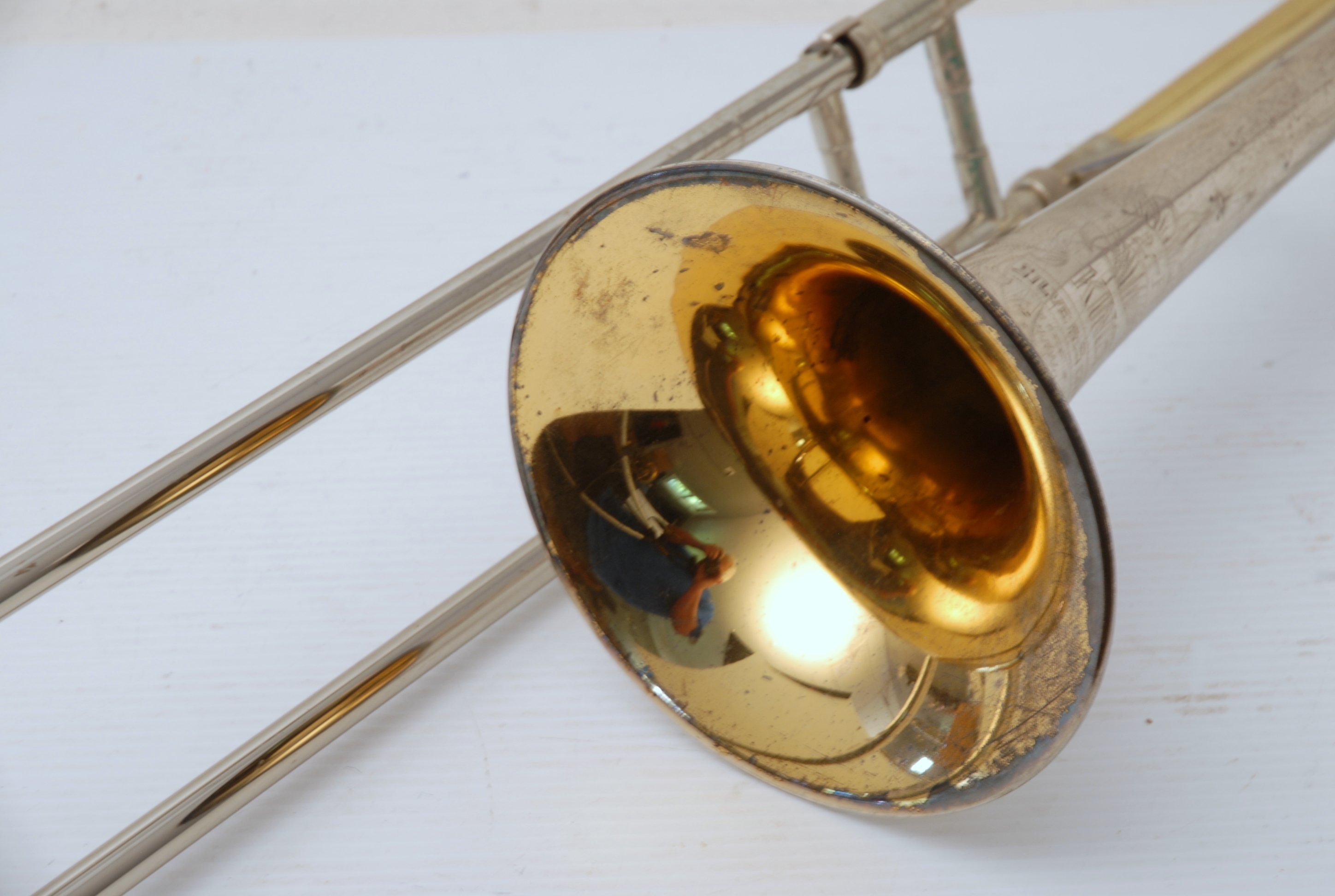 And yes, this one has provenance. It comes from a retired Los Angeles-based studio player who logged thousands of sessions—a serious working musician who knew how to care for a great instrument. The horn has recently undergone a full chemical bath and shop service, and has been adjusted for maximum playability. The slide feels great, and there are no functional issues whatsoever—just moderate lacquer wear, consistent with age and professional use.