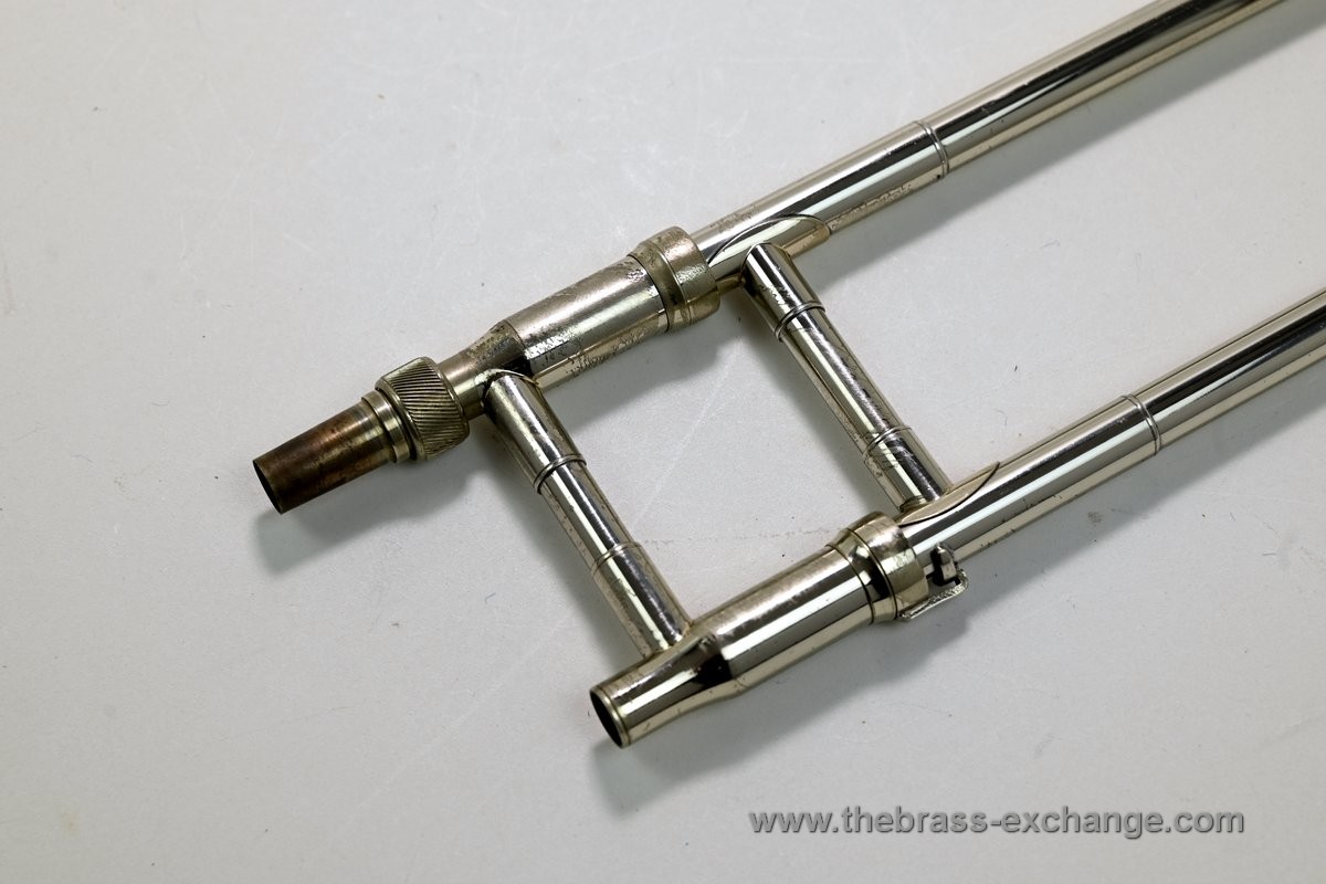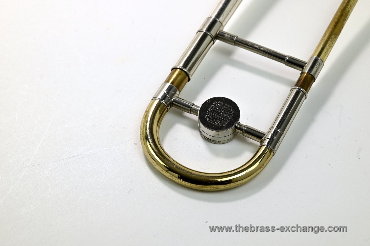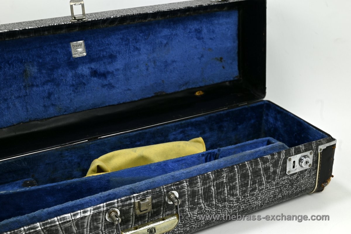 Introduced in the 1930s, it became renowned for its sterling-silver bell with gold-wash interior and dual-bore slide, delivering a lively, colorful tone.