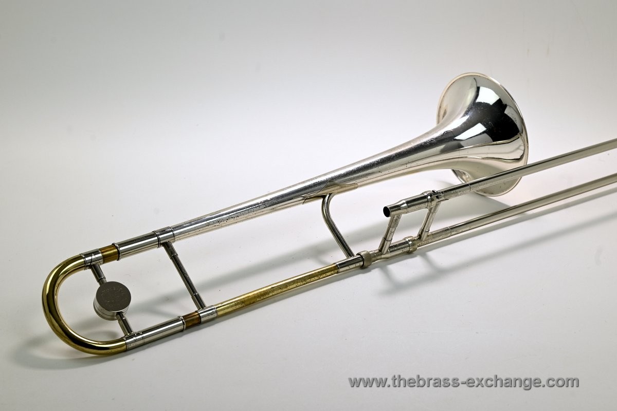 The horn features the celebrated 7.5-inch sterling-silver bell with gold-washed interior, paired with the original dual-bore (.481"/.491") hand-slide, all in original parts and lacquer.