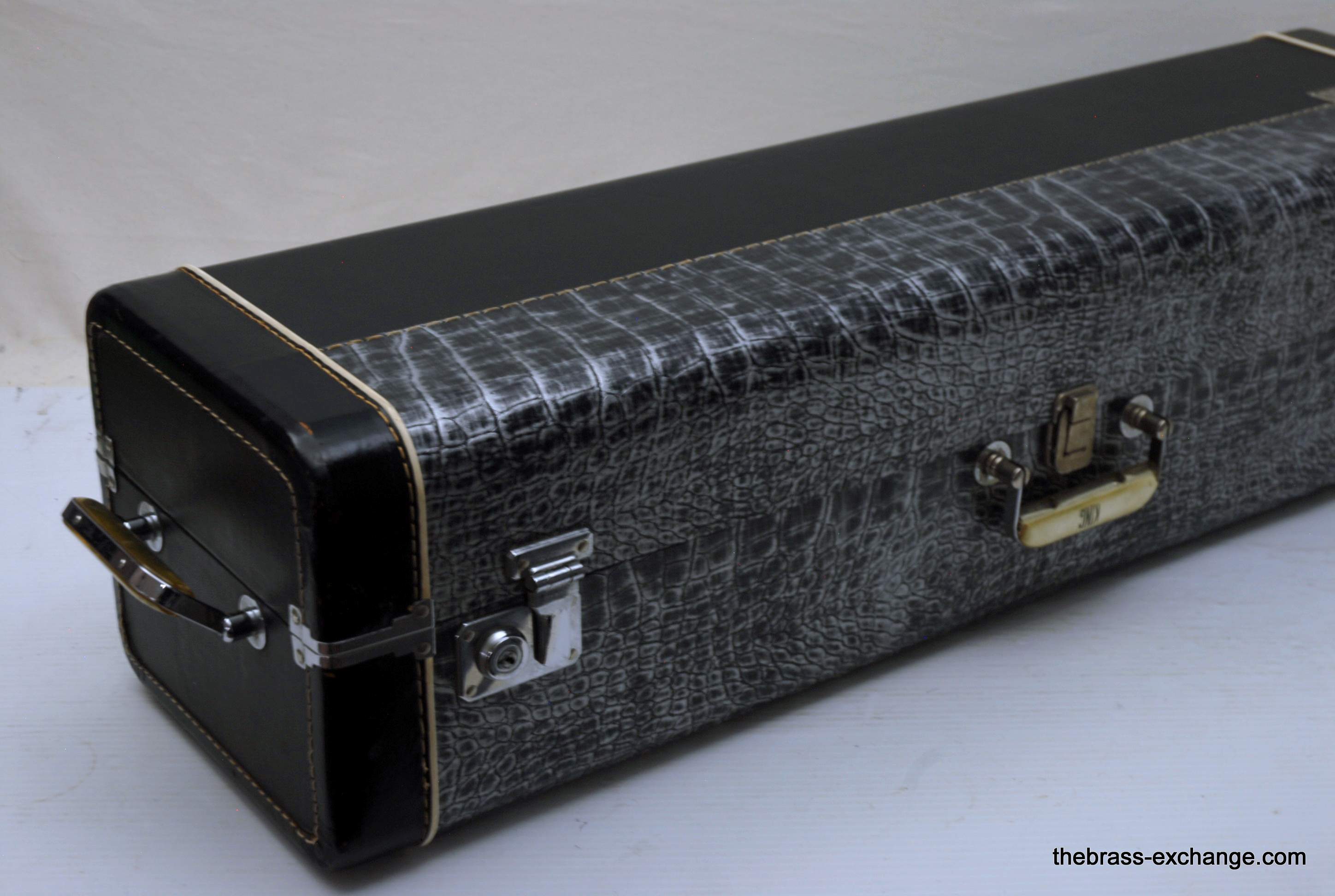 A: The original black-and-silver coffin case came with the trombone, along with original paperwork.