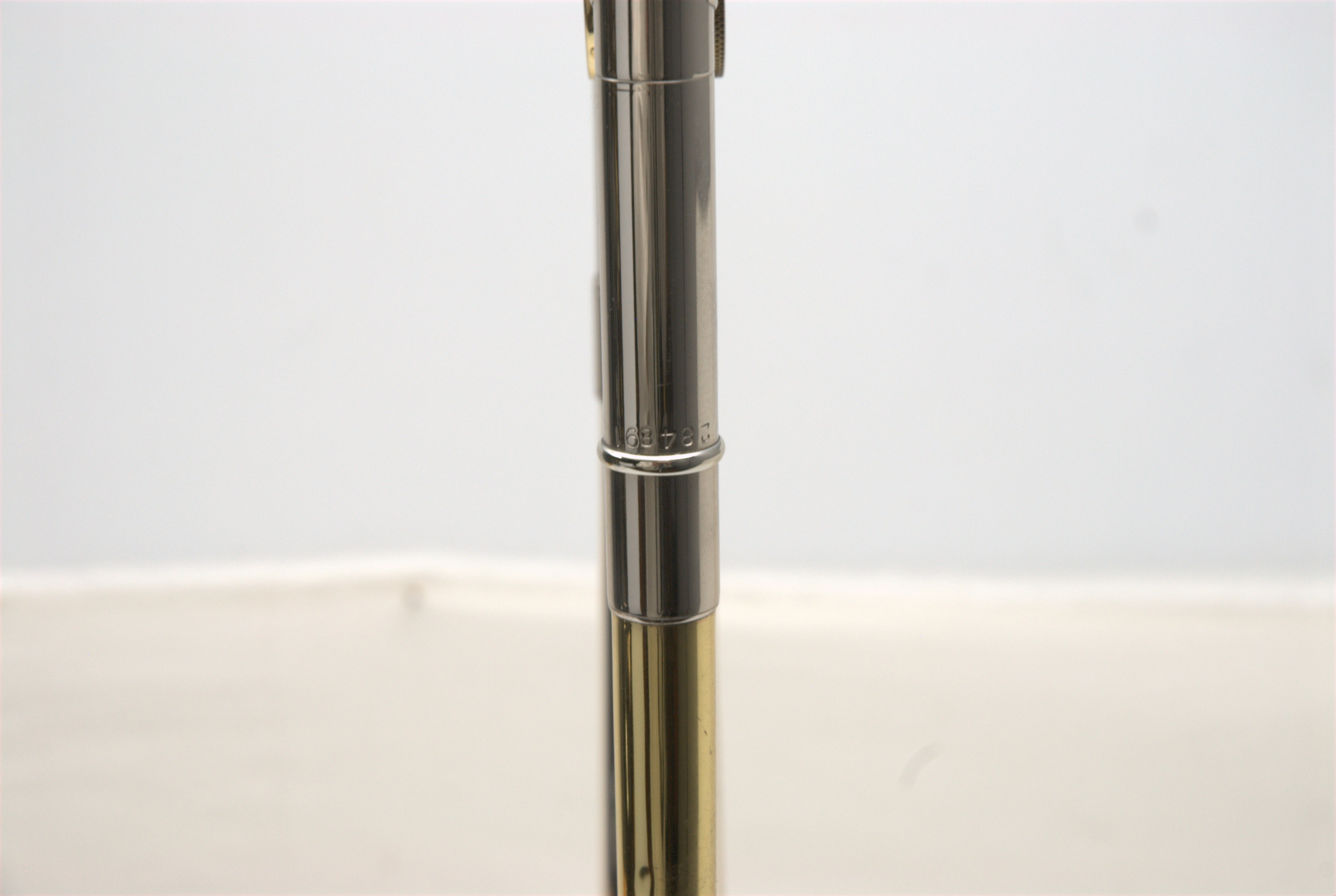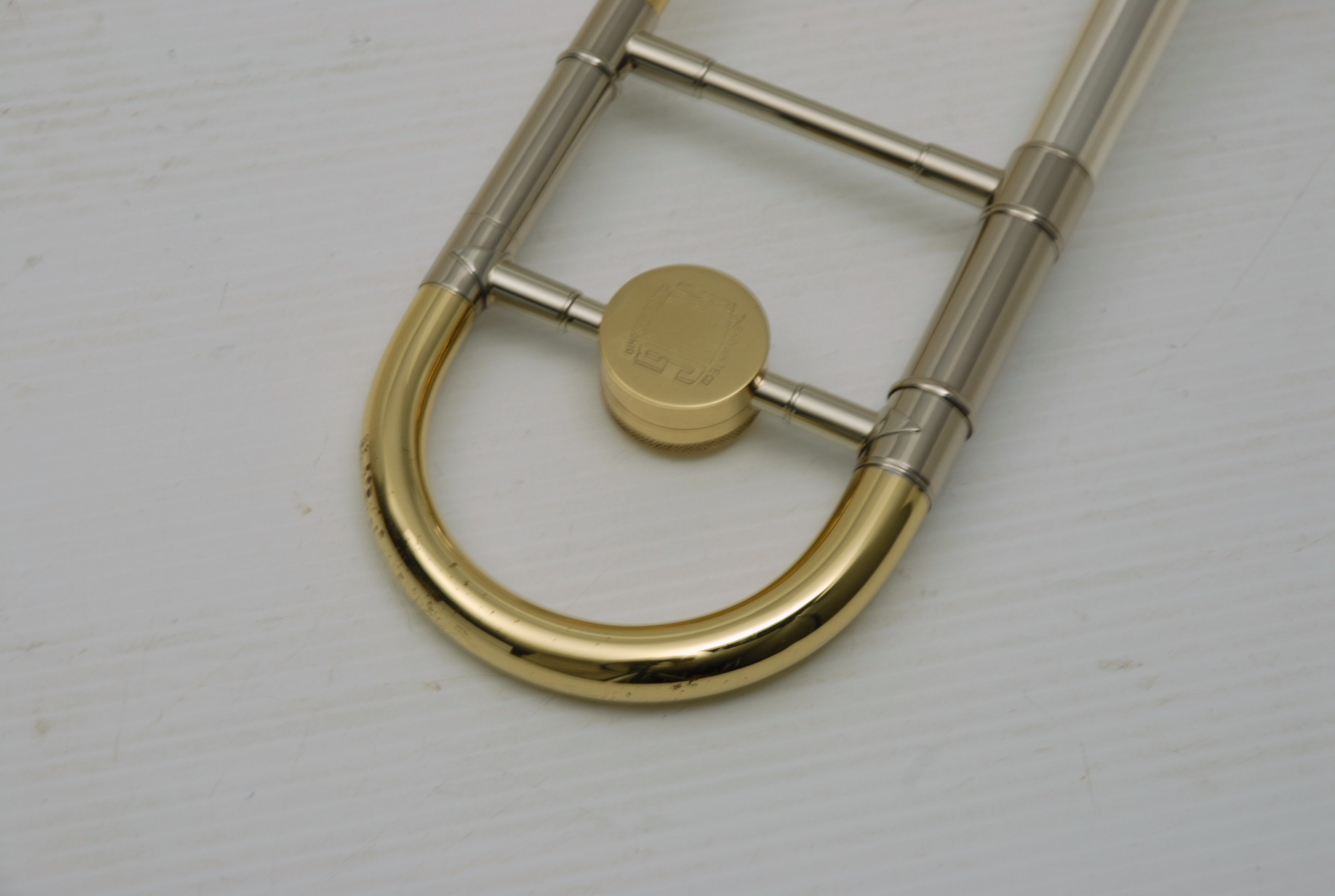 This 1947 example sits squarely in that golden period. It features a sterling silver outer bell with a gold-plated inner flare, a combination prized for its ability to project with brilliance while retaining warmth and tonal depth. The dual-bore .481/.491 handslide gives the horn its quick response and unmistakable King feel.