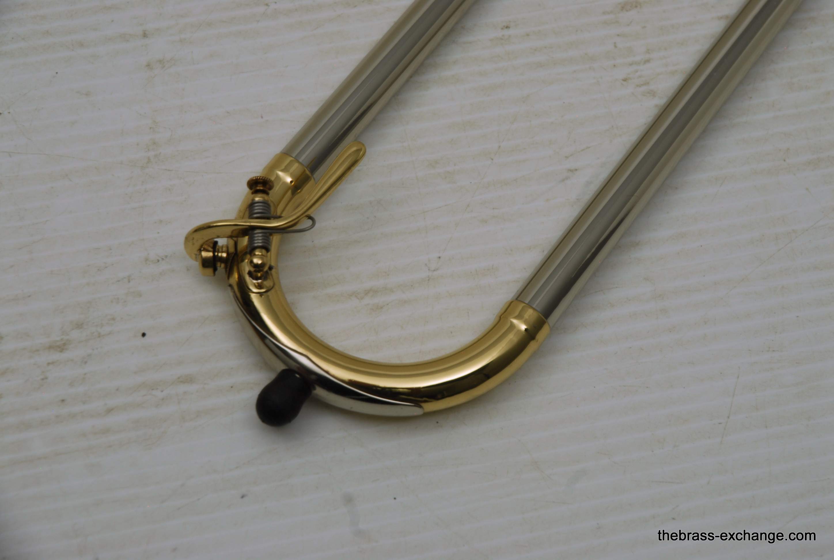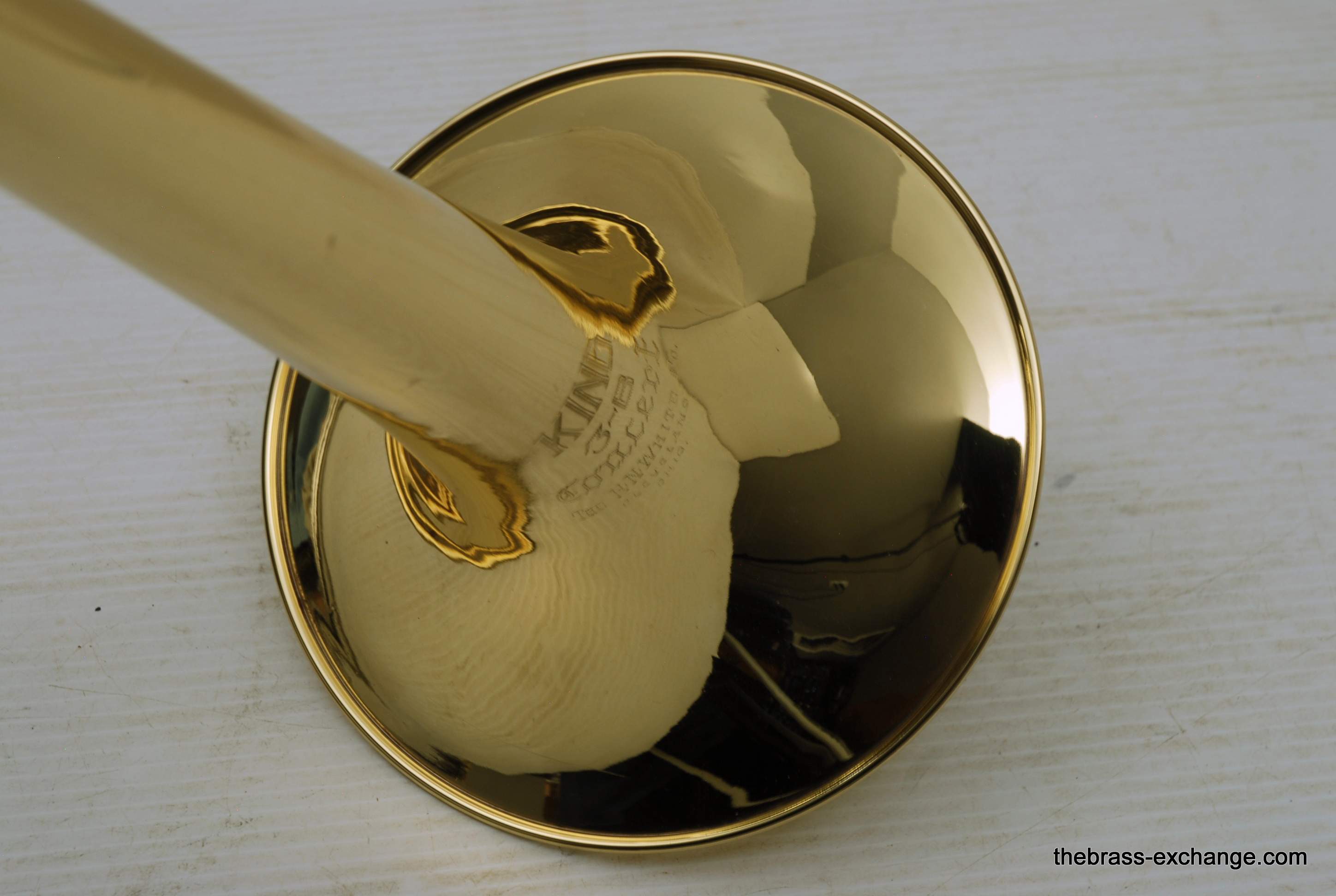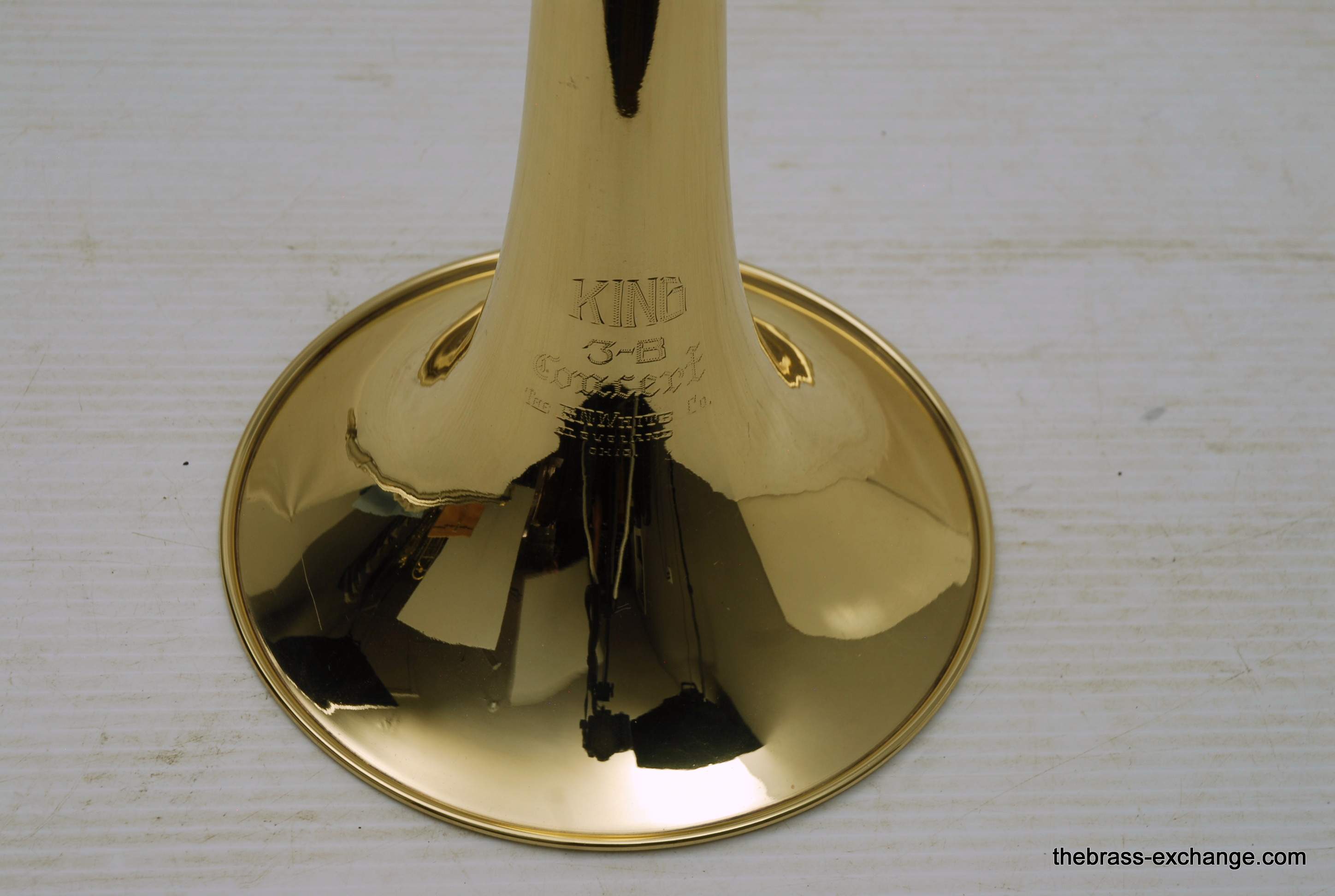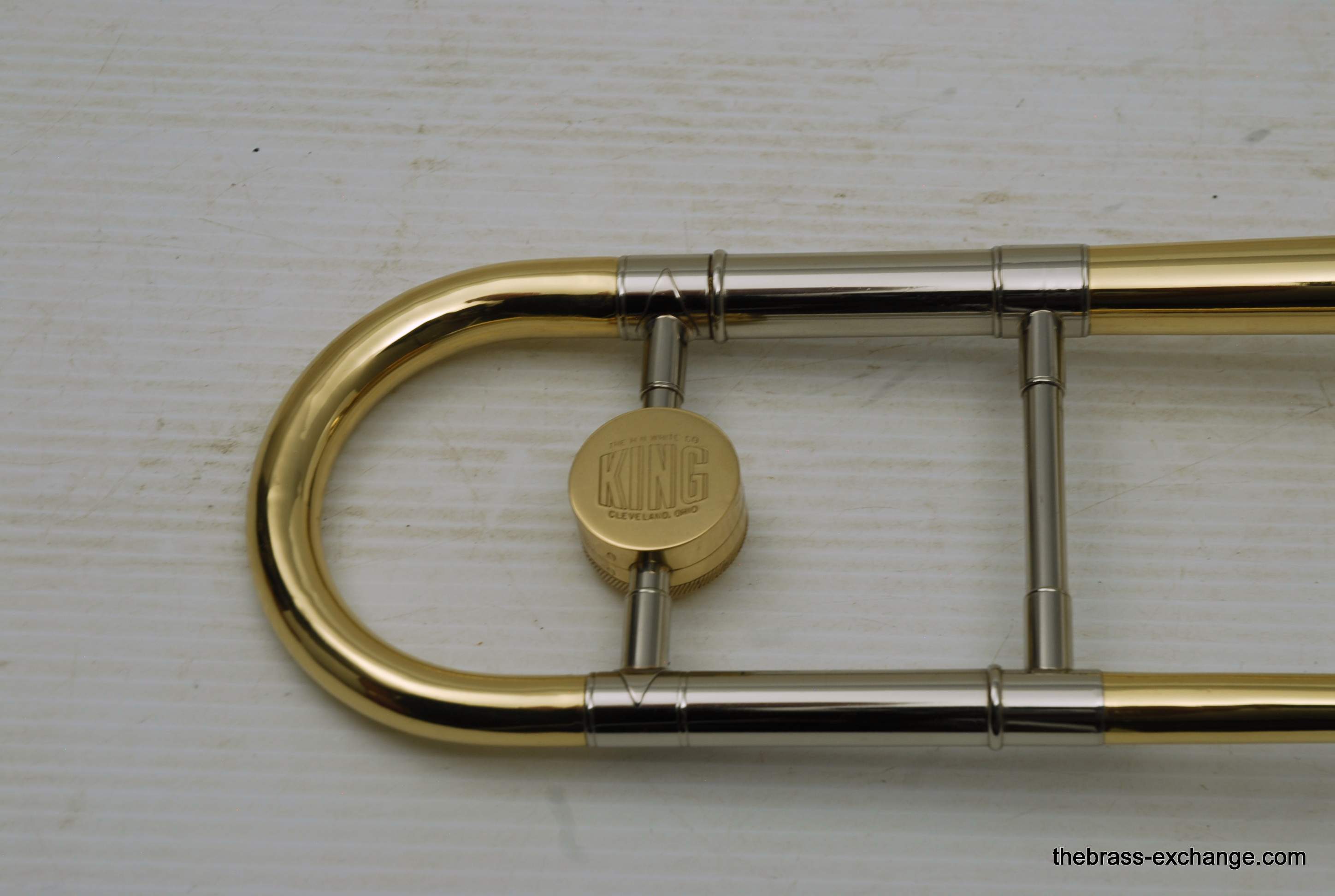 Kingย 3Bย Concert H.N. White 1950's Vintage.ย Was made between 1955-1960, is about the earilest one that we have seen here since the beginning of the Brass Exchange.ย Is most likely from 1956-57.ย King introduced the model in 1954.ย This one is all original parts, has been re-lacquered, many years ago and is in excellent condition. Has the classic 3B 8" Yellow brass bell, lightweight nickel .508 bore handslide.ย J.J. Johnson played this model.ย Kings are well known for a sweet centered sound.ย This one plays easy and comes from the family of the original owner.ย Handslide tubes are in perfect conditon, without defect.ย This 3B has the black/silver coffin case with blue interior.ย It would be harder to find a nicer 1950's 3B concert that this one.ย One of the features of the early 3B's is that the tuning crook is a little longer than the later ones, which definitely effects both sound and pitch.ย I feel that they play easier than the later ones, like 70's 80's and later.ย Would be a fantastic pro level jazz trombone for anyone, all levels of plays.ย In-stock.