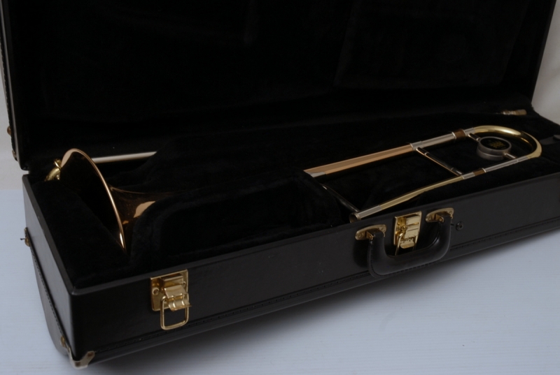 The instrument is in very good used condition with some light surface imperfections, but no dents or structural issues. The lacquer finish has aged beautifully, and the horn plays cleanly with excellent slide action and no need for further adjustment or repair.
