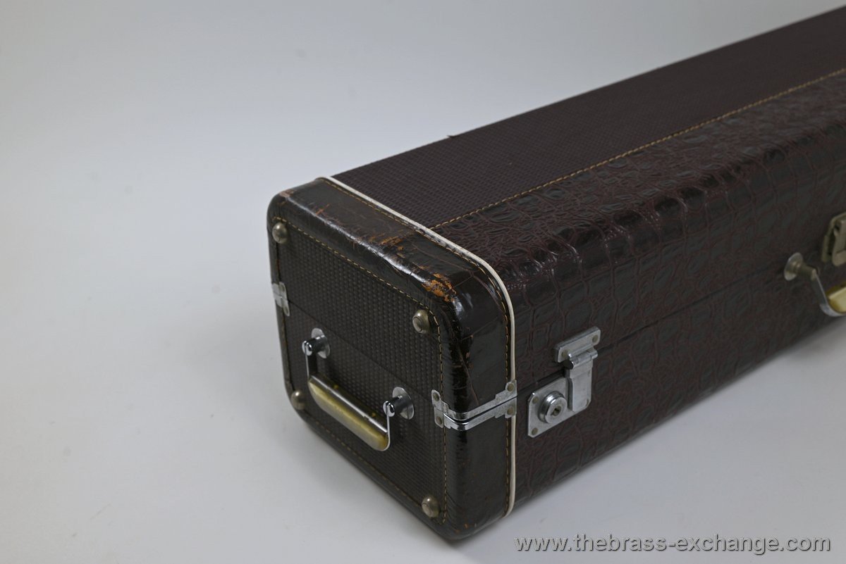 Cosmetically, it features all original lacquer and parts. The lacquer has aged beautifully, with only minor wear around the neckpipe. The rest of the horn is pristine, with a rich, golden finish that has mellowed over time. It comes in an original alligator-textured coffin-style case that’s in exceptional condition, with a strong top handle and fully functional latches. It’s rare to find both the horn and case in this level of preservation.