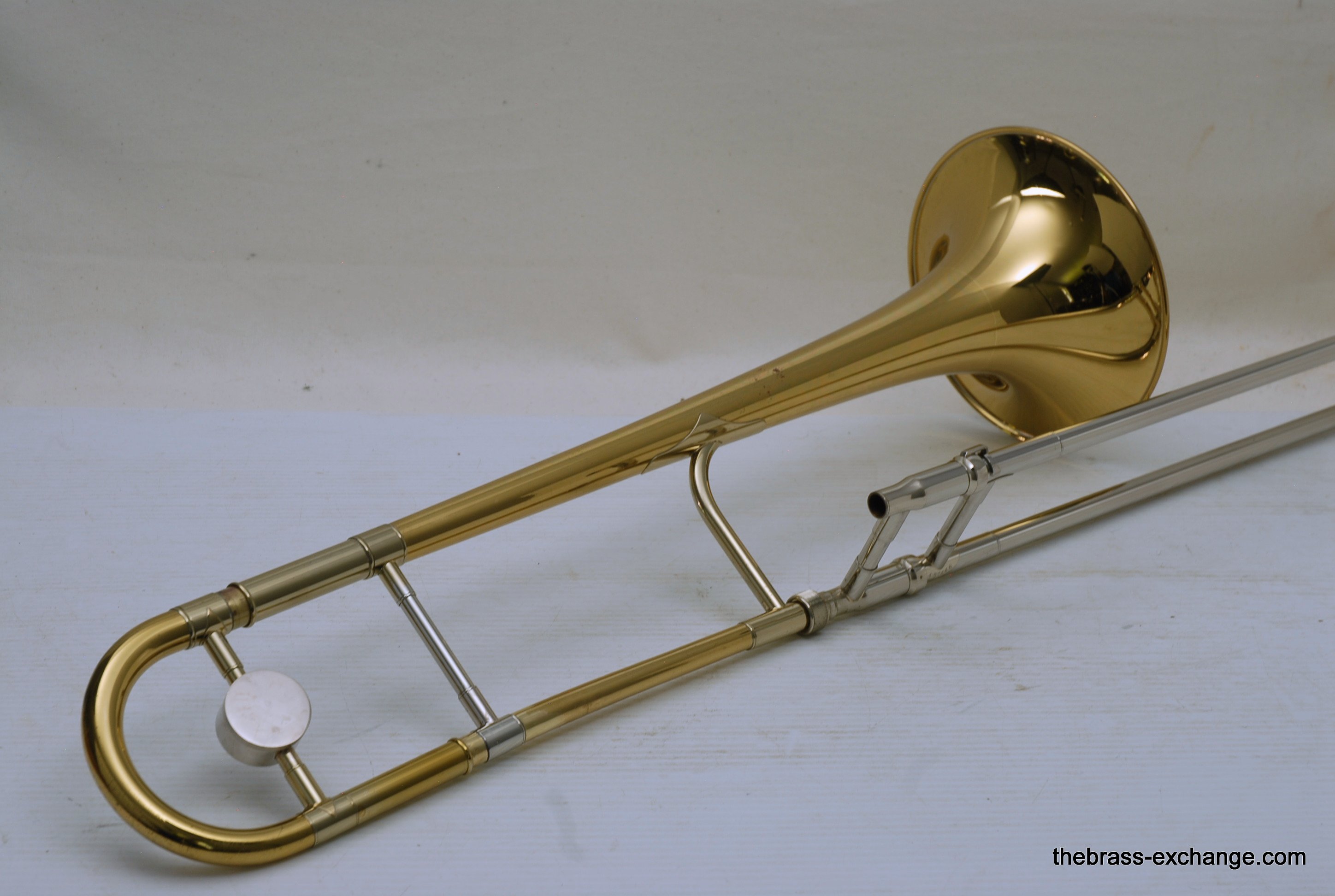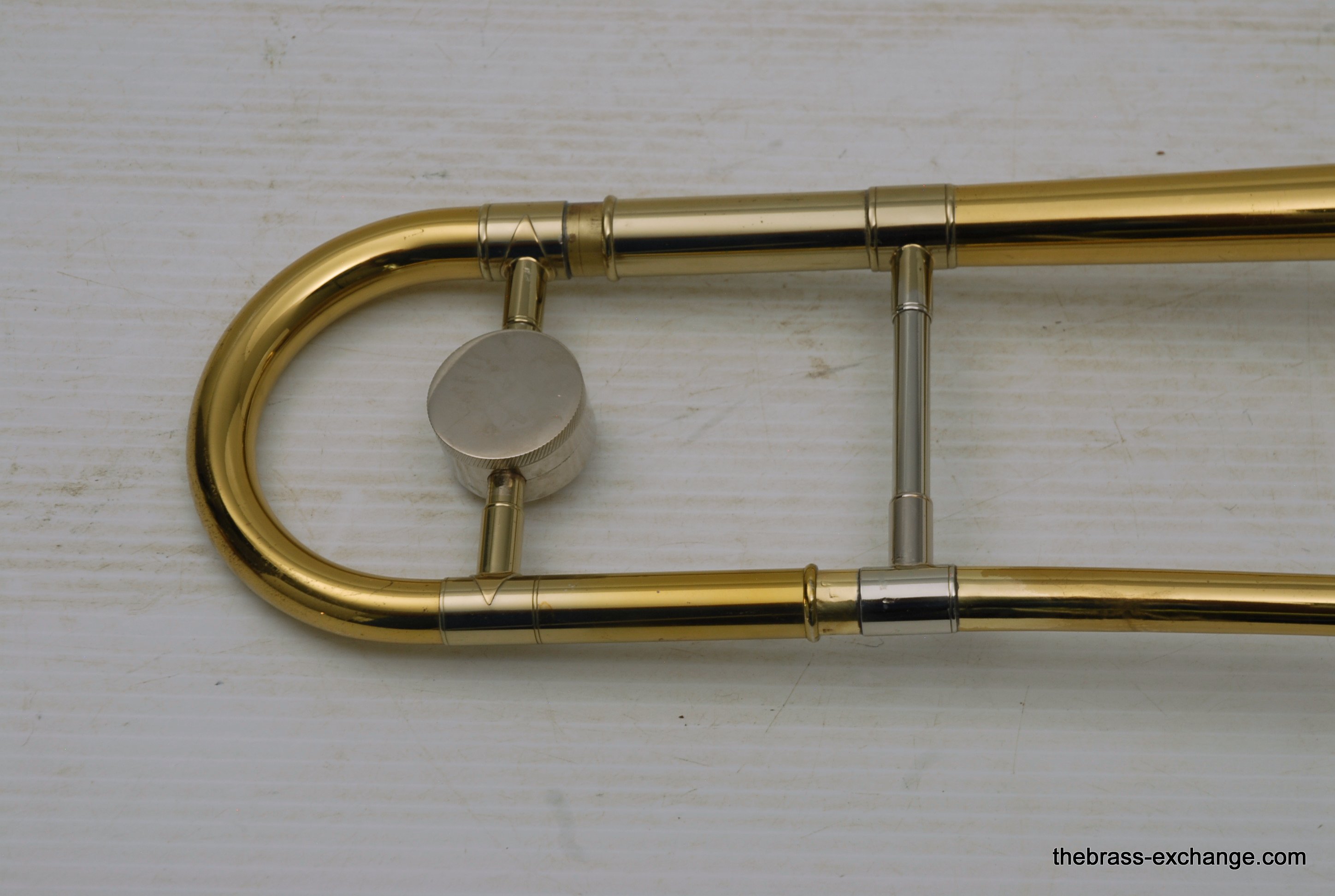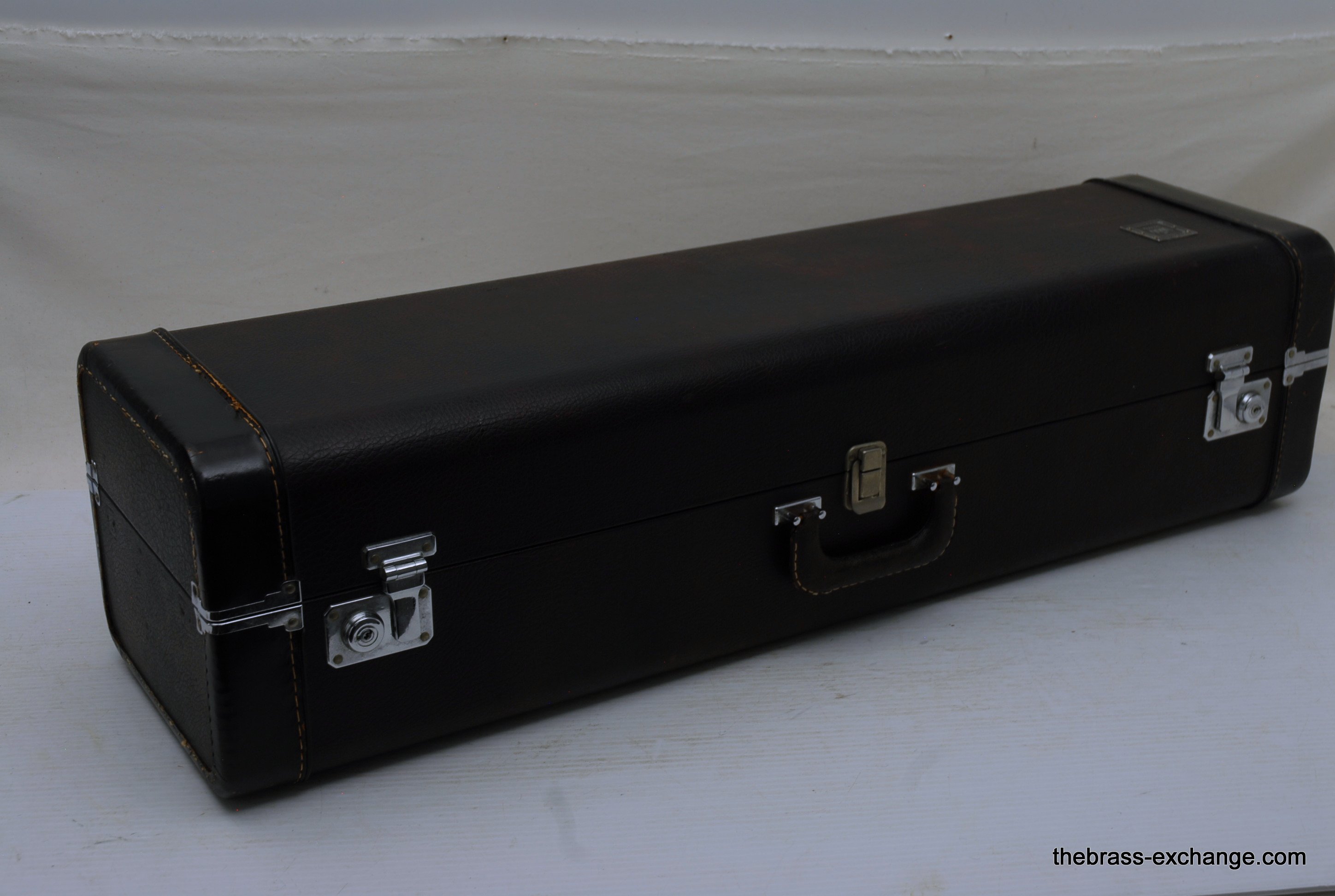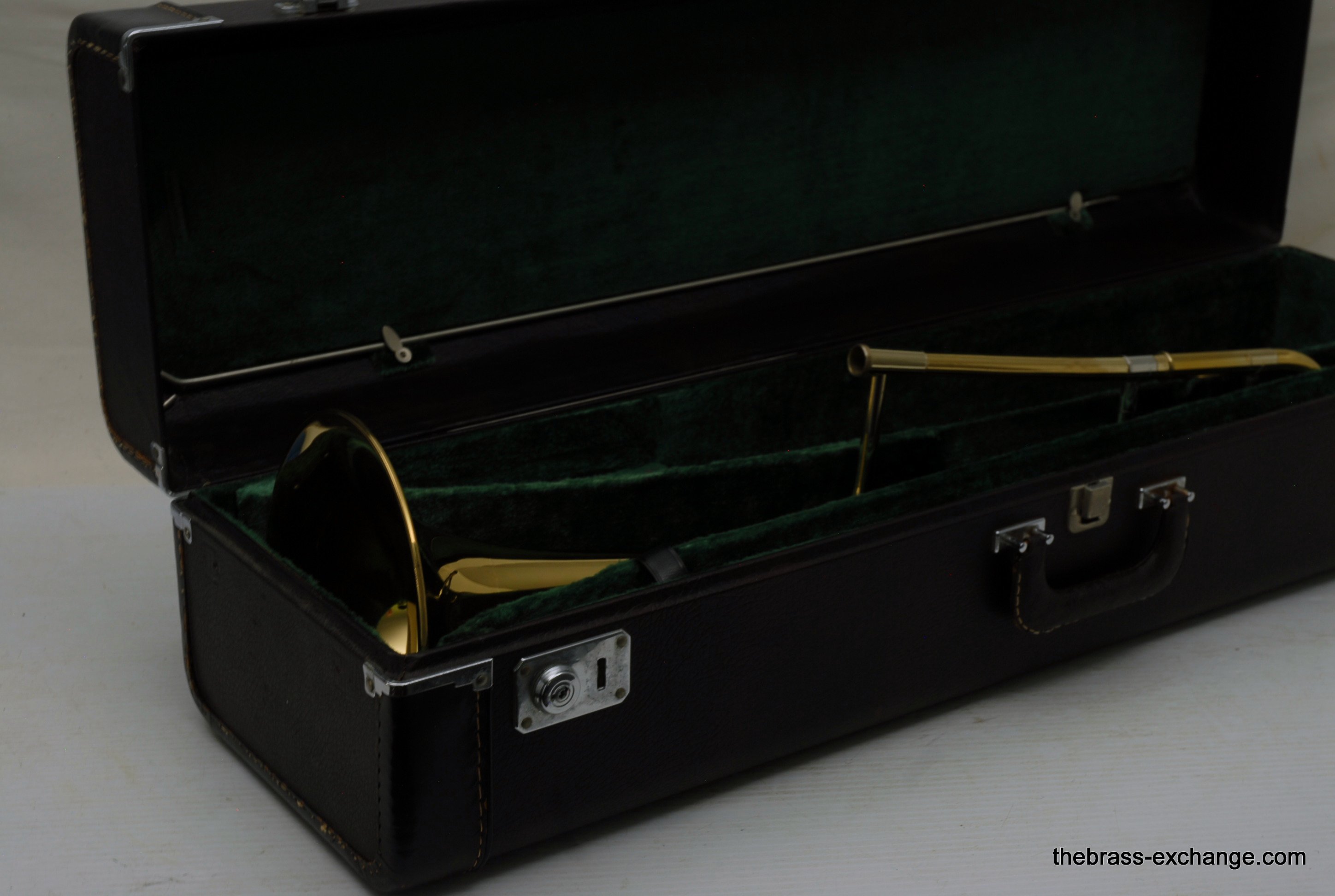 King 3B Late 1960's Make 451XXX S/N. One of the most poplular Jazz trombone models of all time, popularized by J.J. Johnson.Β Β This was made at the Eastlake OH factory.Β All oginal parts and lacquer.Β Has 8" Yellow brass bell, and .508 bore nickel silver handslide with yellow brass end crook.Β Has had full shop service with chemical bath and slide adjust.Β No dents or dings.Β Horn has not had any major trauma, and plays perfectly.Β Lacquer is gorgeous on both bell section and handslide.Β This would be a great jazz horn for anyone looking to play a vintage 3B. Has a great slide and will not dissapoint.Β Oringal case in good condition, but is missing the top handle.Β In-stock.