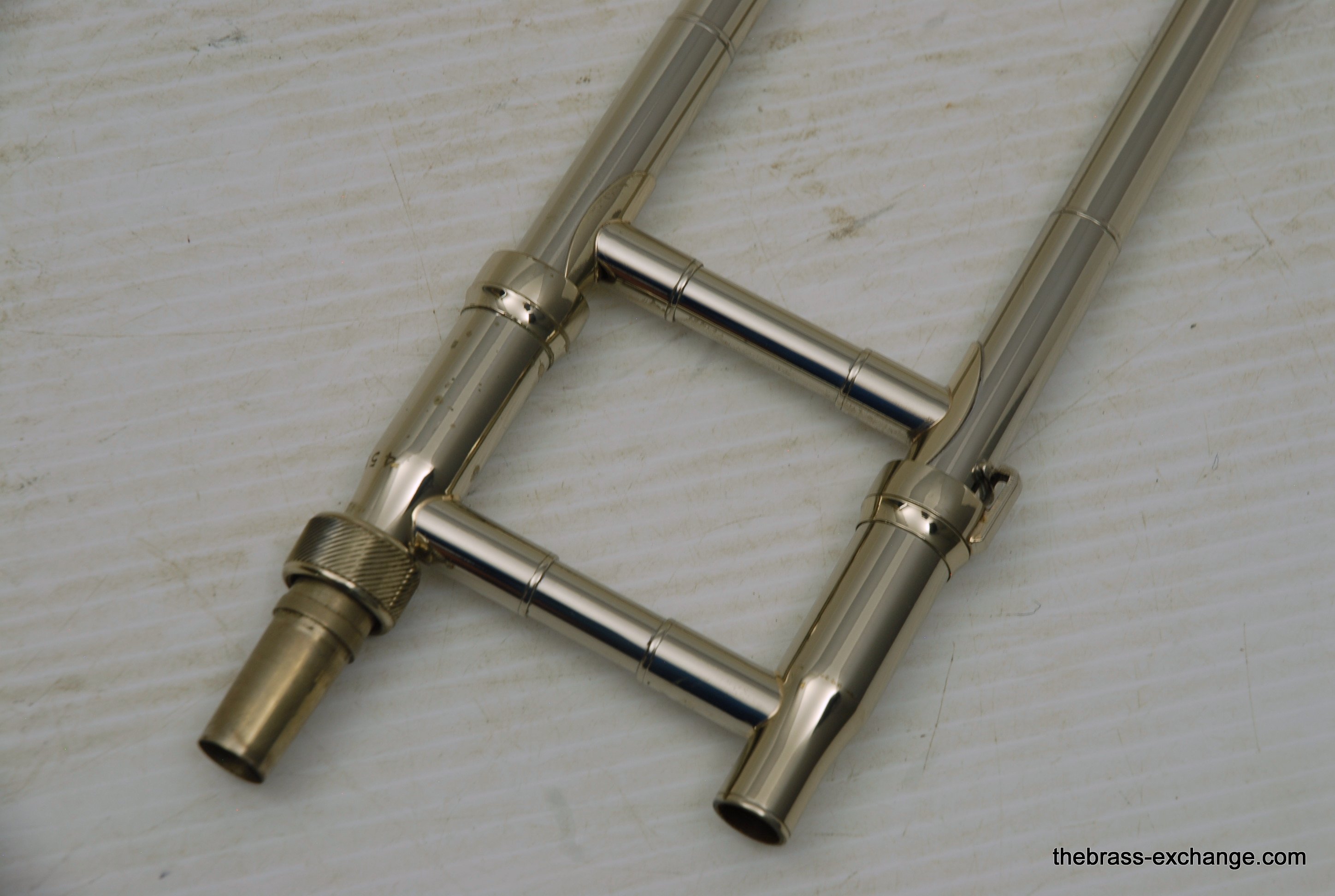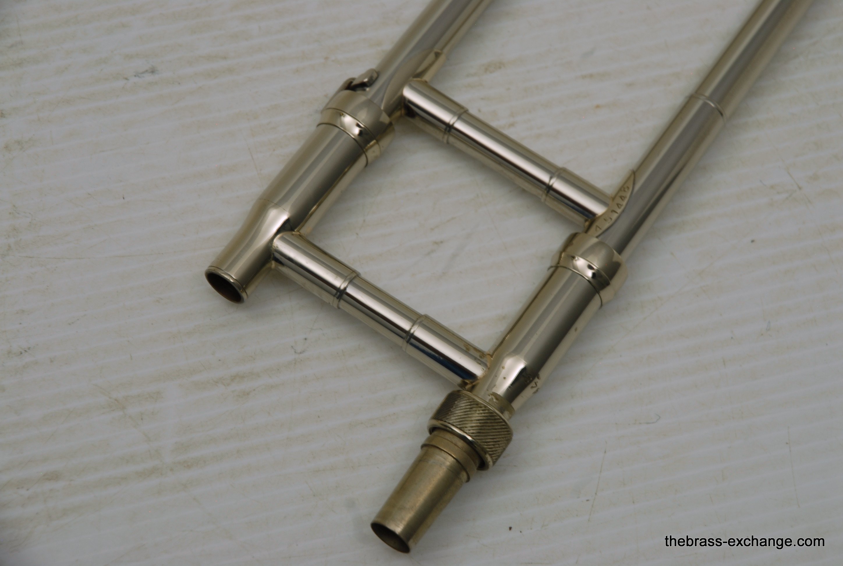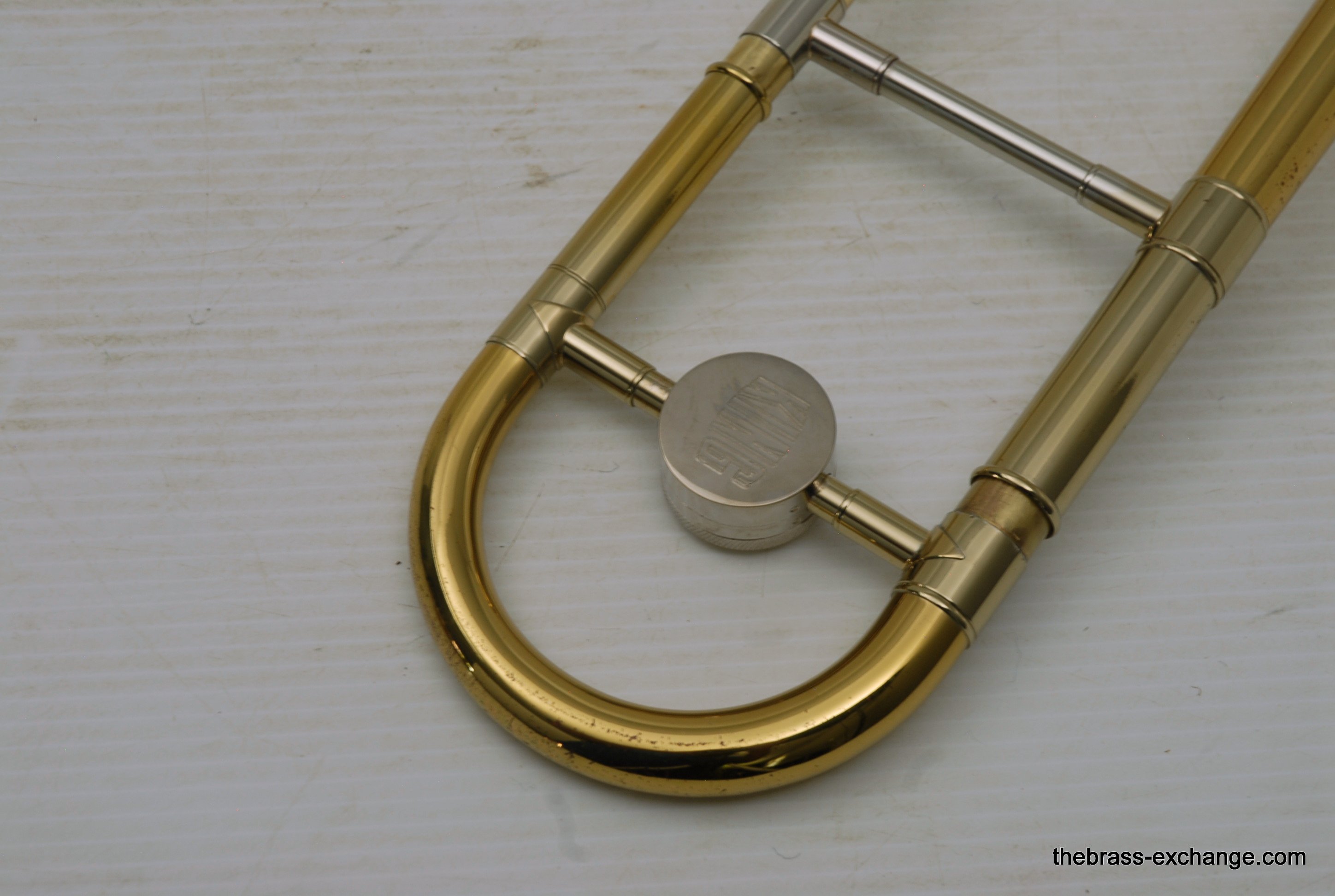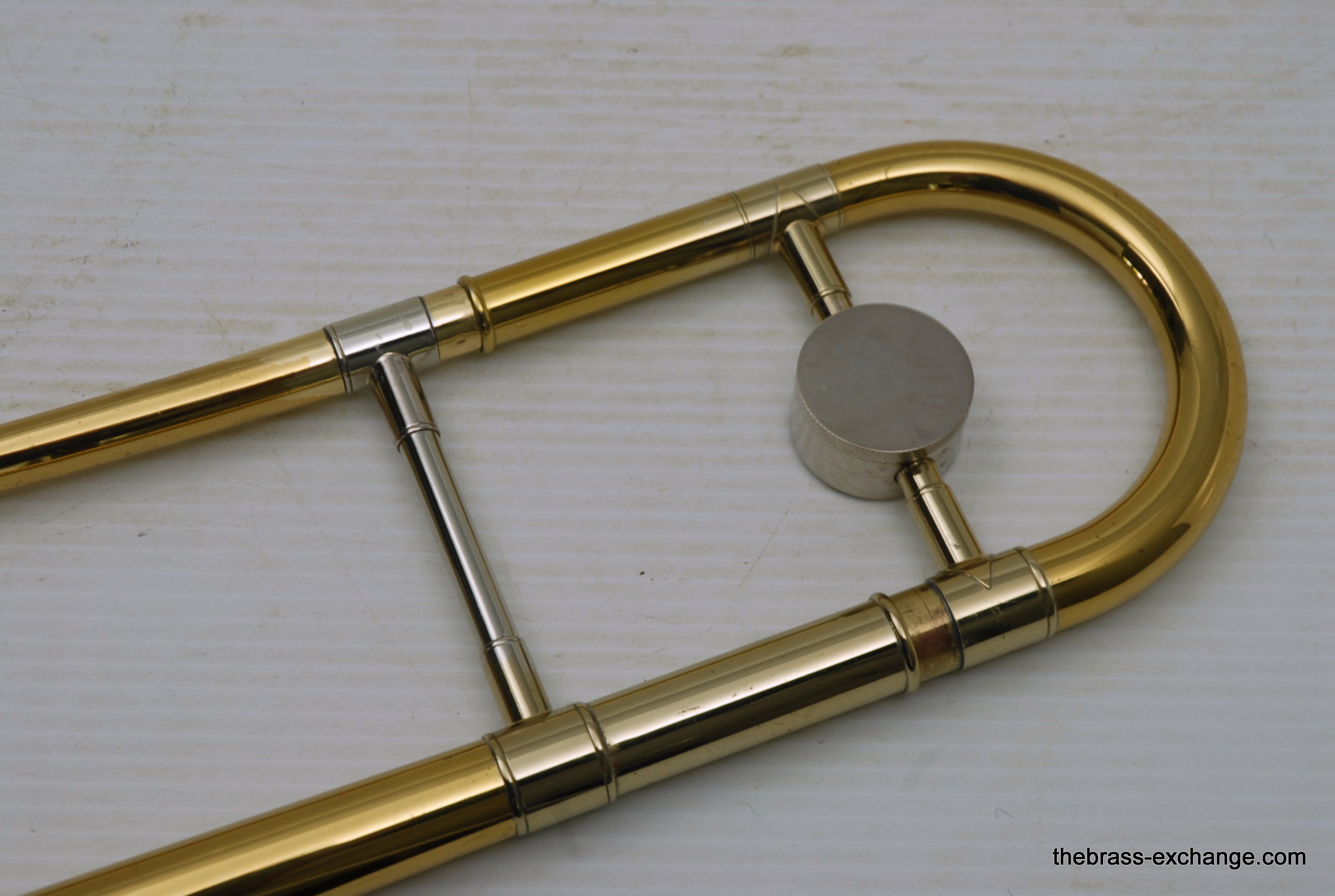 King 3B Late 1960's Make 451XXX S/N. One of the most poplular Jazz trombone models of all time, popularized by J.J. Johnson.Β Β This was made at the Eastlake OH factory.Β All oginal parts and lacquer.Β Has 8" Yellow brass bell, and .508 bore nickel silver handslide with yellow brass end crook.Β Has had full shop service with chemical bath and slide adjust.Β No dents or dings.Β Horn has not had any major trauma, and plays perfectly.Β Lacquer is gorgeous on both bell section and handslide.Β This would be a great jazz horn for anyone looking to play a vintage 3B. Has a great slide and will not dissapoint.Β Oringal case in good condition, but is missing the top handle.Β In-stock.