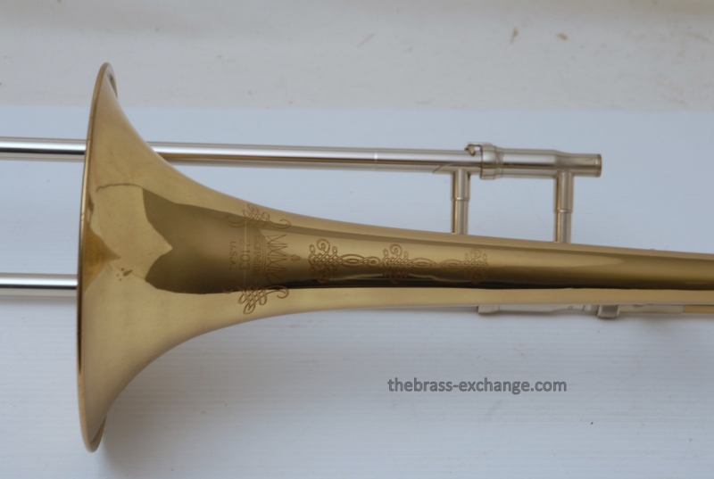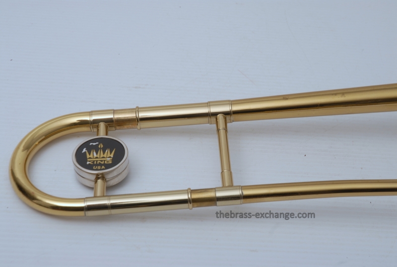 King 3B model 2103. Yellow brass bell standard light weight nickel silver handslide.  One of the most popular Jazz tenor trombones since the late 1950's. Model hasn't changed.  A great player on a 3B sounds terrific. Freshly cleaned and serived.  No dents dings repairs or service needed.  Handslide has been adjusted for maximum playability. Likely made within the last ten years. For decades, the 3B model when new, shipped from the factory with a 12C mouthiece, one is included. This model sells new today as a Legend for over $2100.  Open box model always need something done to them.  This 3B is without issue and plays properly.  Save Now Play Great!