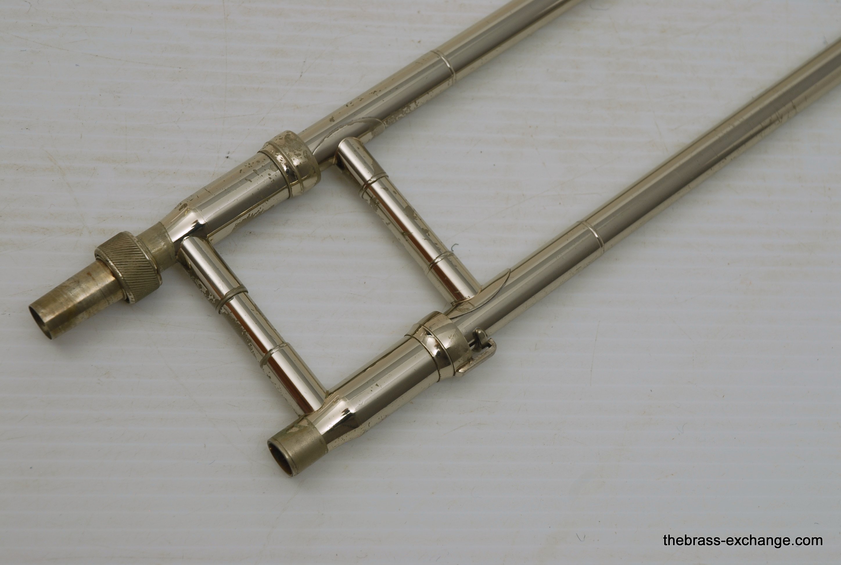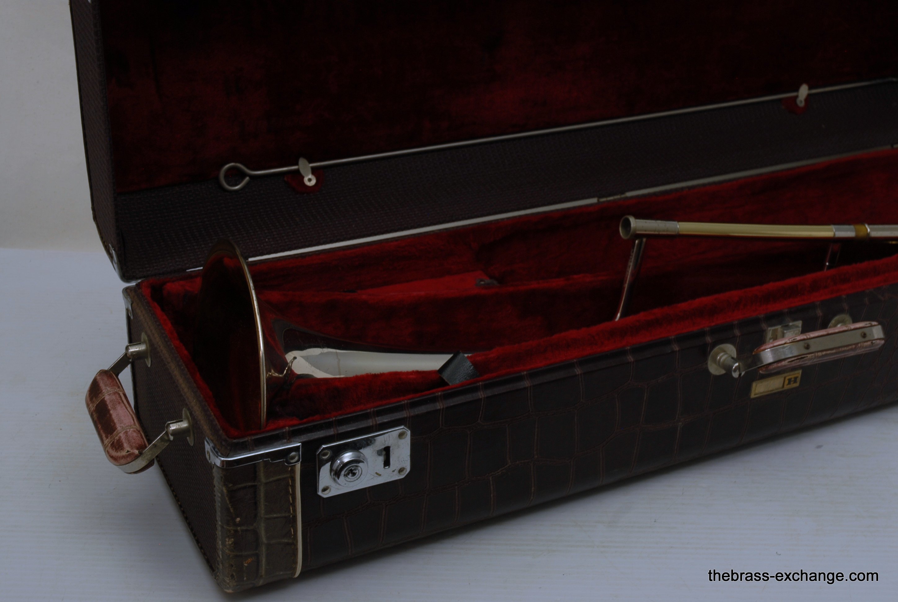 The longer tuning-slide design of the late-1950s instruments is often preferred for its secure upper-register slotting and intonation stability.